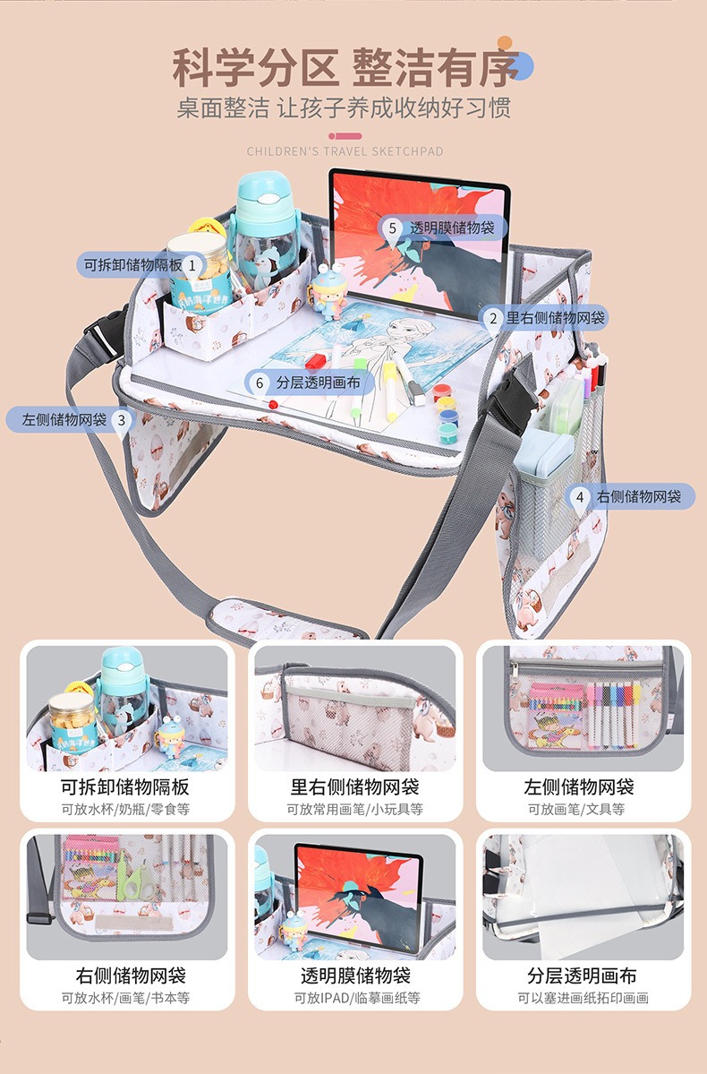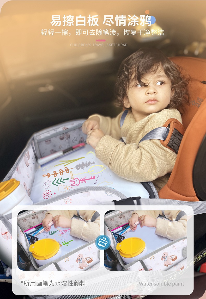儿童便携式出行车载绘画板可擦拭儿童画板车用白板画板托盘