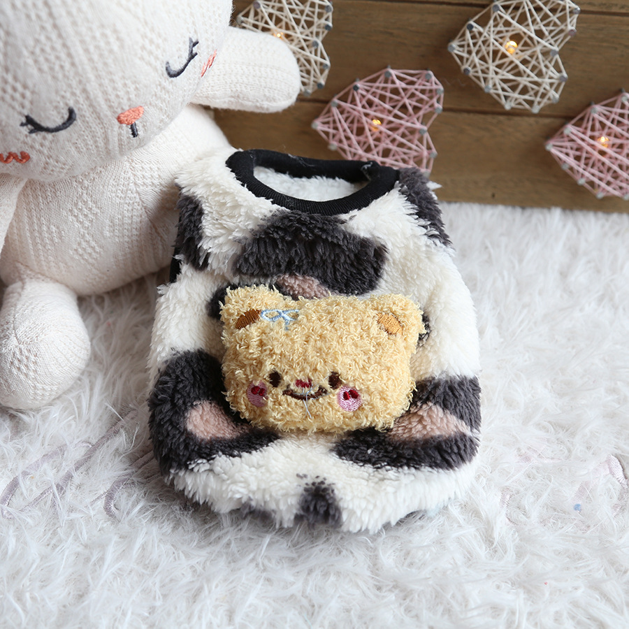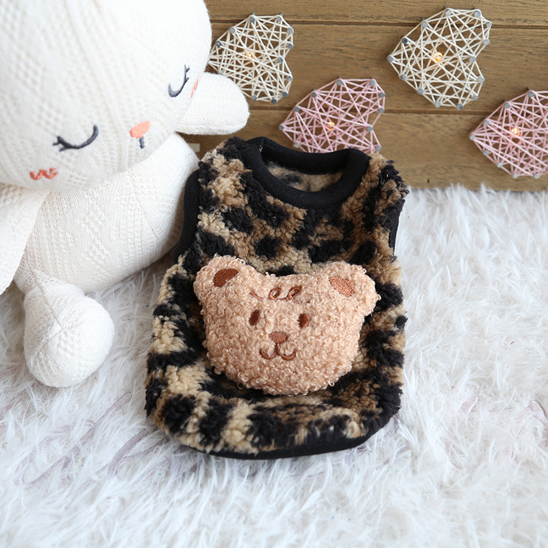 페트스타일 작은 눈 표범 곰 우유 개 옷 귀여운 벨벳 강아지 강아지 고양이 옷 신생아 고양이