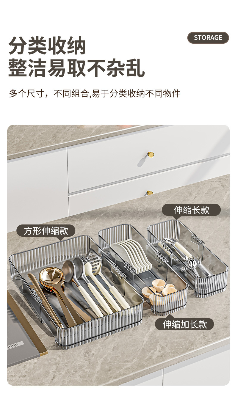 서랍 내부에 확장 가능한 수납함, 주방 젓가락, 탁상용 화장품, 침실 식기 정리함, 수납 정리대