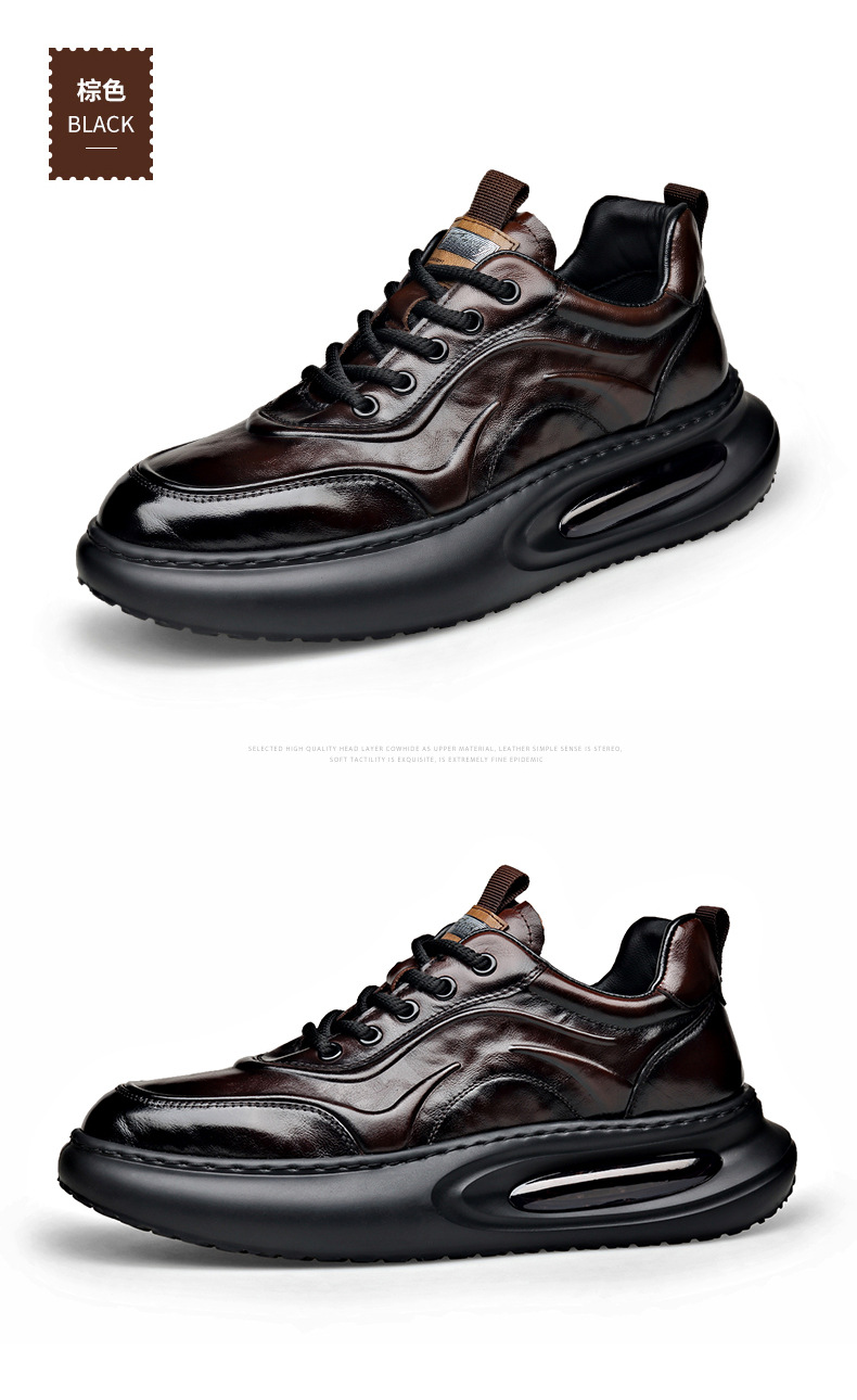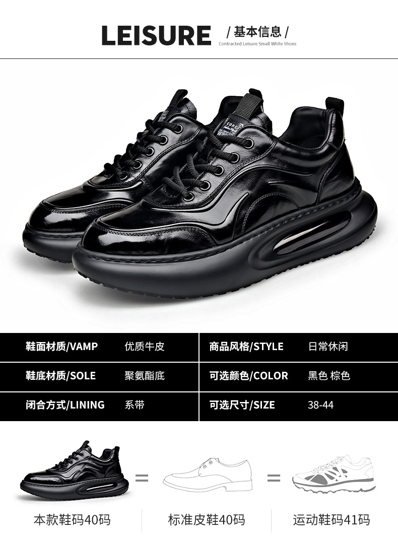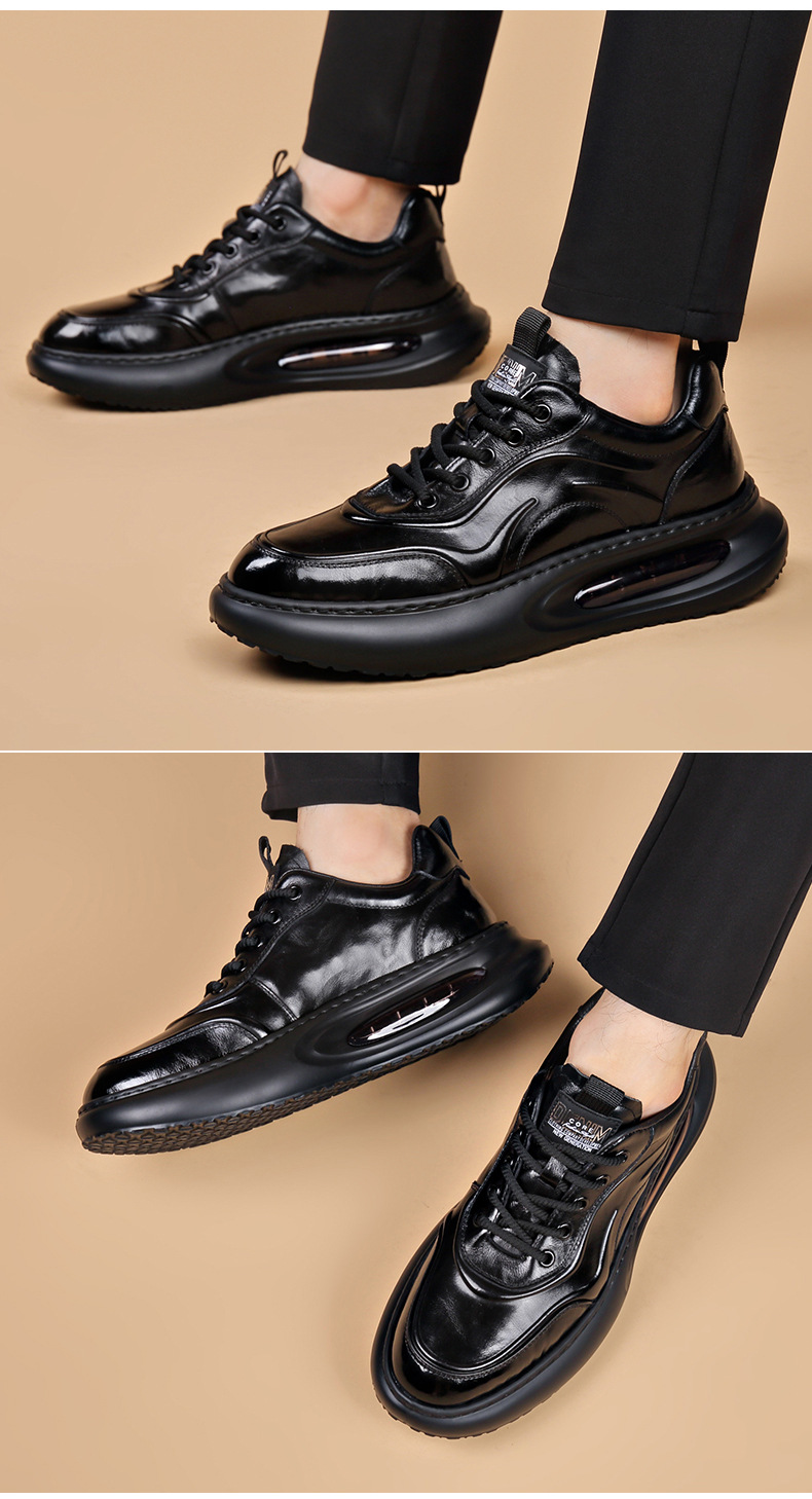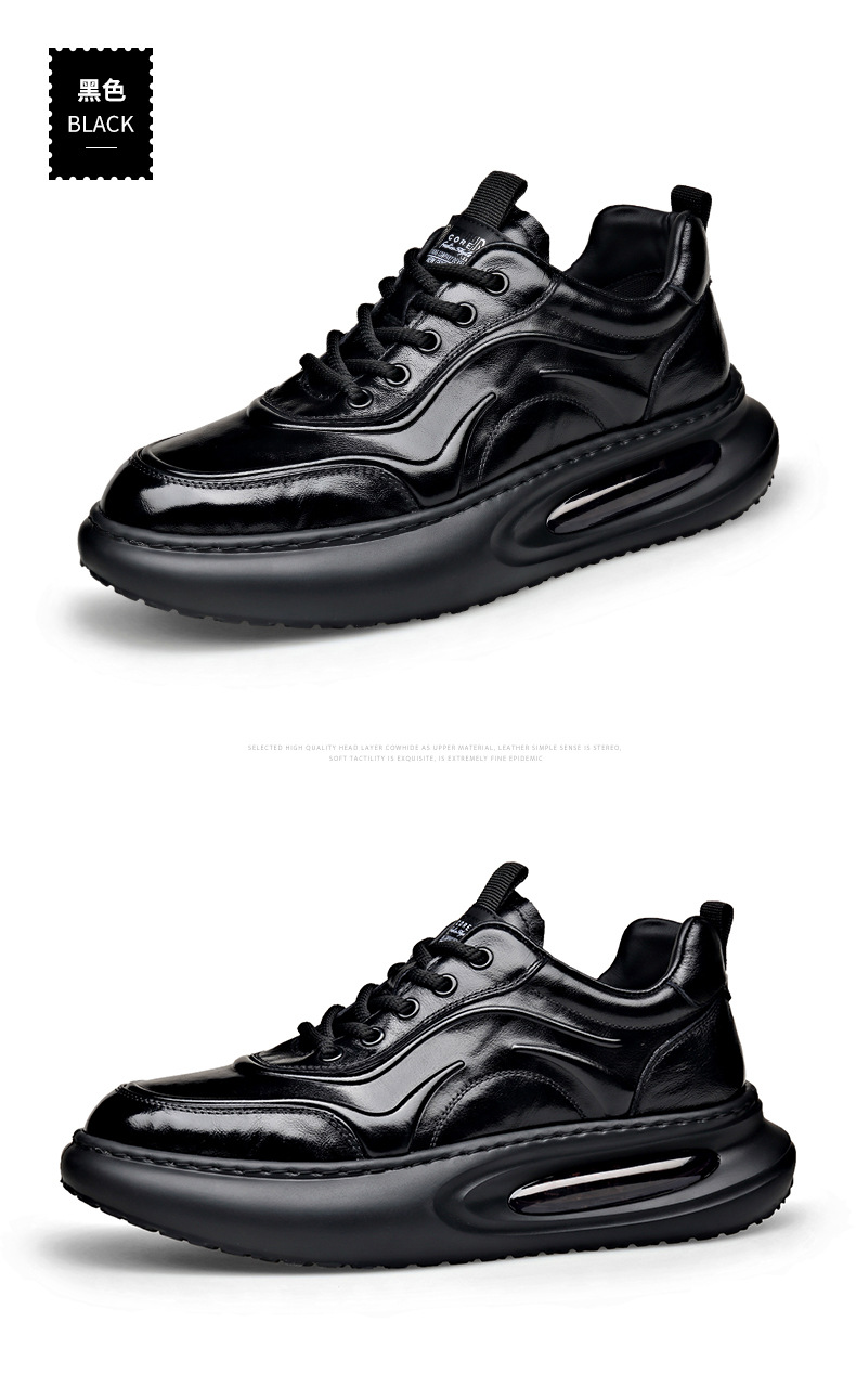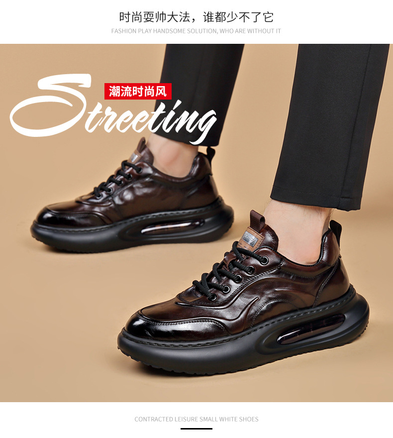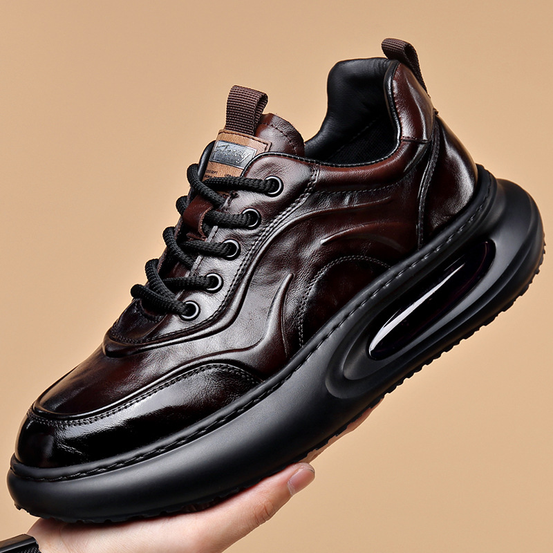 정품 가죽 통기성 비즈니스 스니커즈 남성용 탑 레이어 Cowhide 유행 한국식 에어 쿠션 단독 경량 캐주얼 가죽 신발 트렌디 남성용 신발스토어 가기