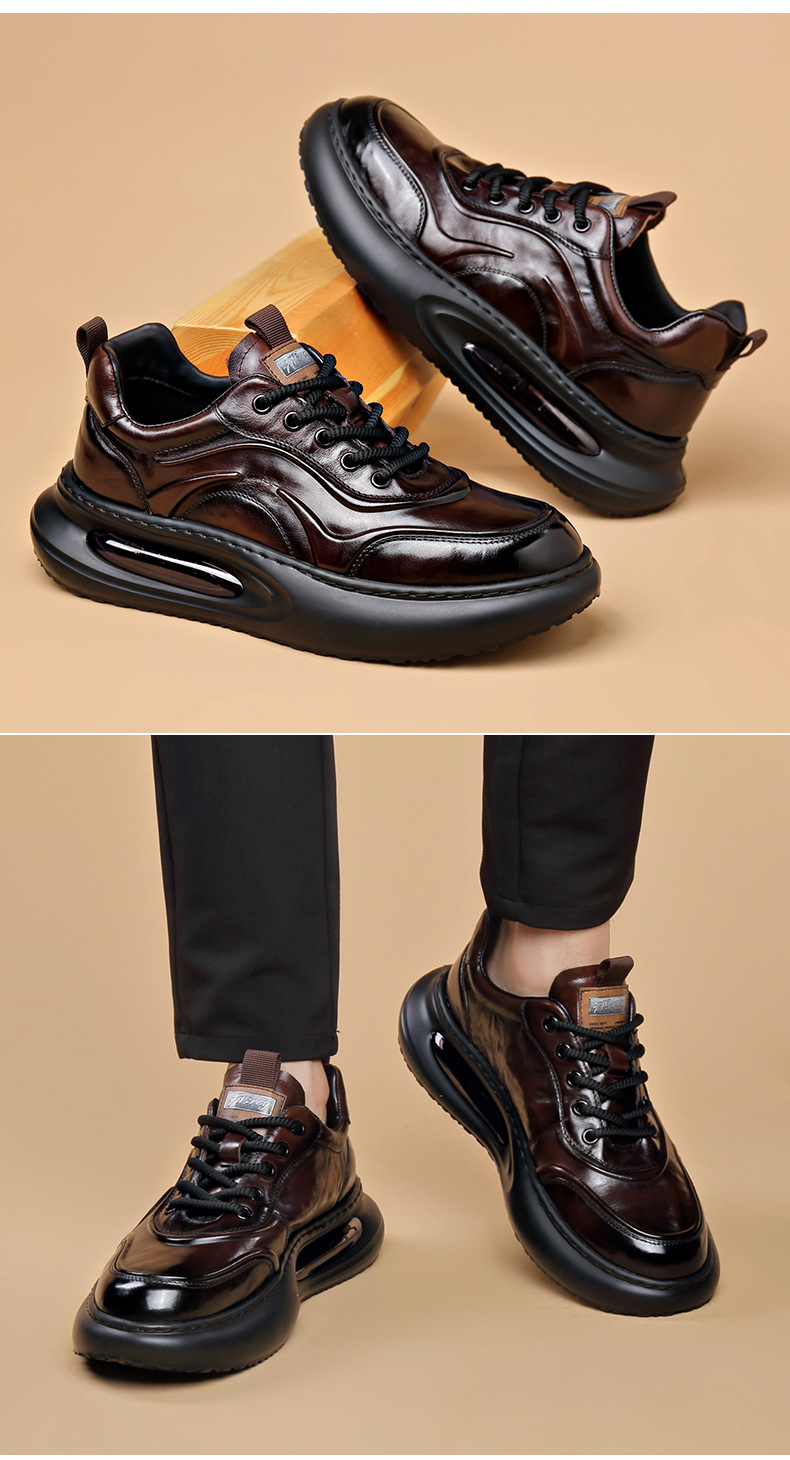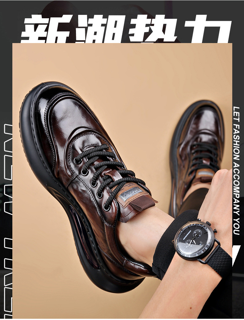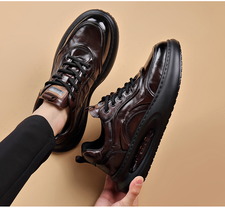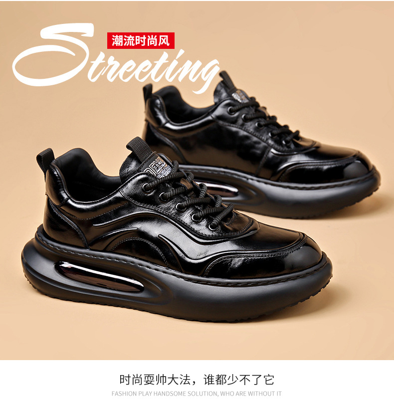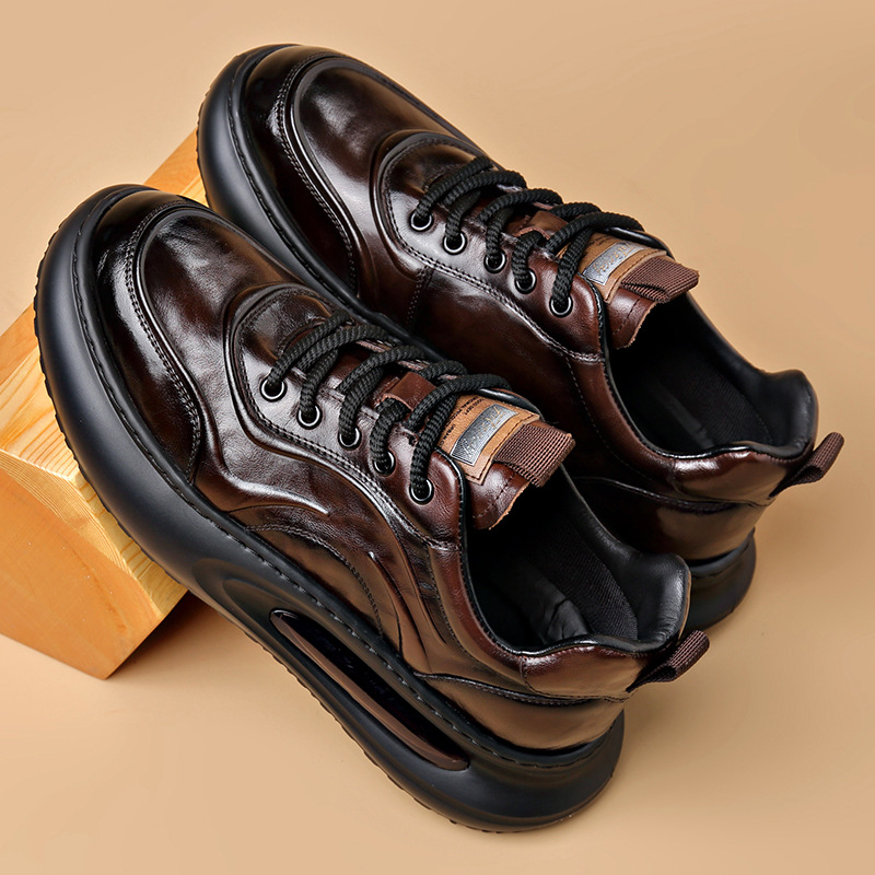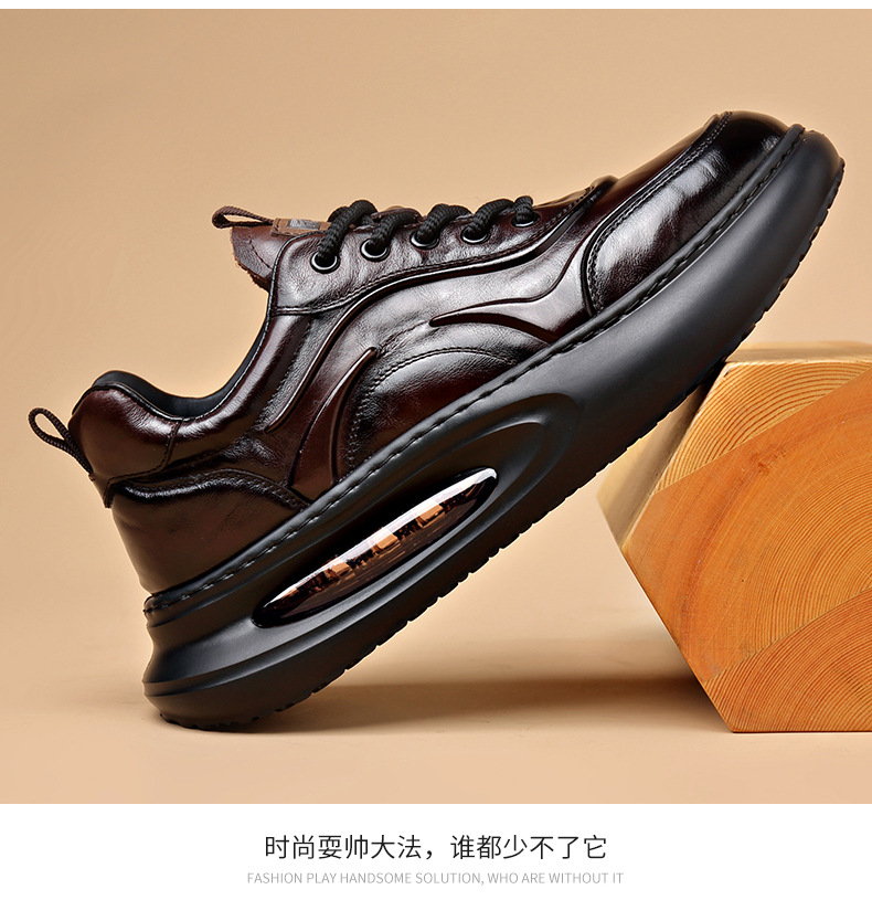 정품 가죽 통기성 비즈니스 스니커즈 남성용 탑 레이어 Cowhide 유행 한국식 에어 쿠션 단독 경량 캐주얼 가죽 신발 트렌디 남성용 신발스토어 가기