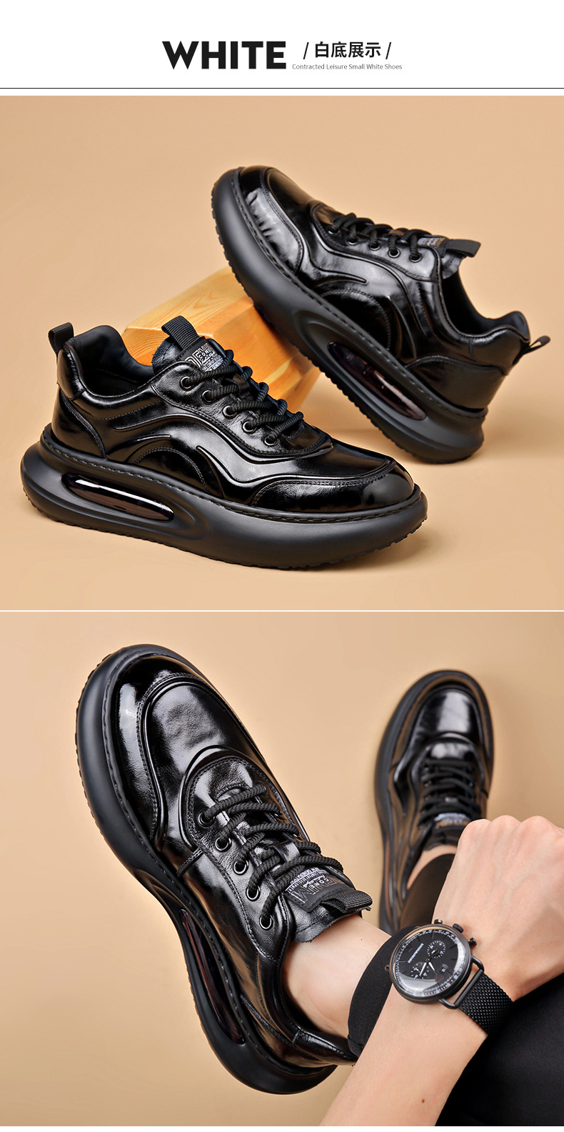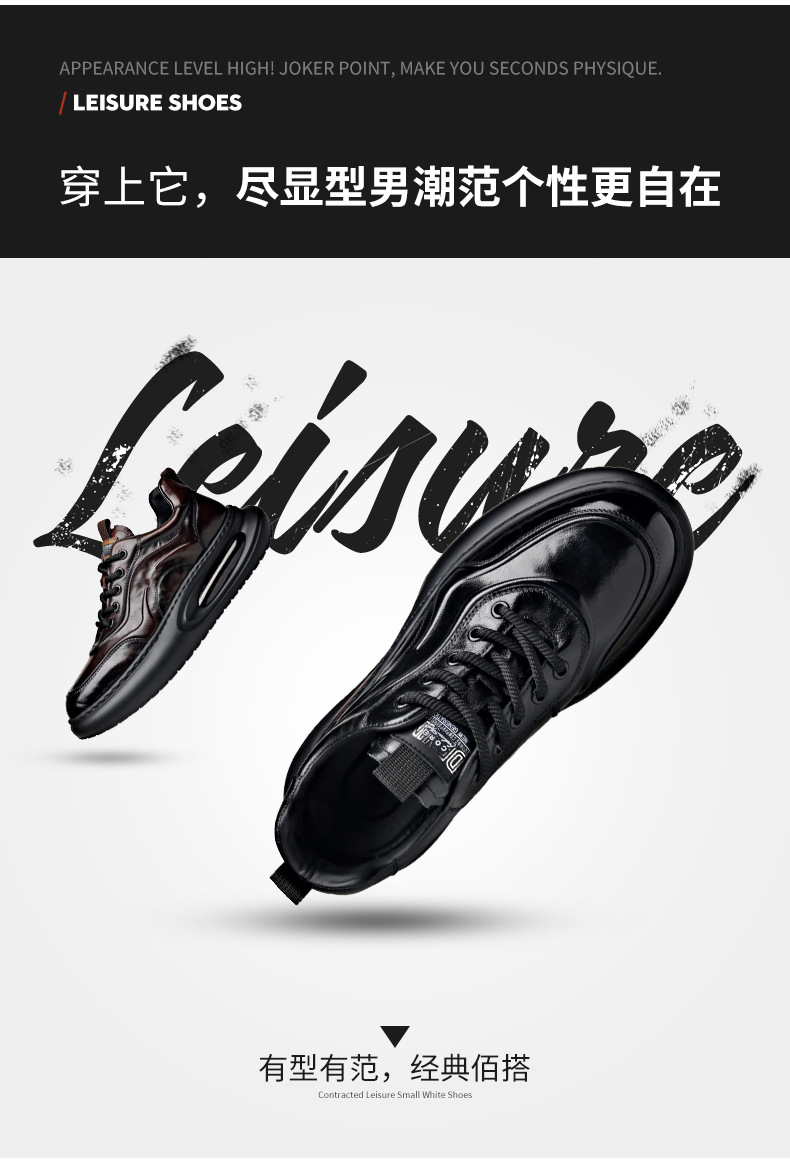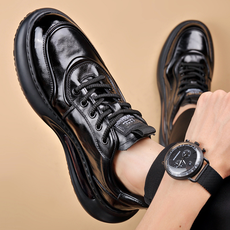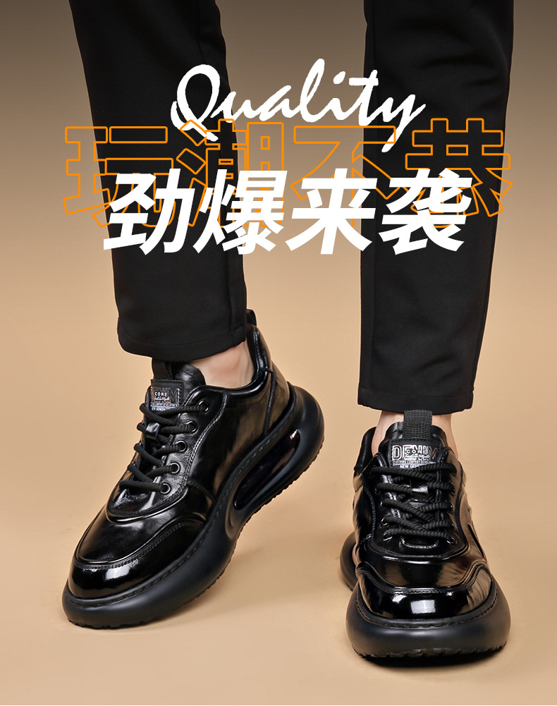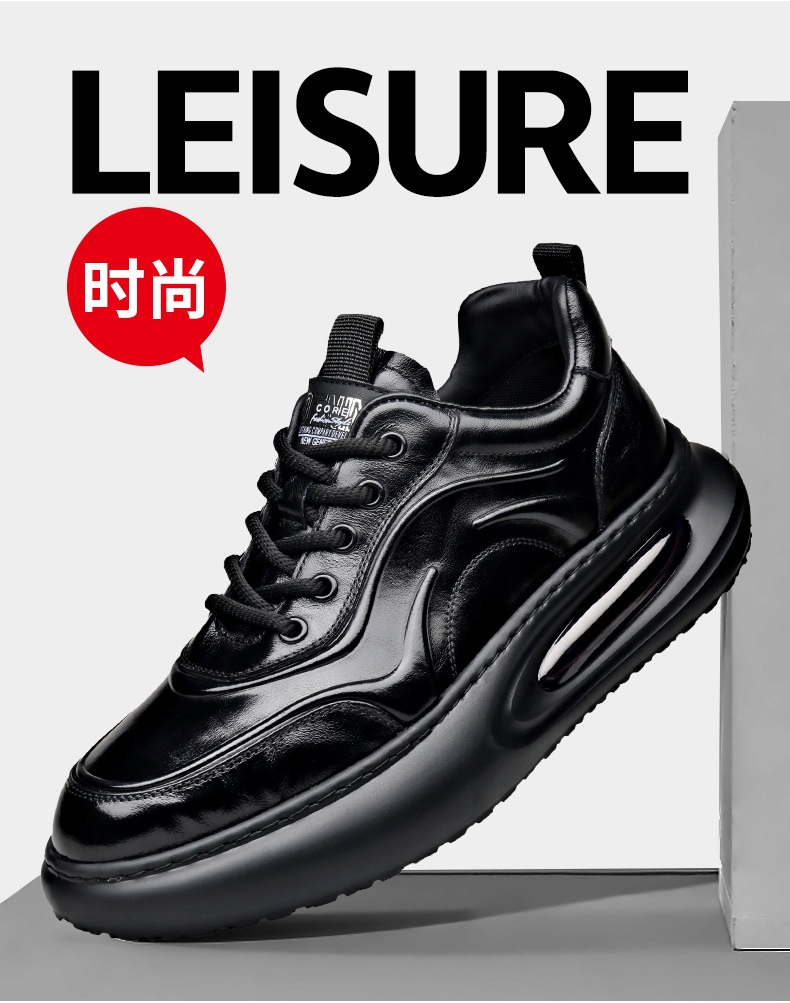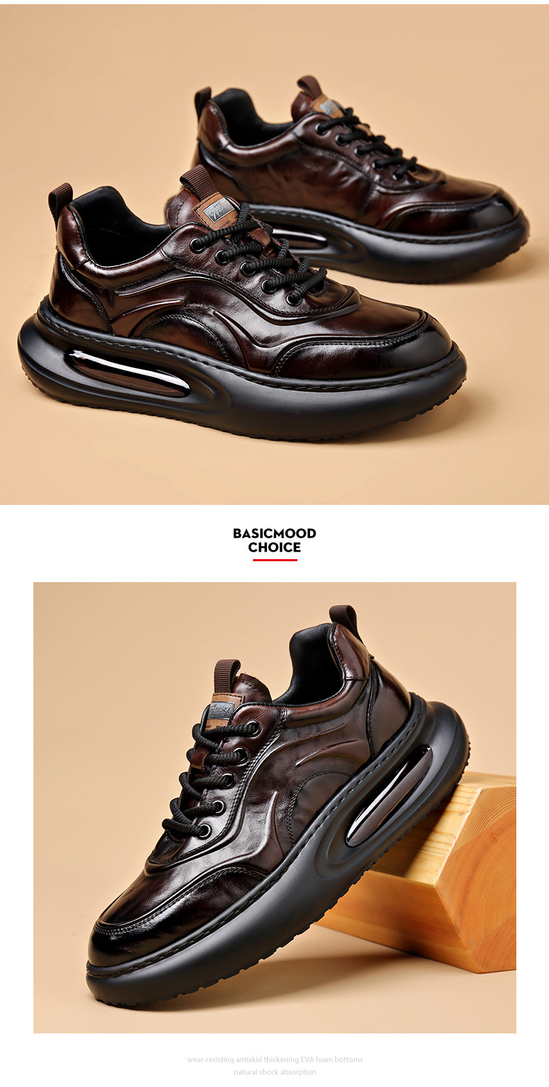 정품 가죽 통기성 비즈니스 스니커즈 남성용 탑 레이어 Cowhide 유행 한국식 에어 쿠션 단독 경량 캐주얼 가죽 신발 트렌디 남성용 신발스토어 가기