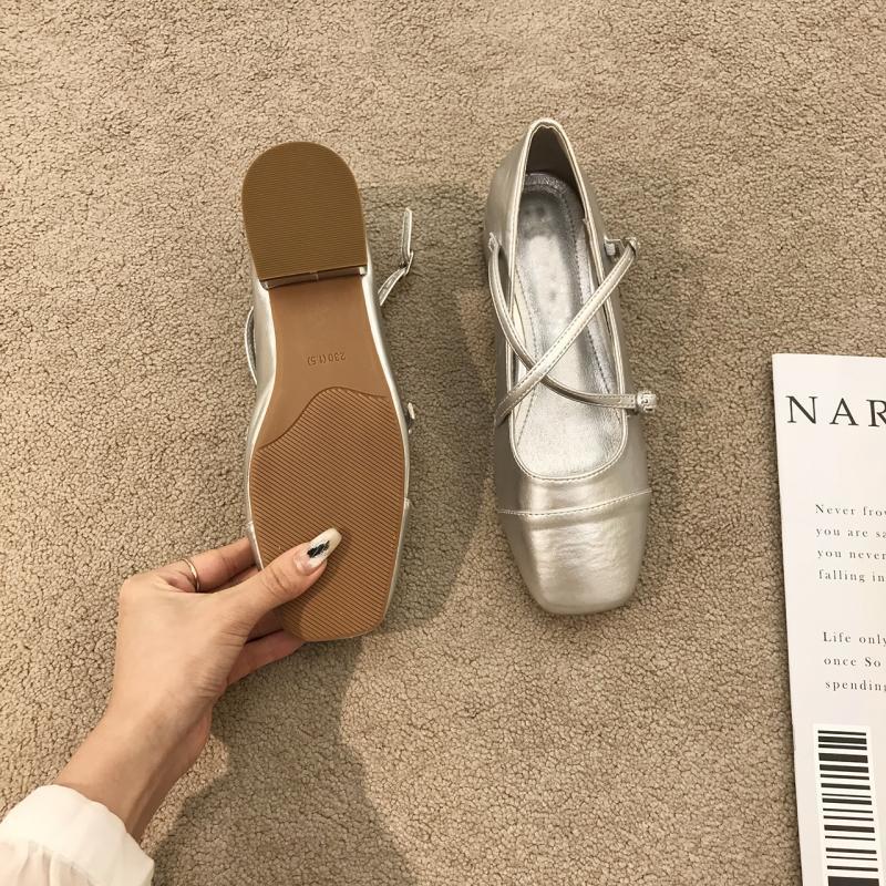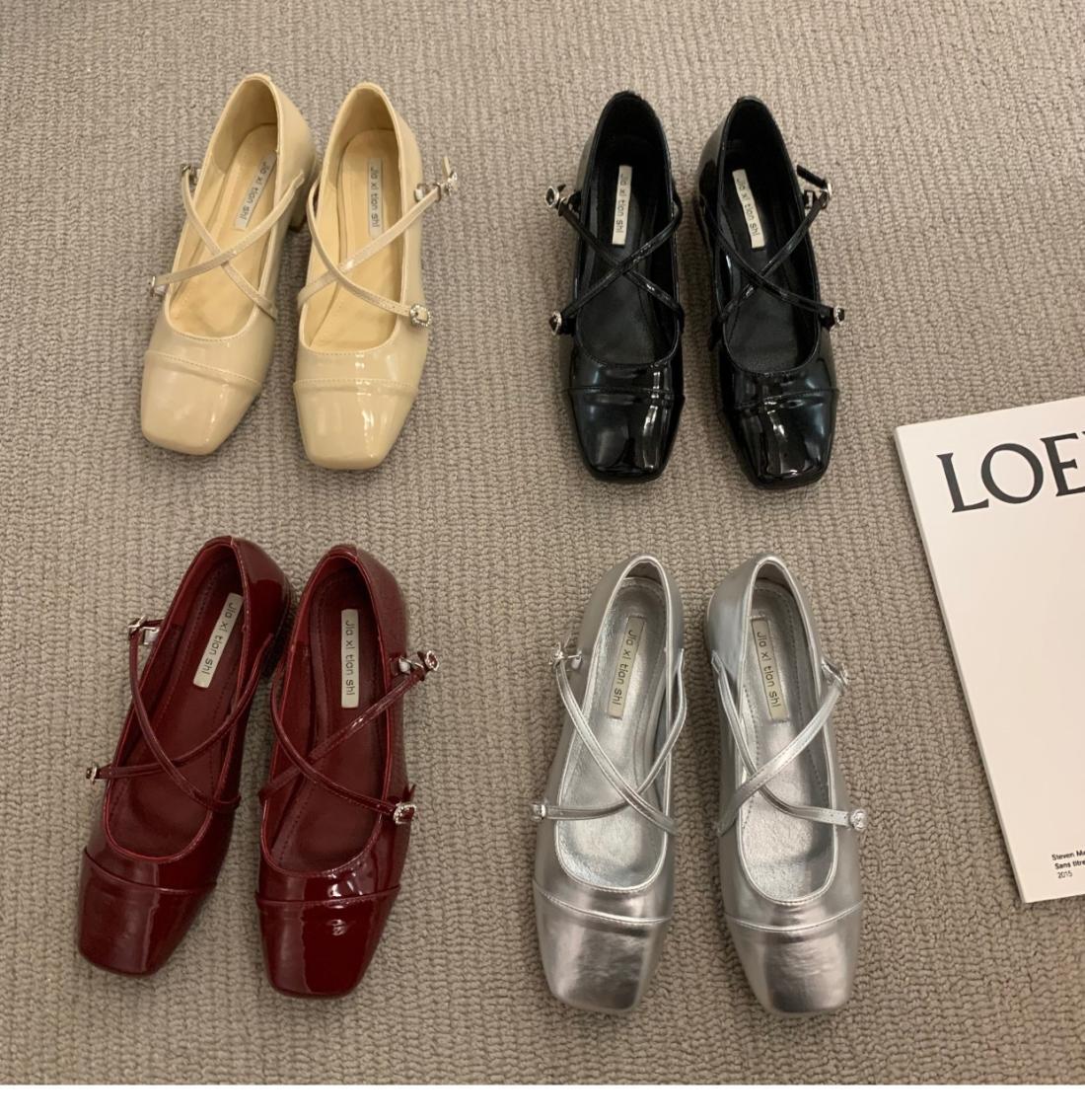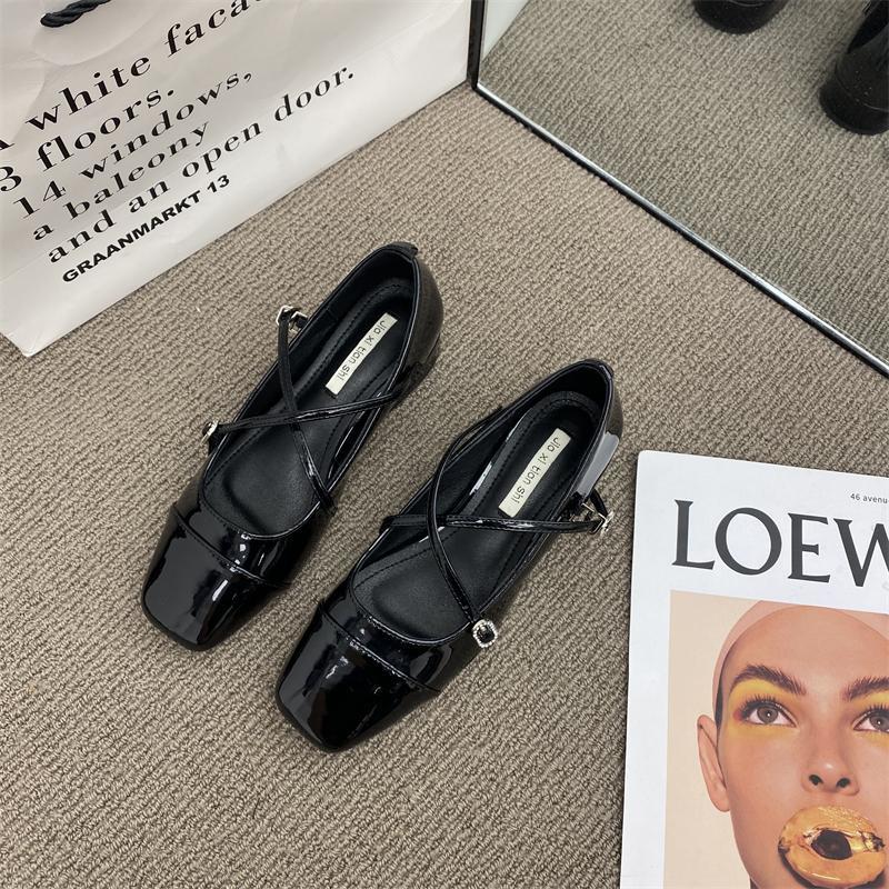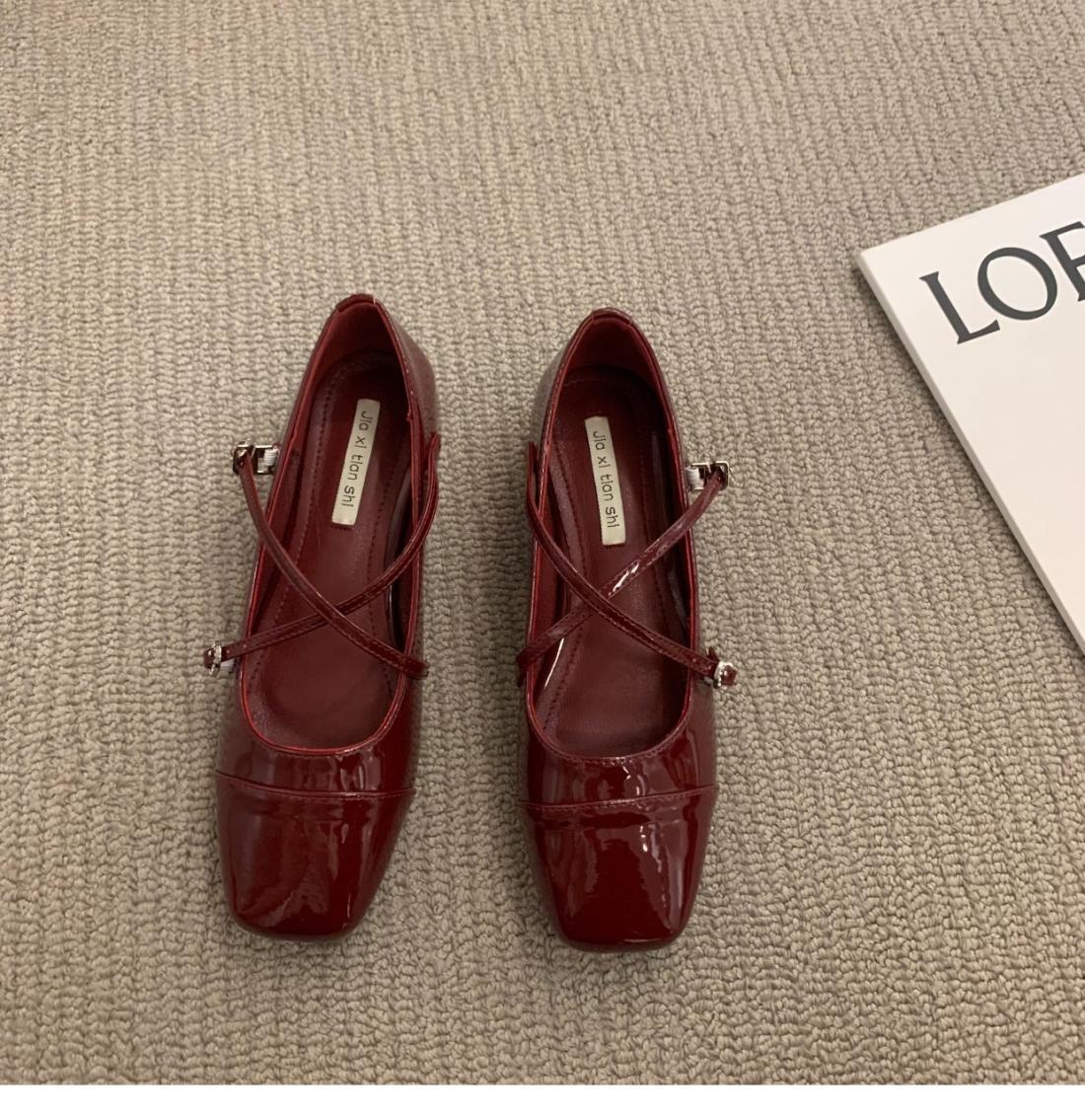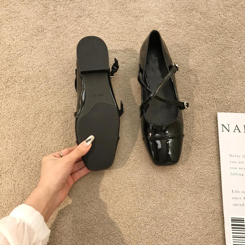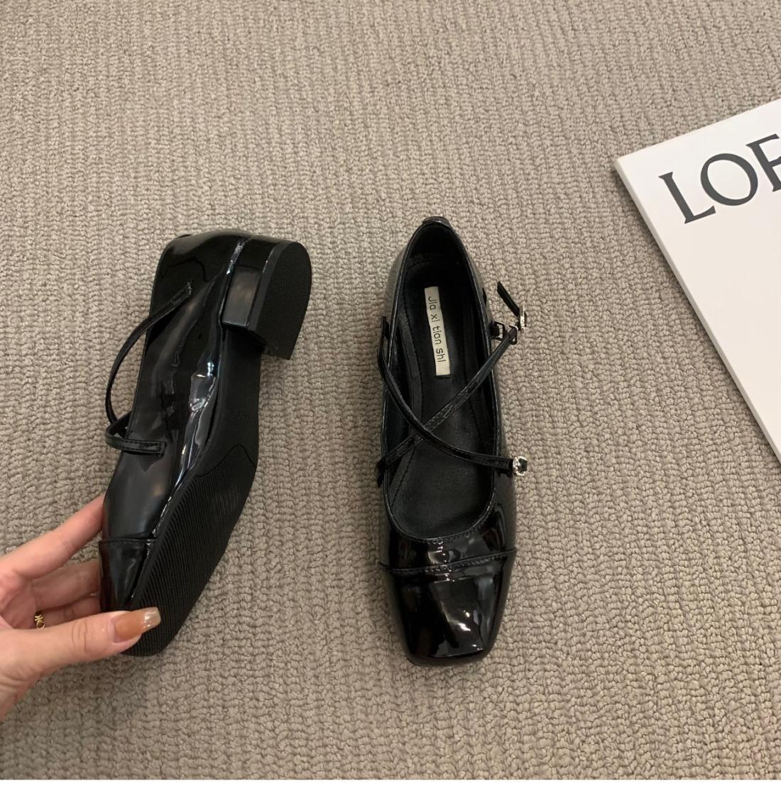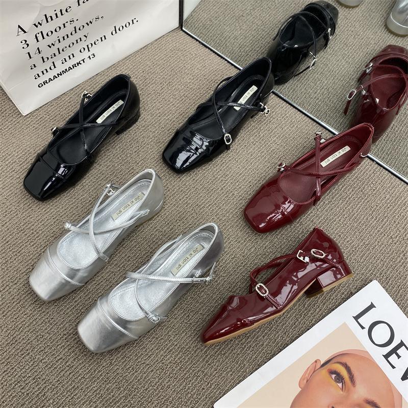 버클 두꺼운 뒤꿈치와 플러스 사이즈 크로스 메리 제인 신발 여성 2024 봄과 가을 새로운 작은 가죽 신발 크로스 크로스-스커트 신발스토어 가기