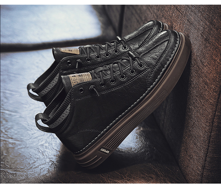 하이 탑 툴링 신발 남성용 겨울 기모 두꺼운 따뜻한 코튼 신발 남성용 모피 통합 노동 보호 캐주얼 가죽 신발 남성용 방수