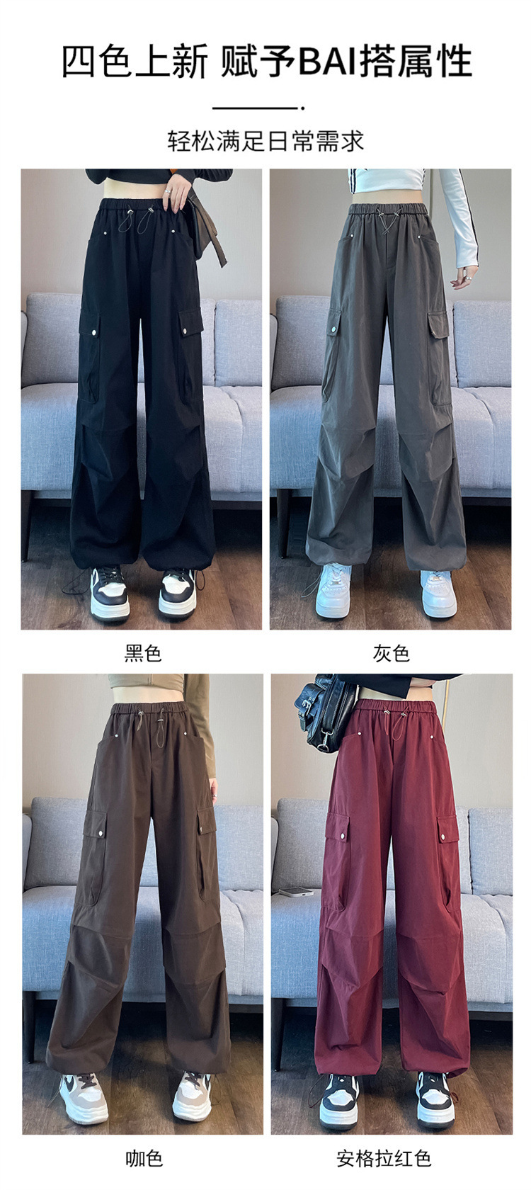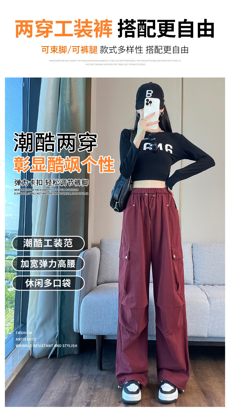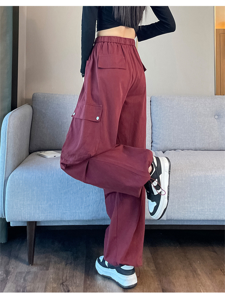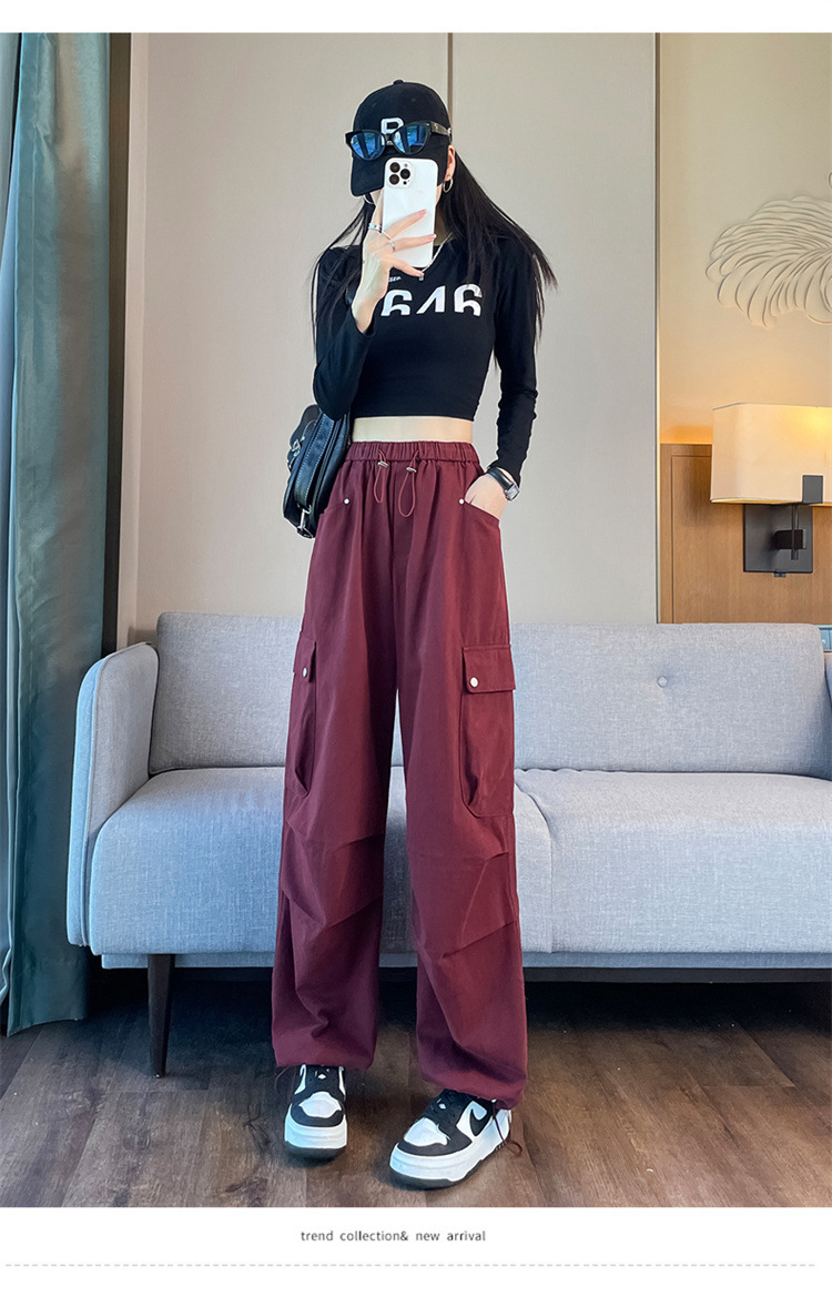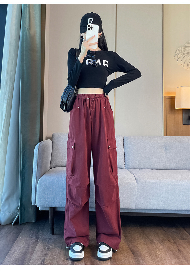 Ankola Red Tence Cotton Crock 바지 여자 가을 2024 작은 남자를위한 새로운 도착 바지 높은 허리 넓은 다리 낙하산 바지스토어 가기