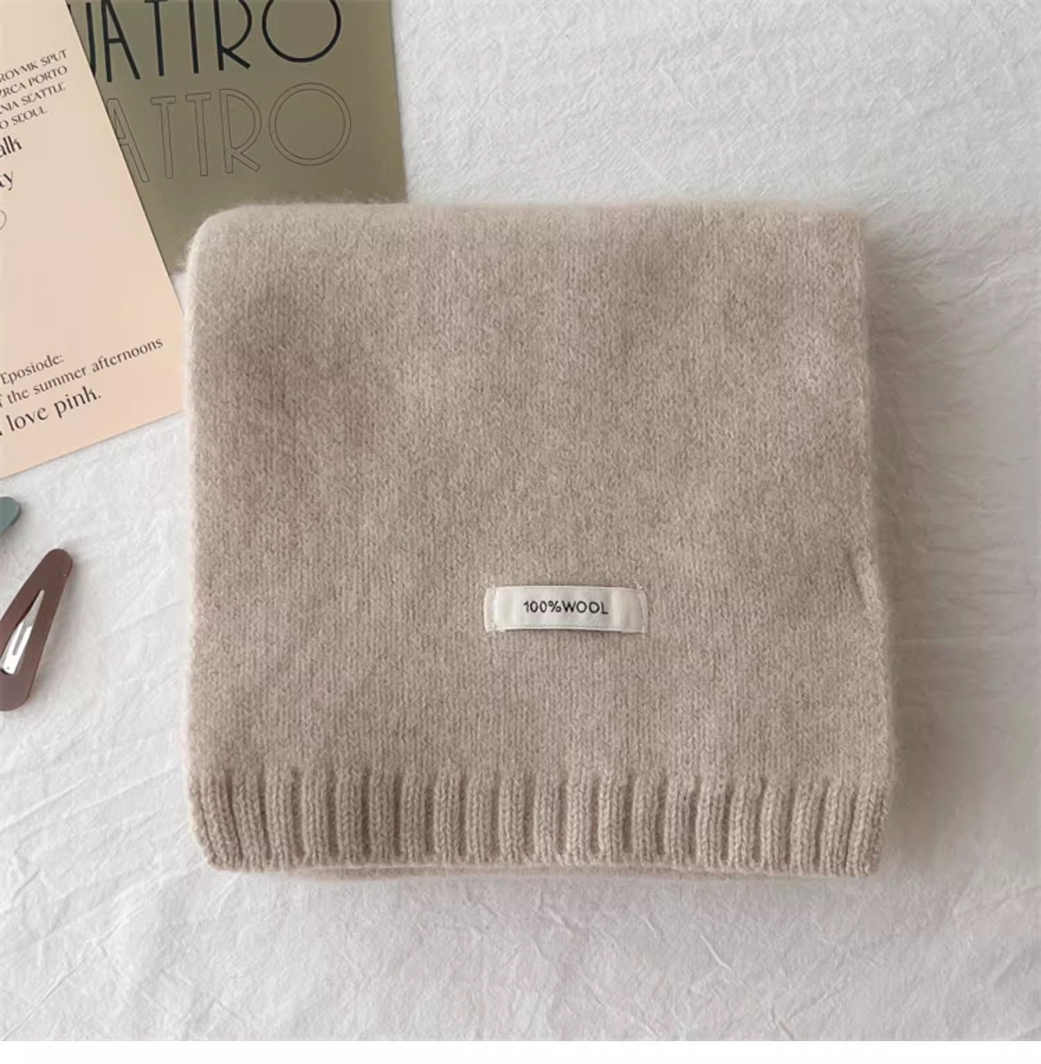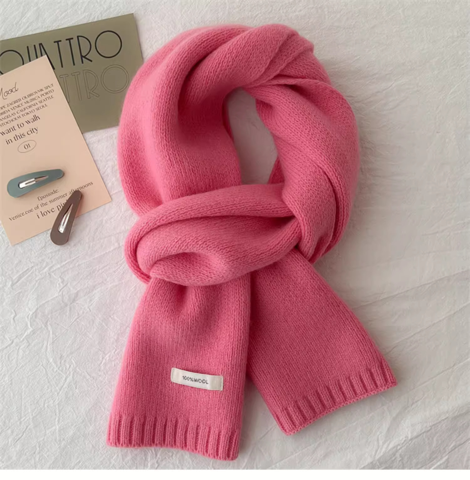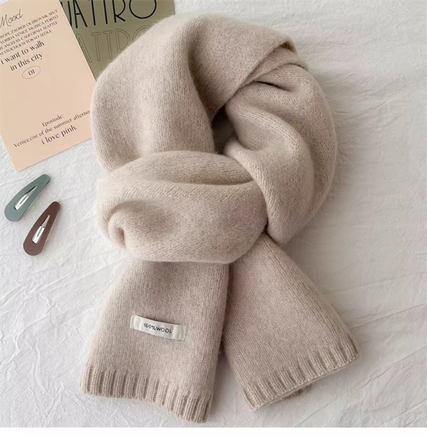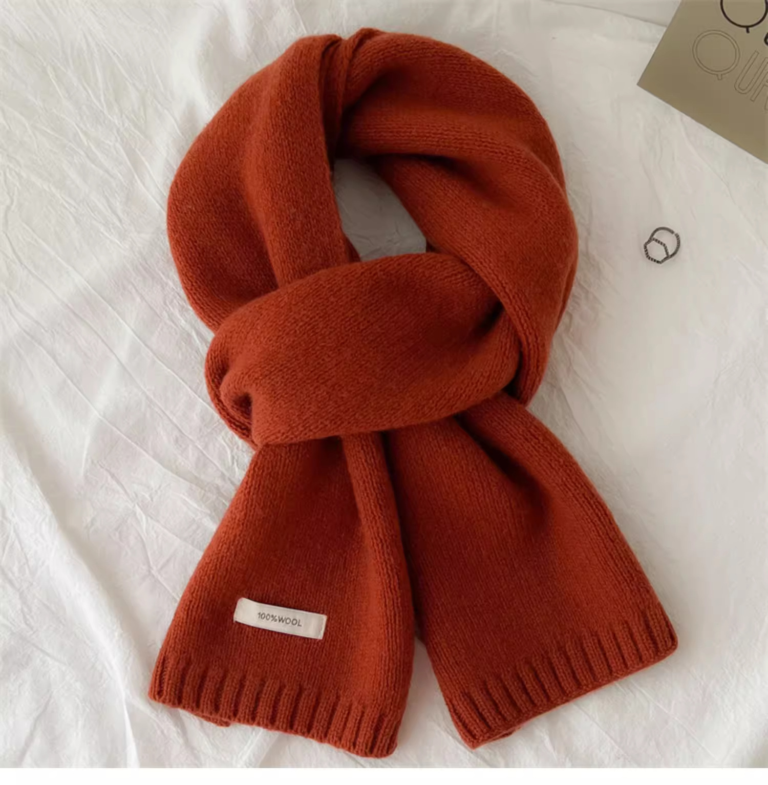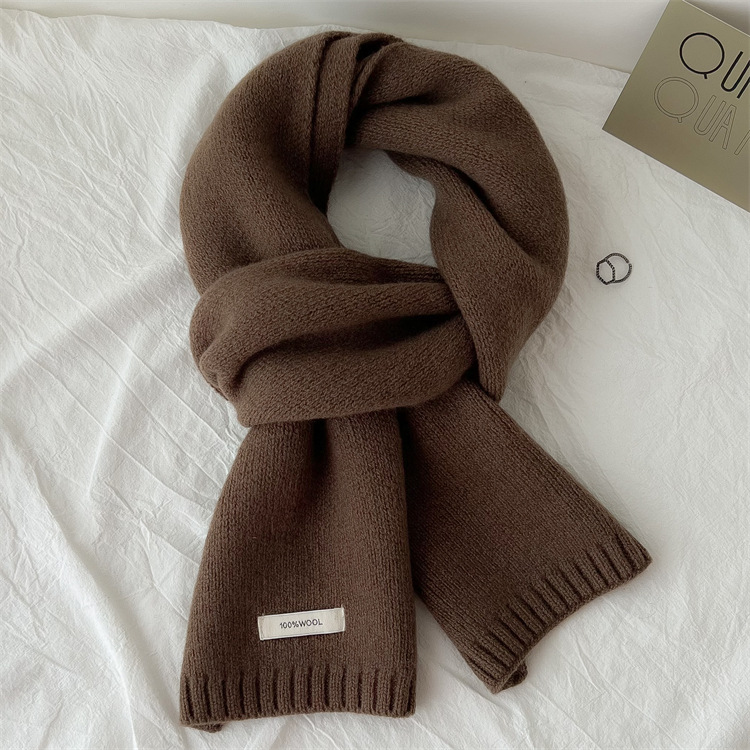 하이 퀄리티 100 순수 양모 스카프 여자 겨울 따뜻한 간단한 니트 올매치 한국 스타일 솔리드 컬러 스카프스토어 가기