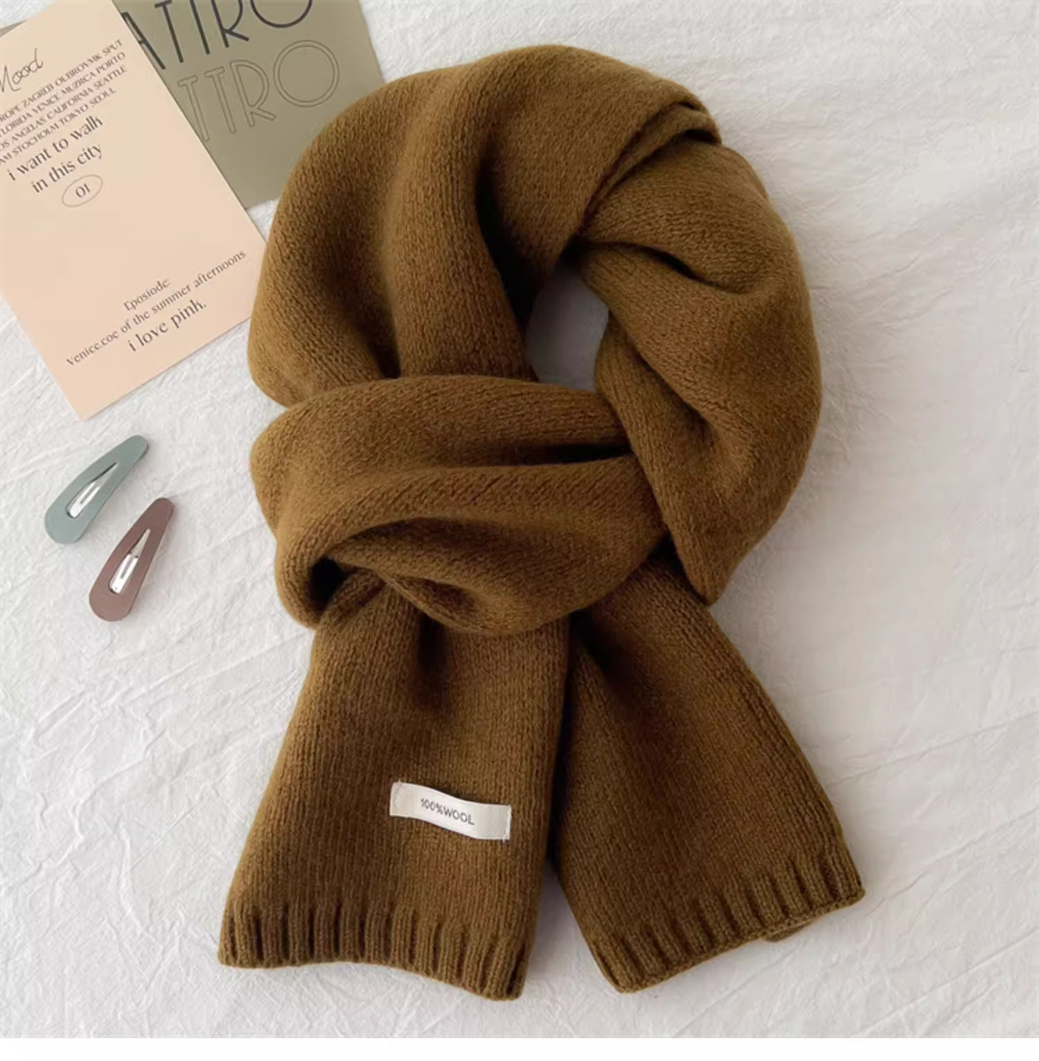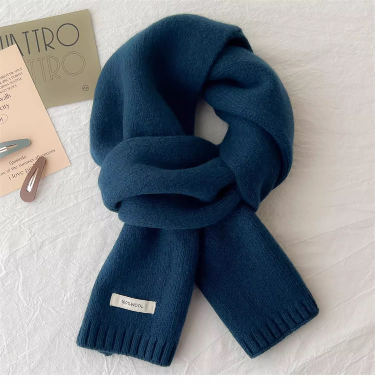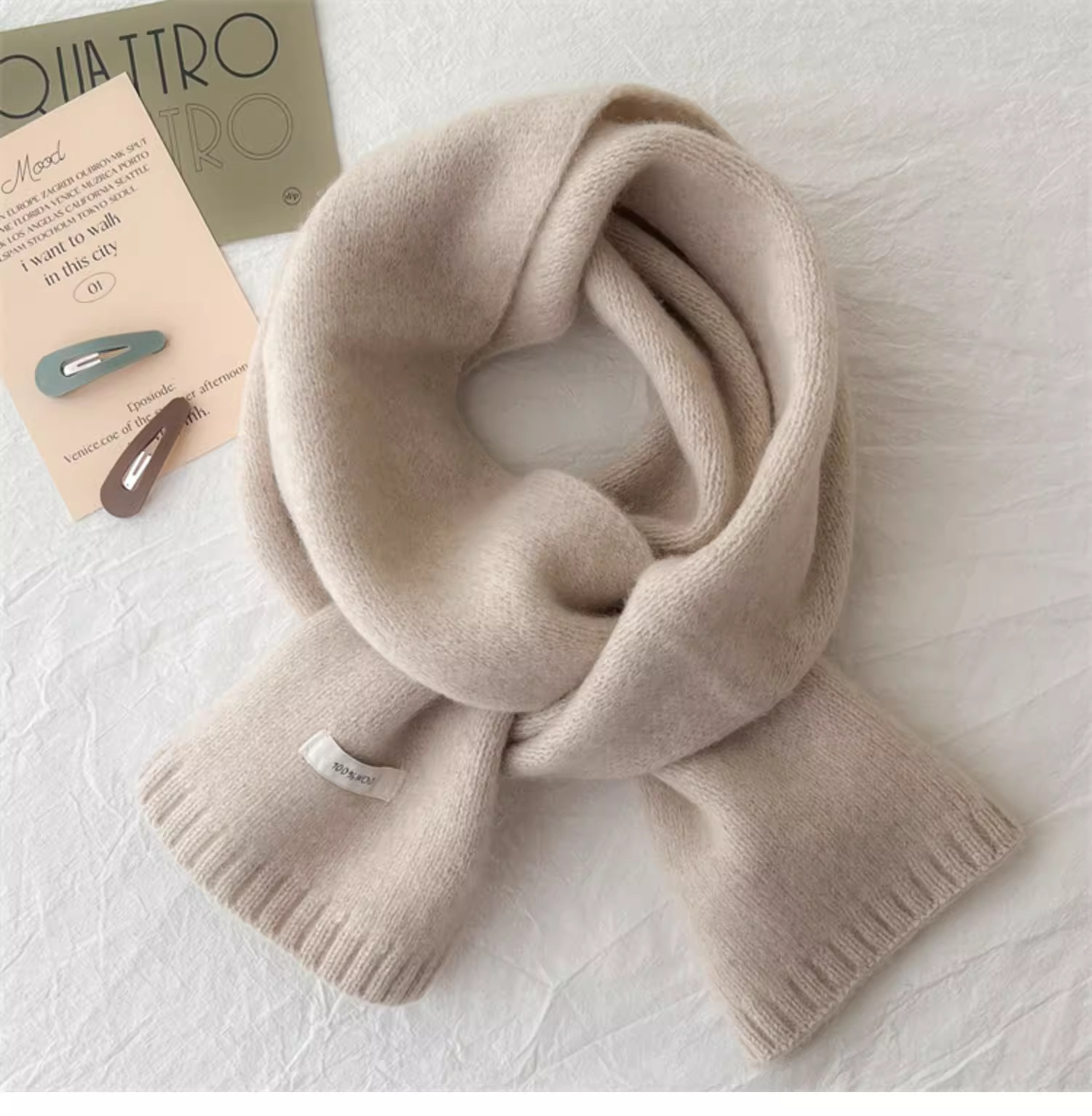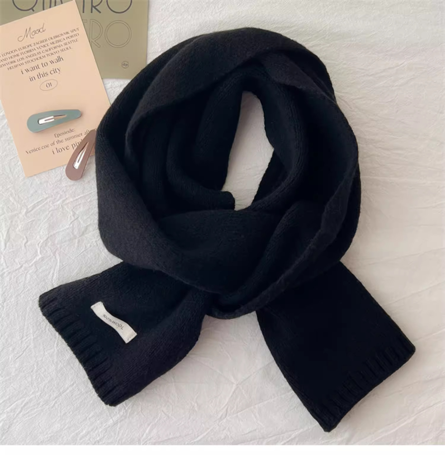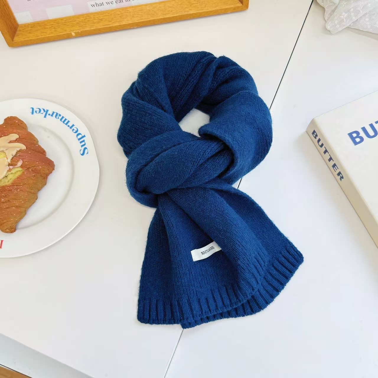 하이 퀄리티 100 순수 양모 스카프 여자 겨울 따뜻한 간단한 니트 올매치 한국 스타일 솔리드 컬러 스카프스토어 가기