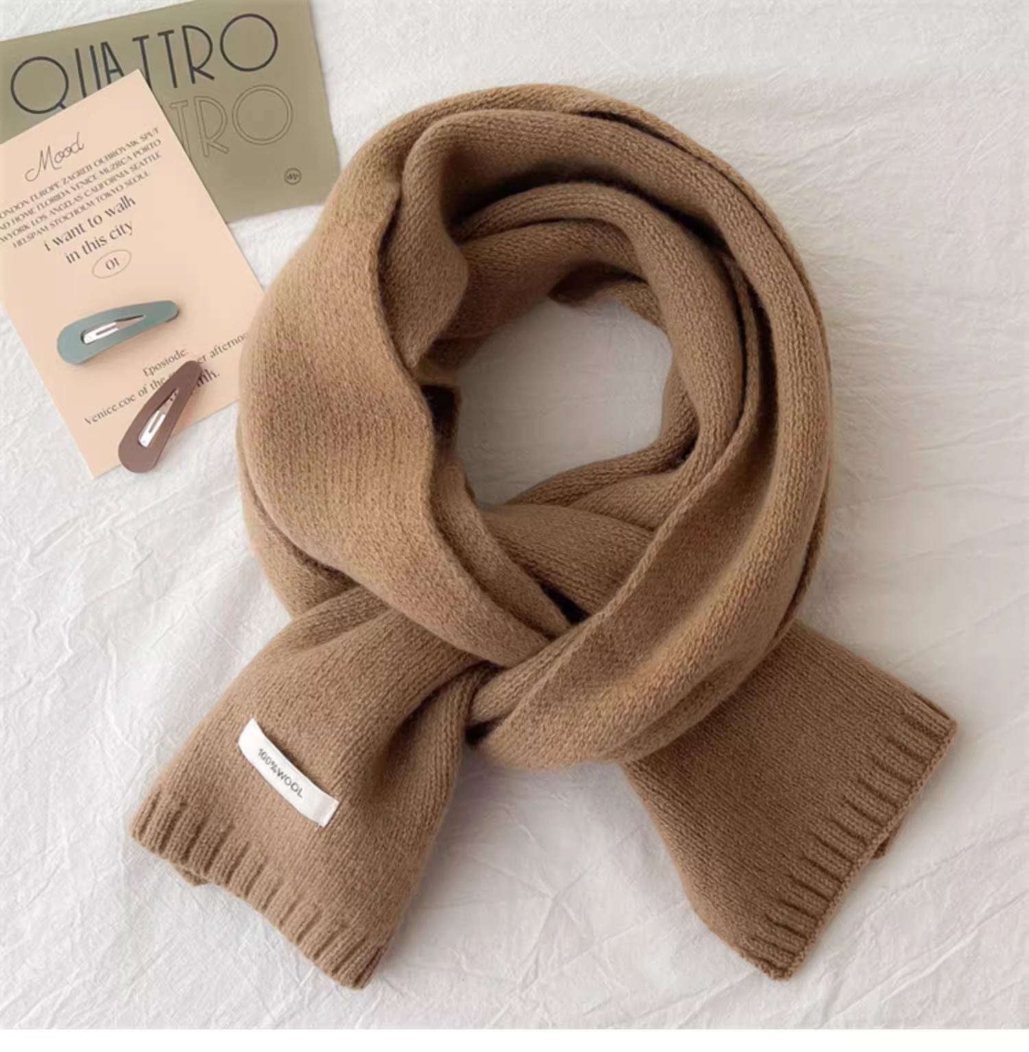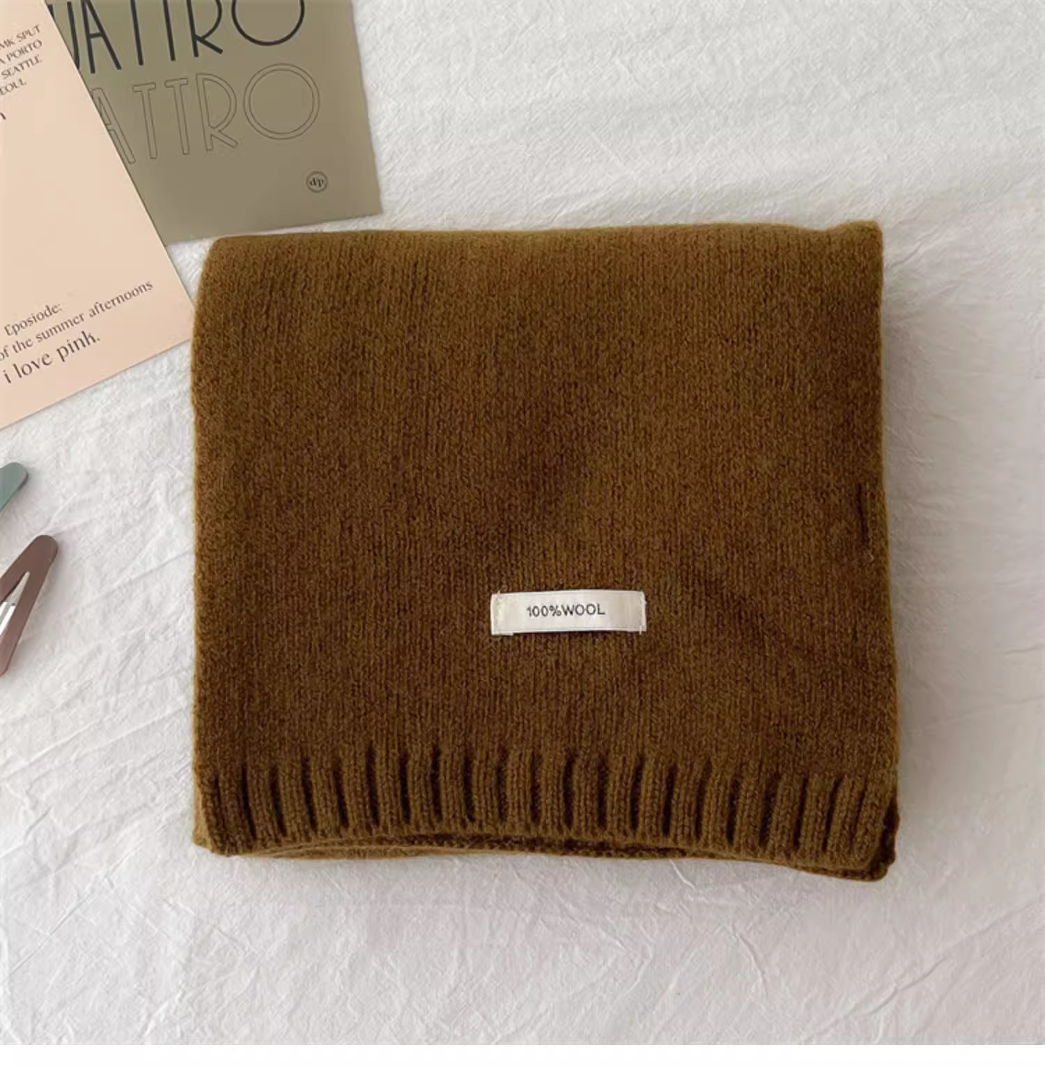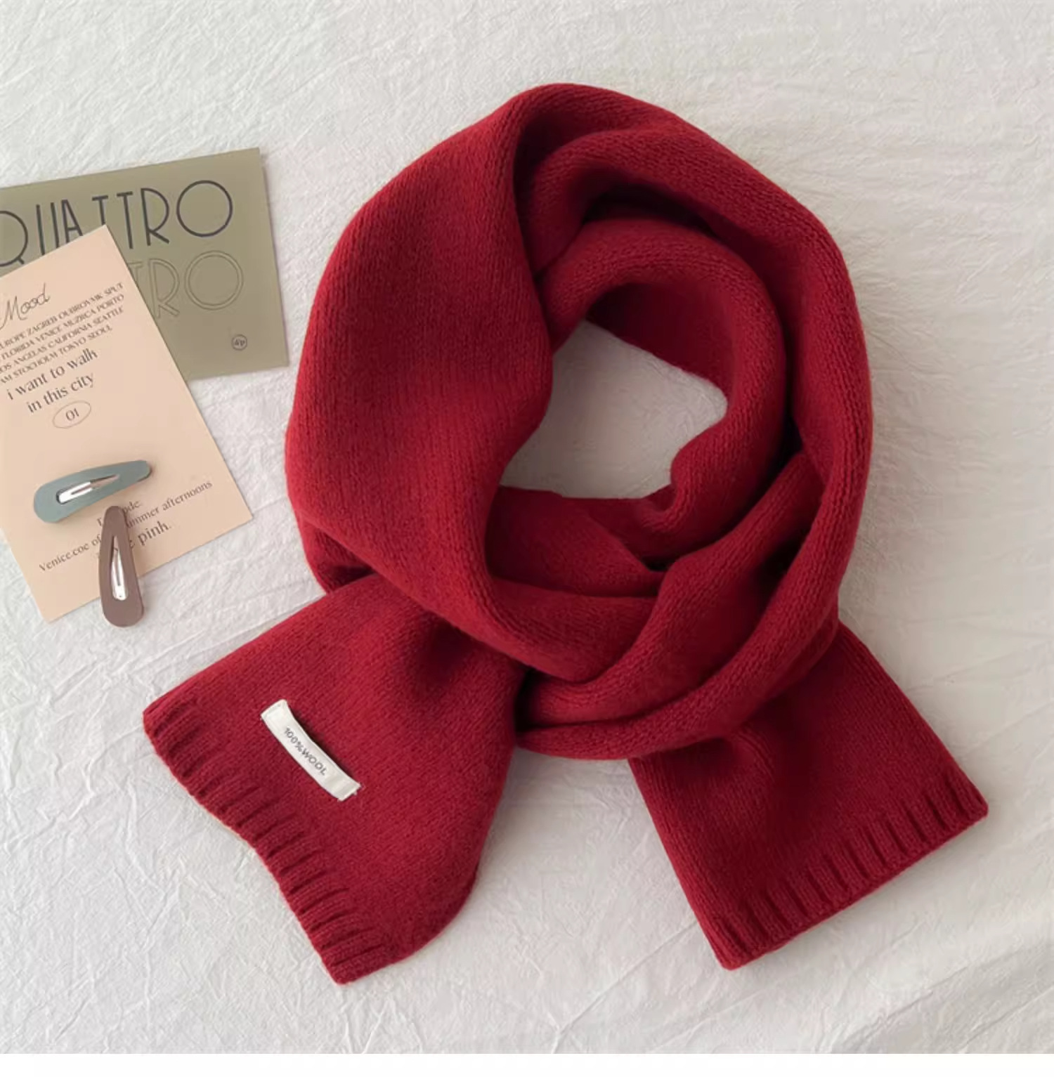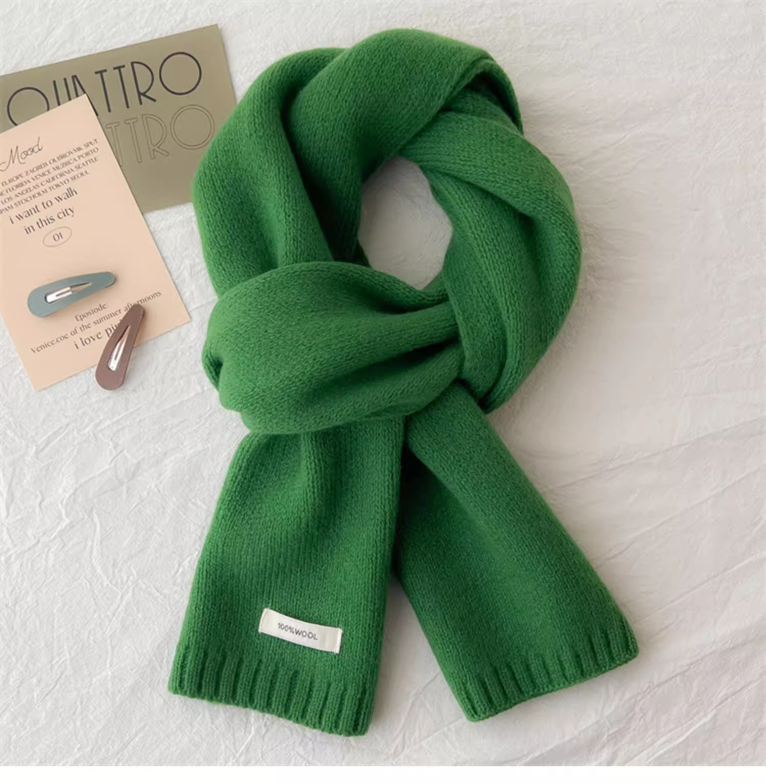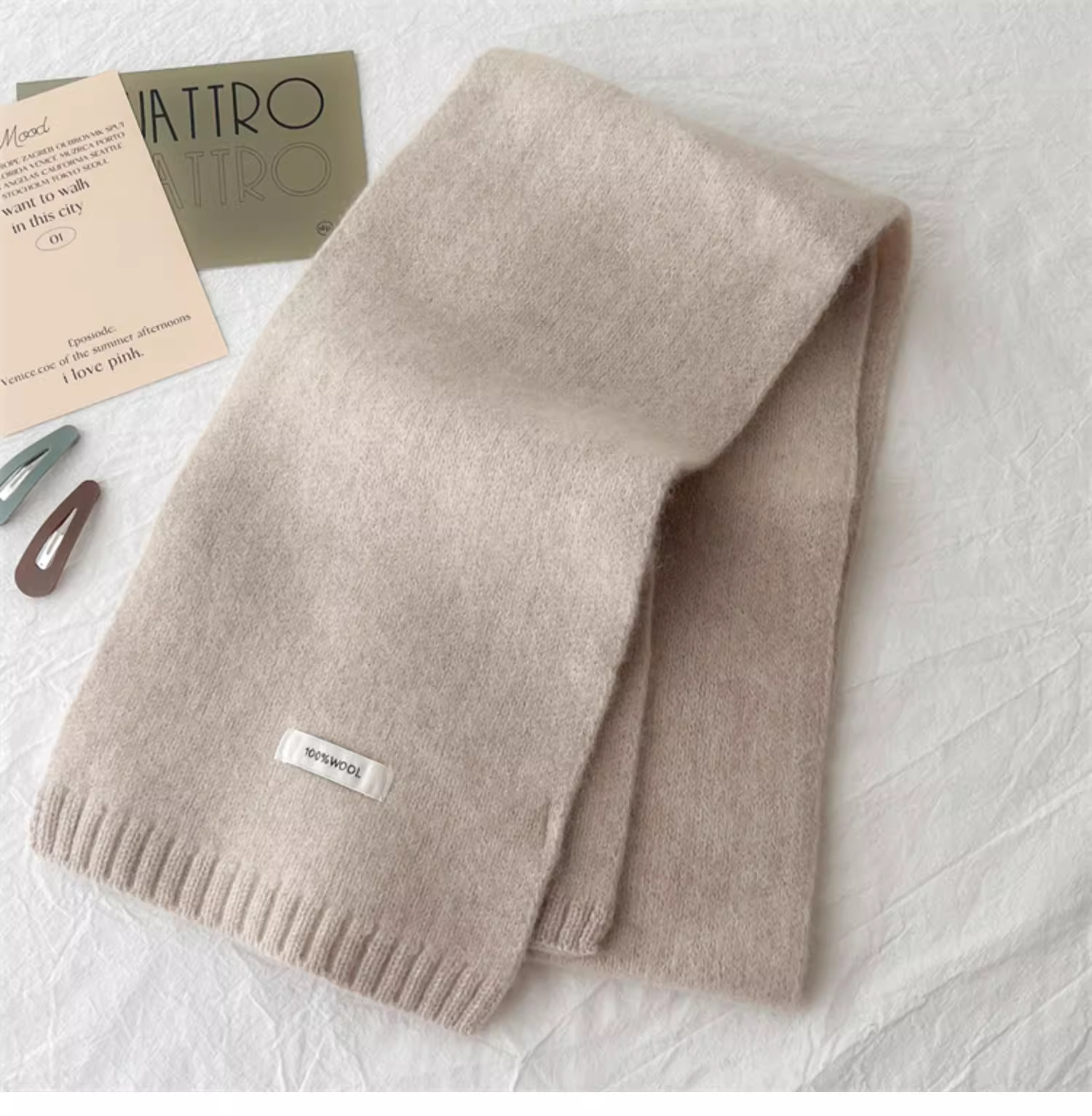 하이 퀄리티 100 순수 양모 스카프 여자 겨울 따뜻한 간단한 니트 올매치 한국 스타일 솔리드 컬러 스카프스토어 가기