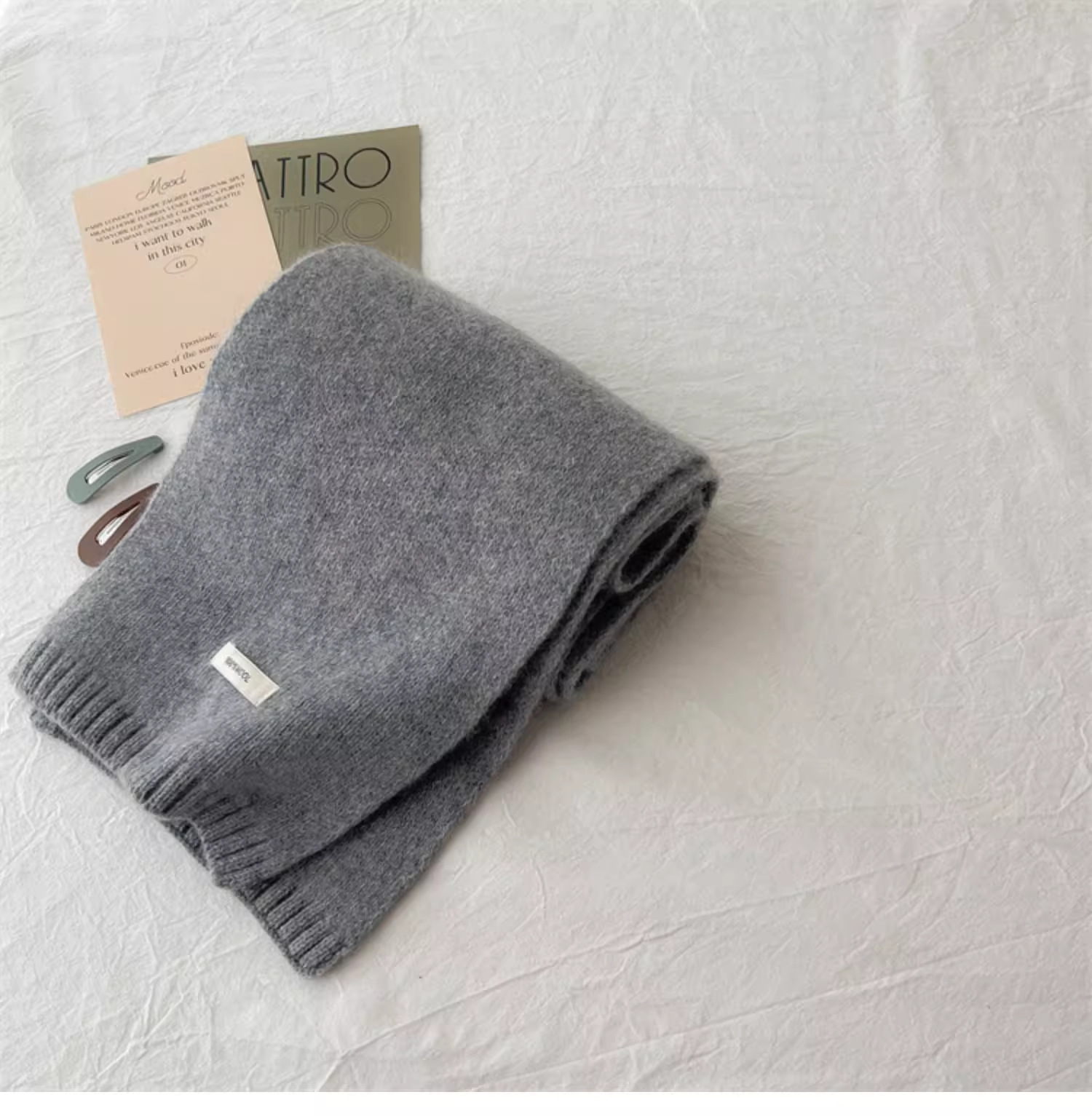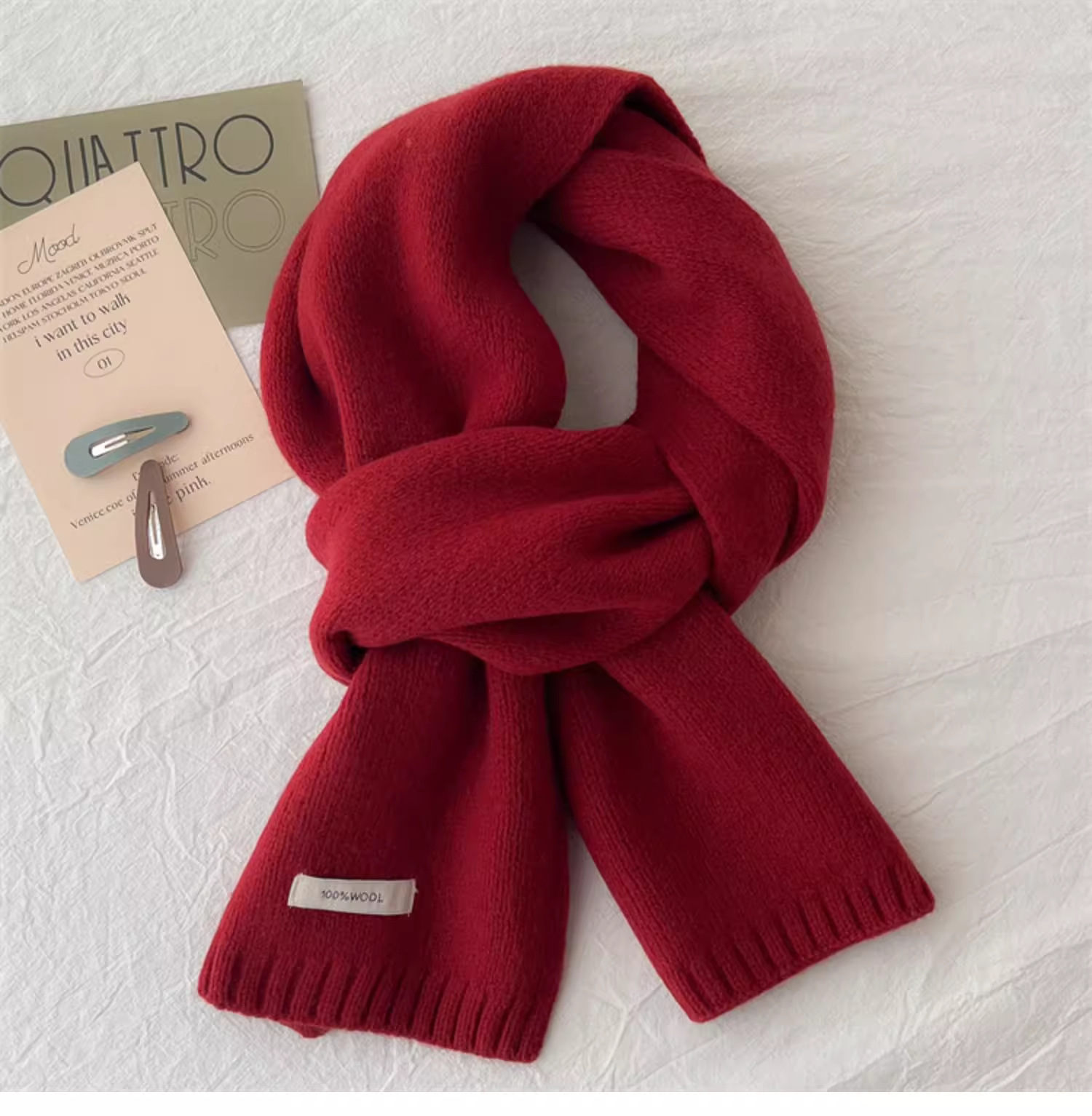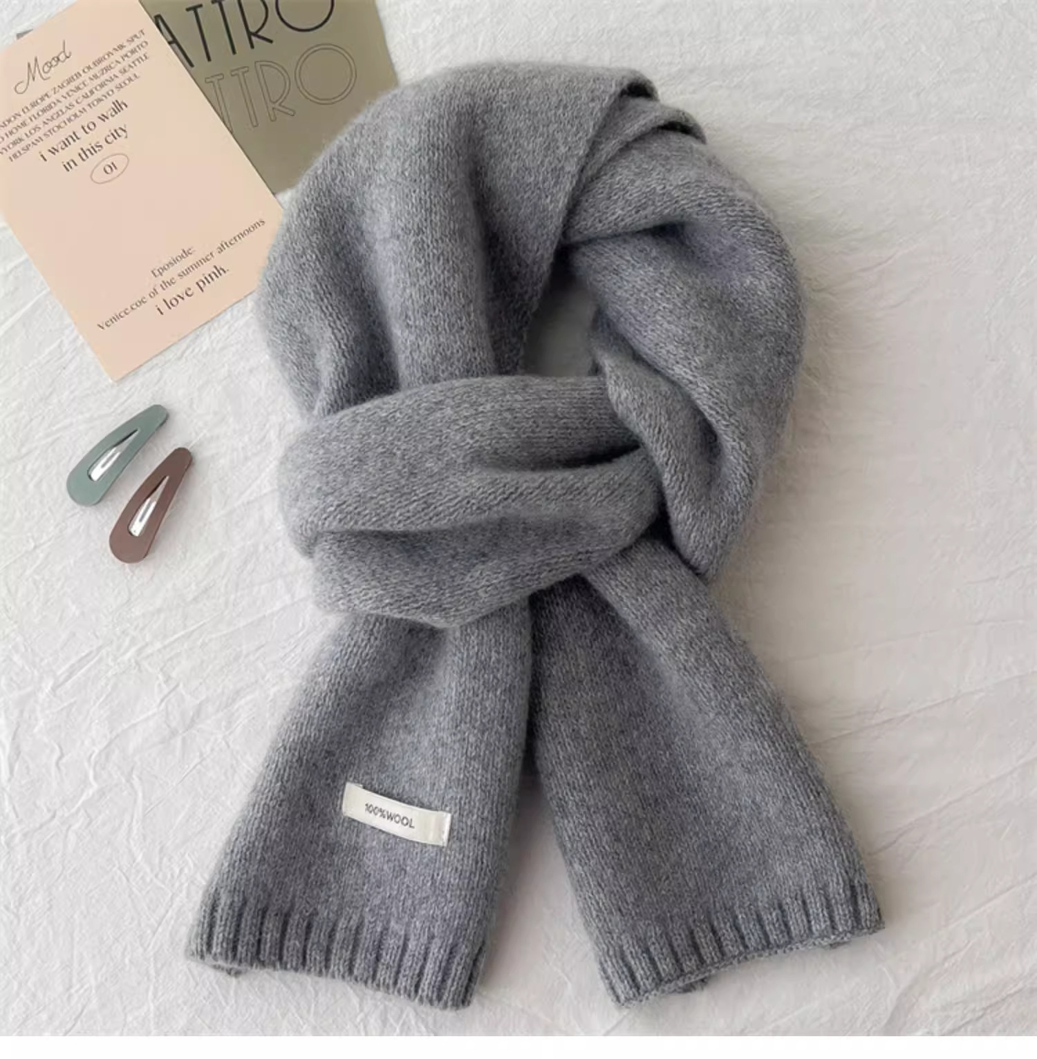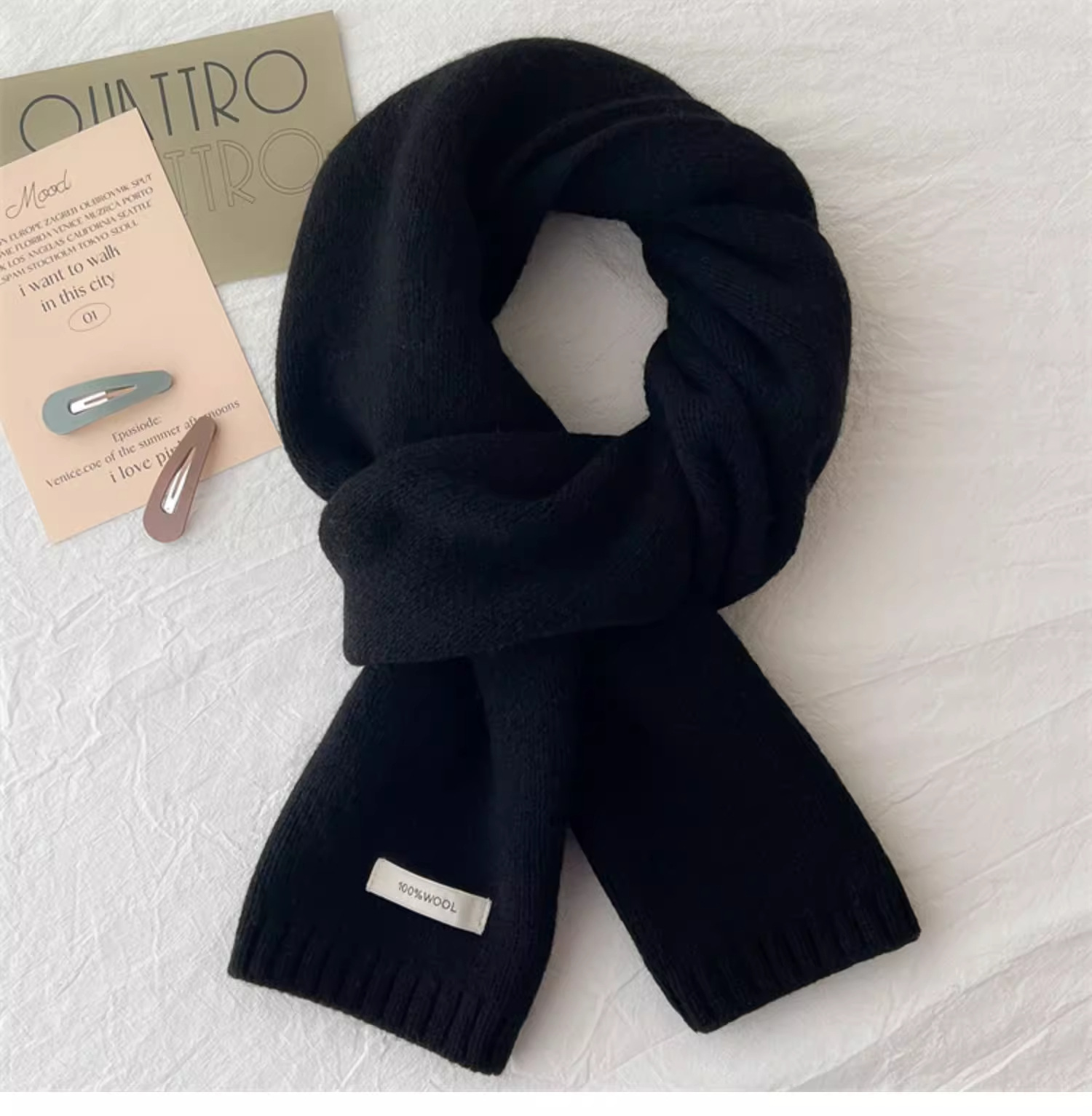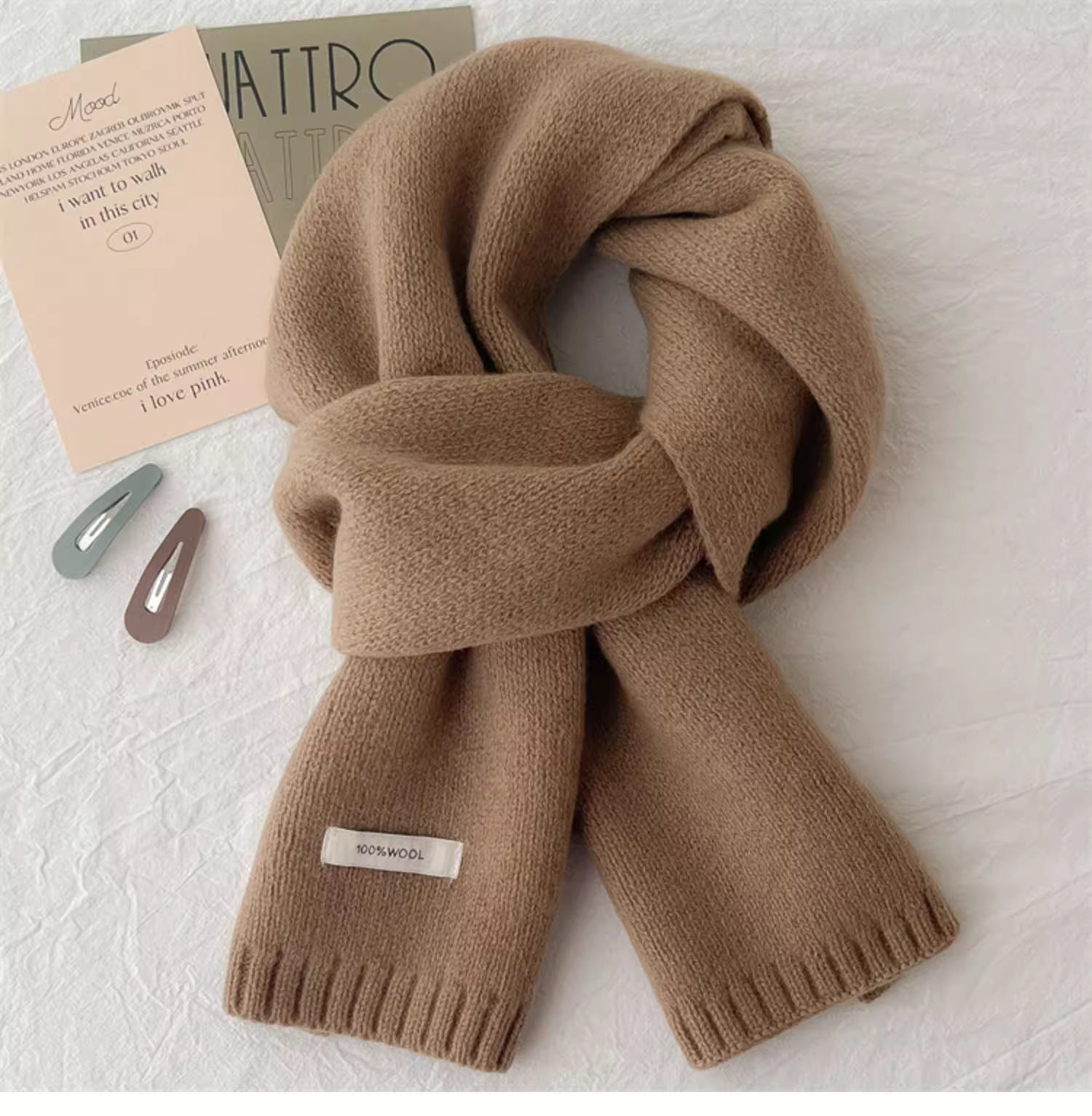 하이 퀄리티 100 순수 양모 스카프 여자 겨울 따뜻한 간단한 니트 올매치 한국 스타일 솔리드 컬러 스카프스토어 가기