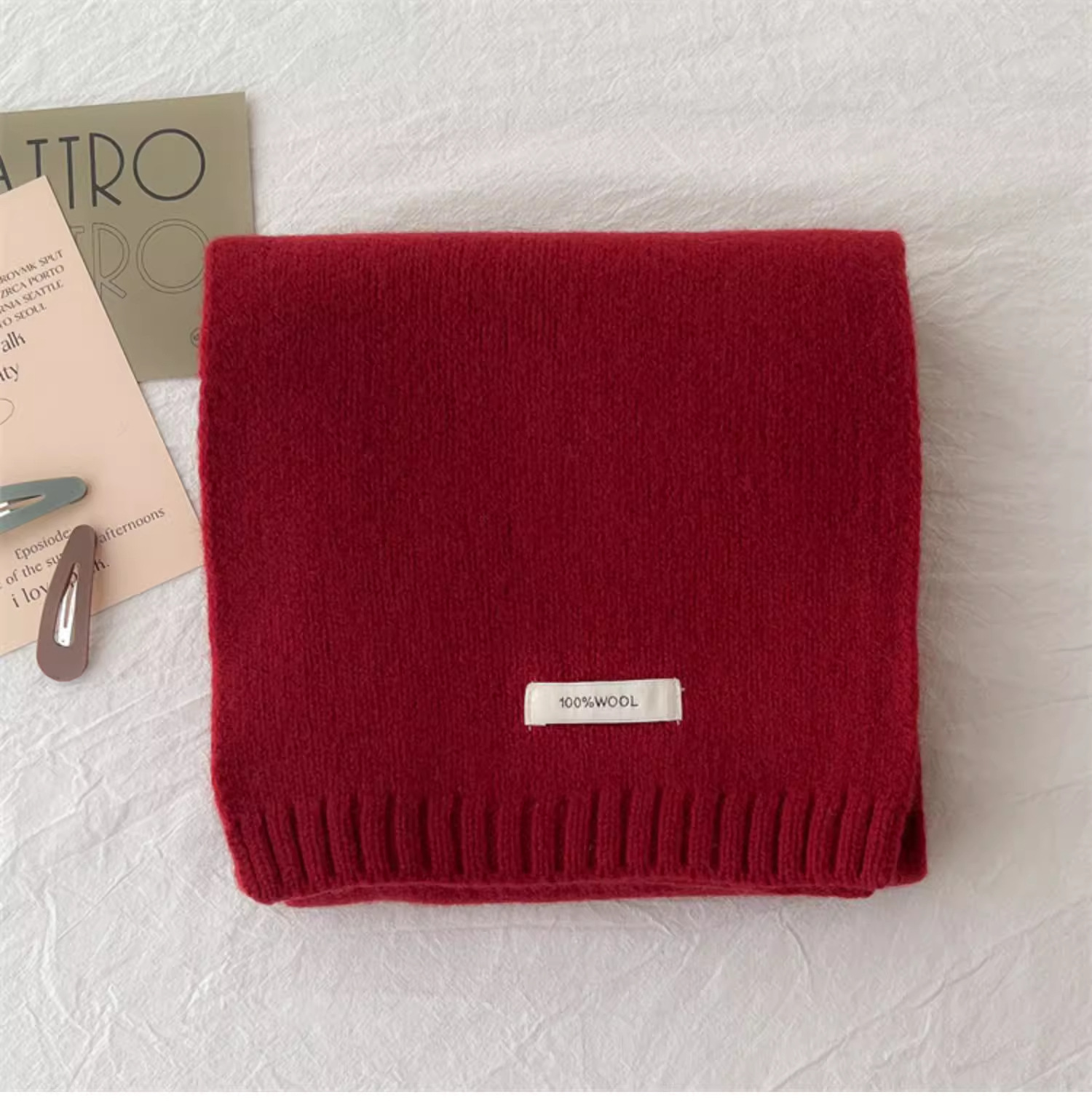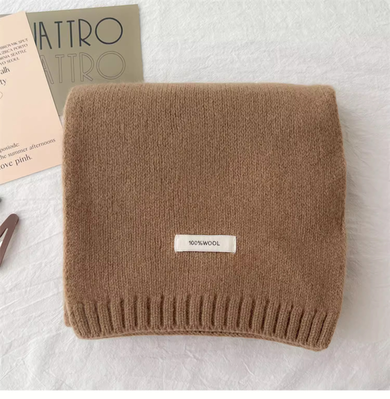 하이 퀄리티 100 순수 양모 스카프 여자 겨울 따뜻한 간단한 니트 올매치 한국 스타일 솔리드 컬러 스카프