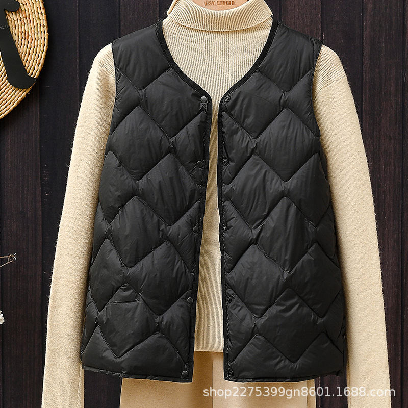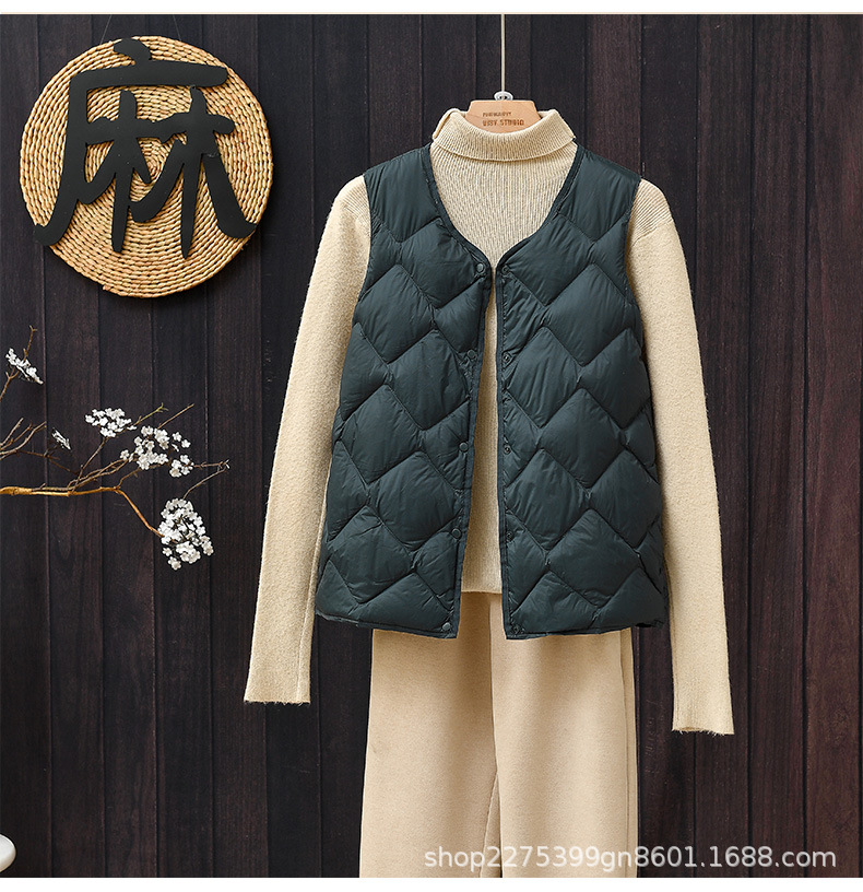 화이트 덕 다운 2024 새로운 한국 스타일 라이트 다운 재킷 여성 클라우드 쇼트 다운 조끼 따뜻한 조끼 트렌디 웨이스트 코트