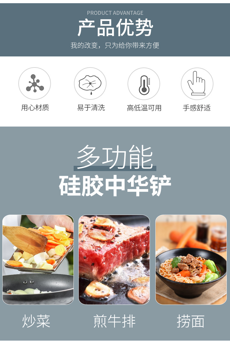 두꺼운 실리콘 주걱 중국 비 스틱 팬 고온 저항 주방 주방 주방 주방 전체 패키지 볶음 삽 도매