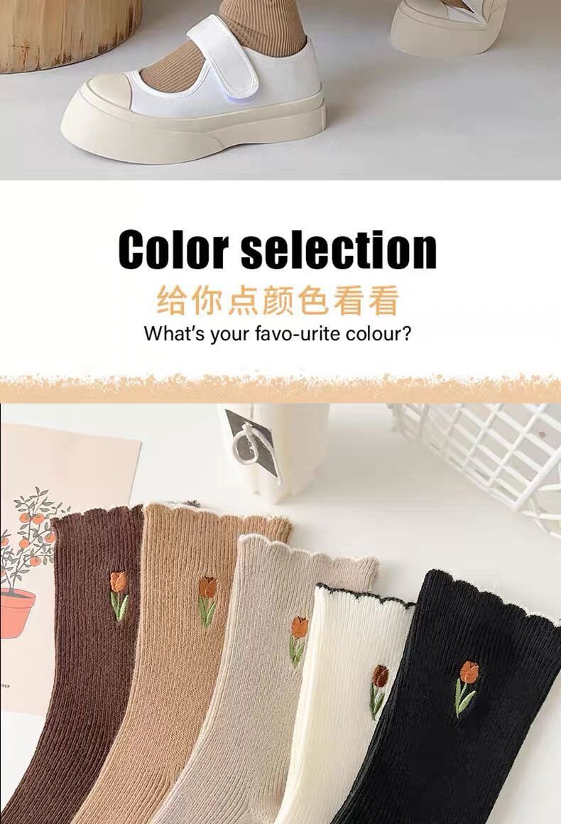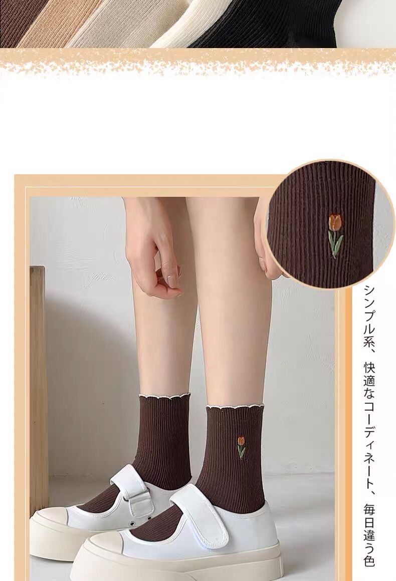 양말 여자의 봄 얇은 자수 중간 길이 양말 한국 통기성 단색 레이스 양말 캐주얼 스포츠 양말 주지 양말