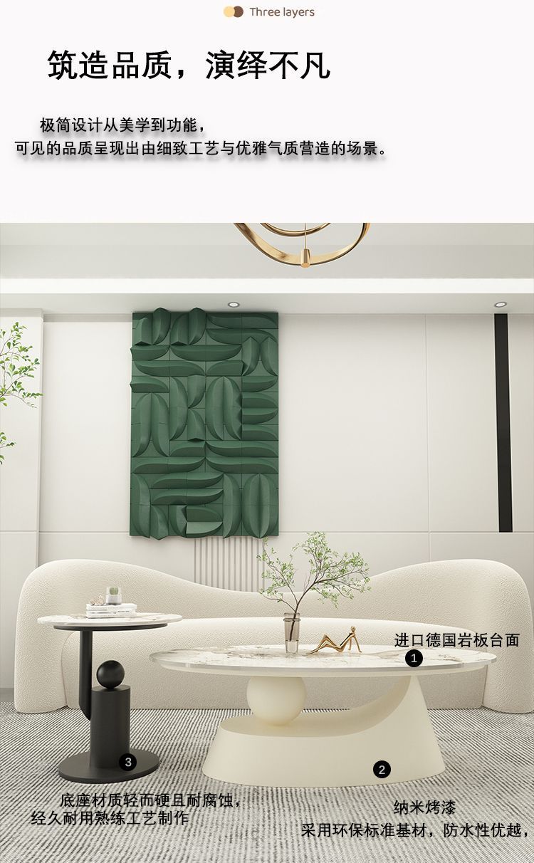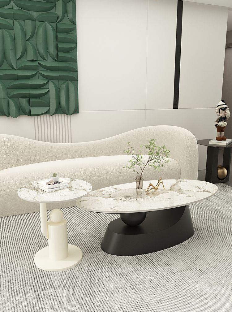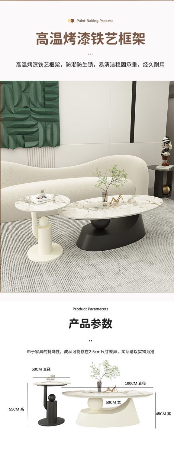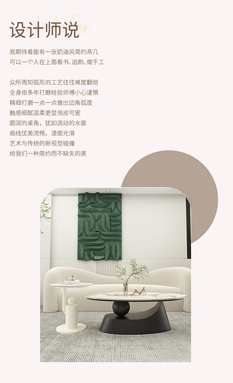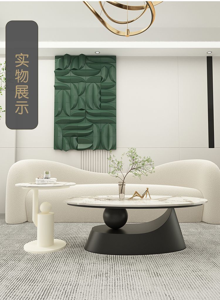 타원형 크림 스타일 록 보드 커피 테이블 간단한 작은 아파트 디자이너 빛 럭셔리 테이블 현대 인터넷 연예인 홈 거실