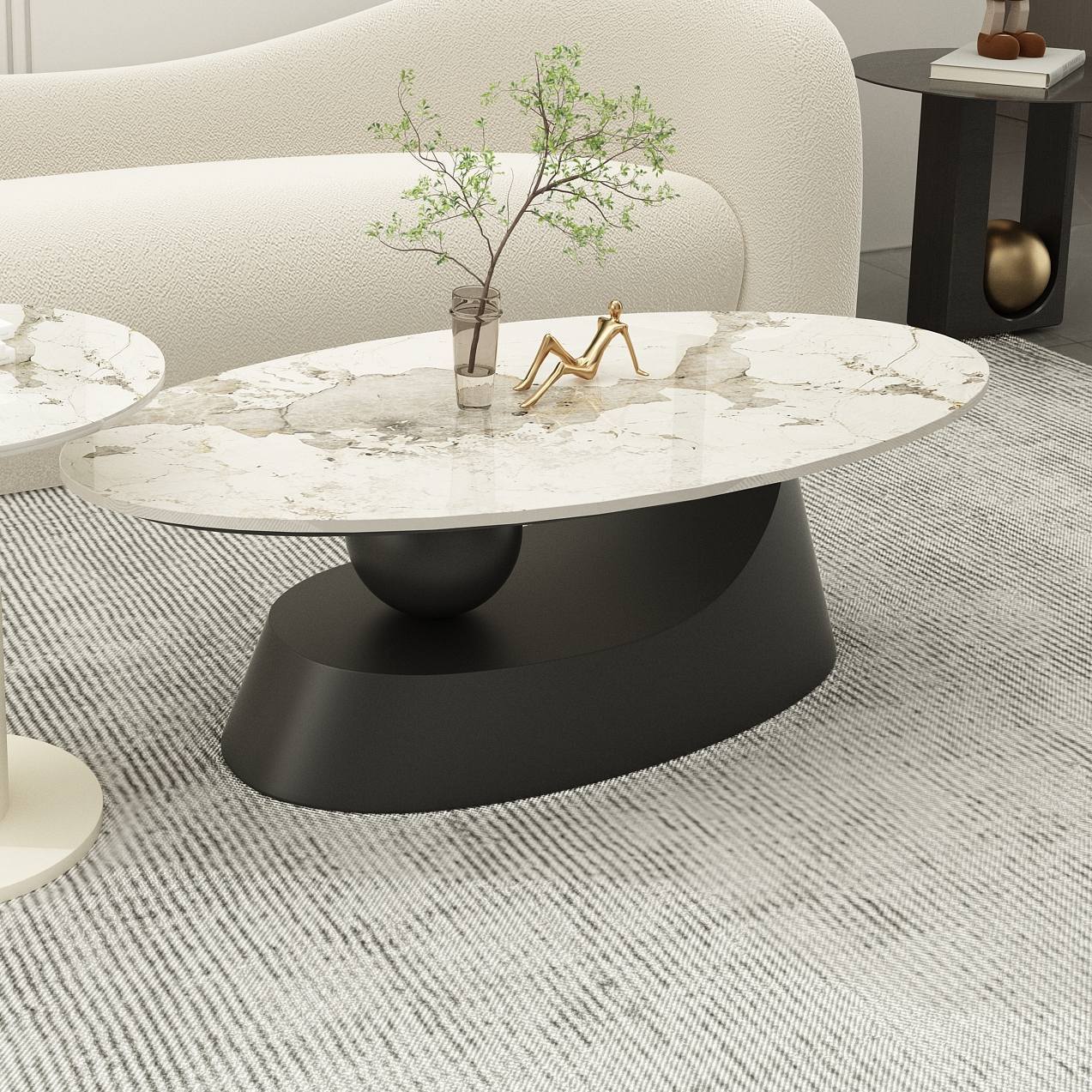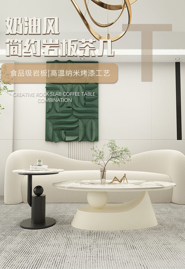 • 단일 커피 테이블: 유백색 프레임 + 판도라 슬레이트