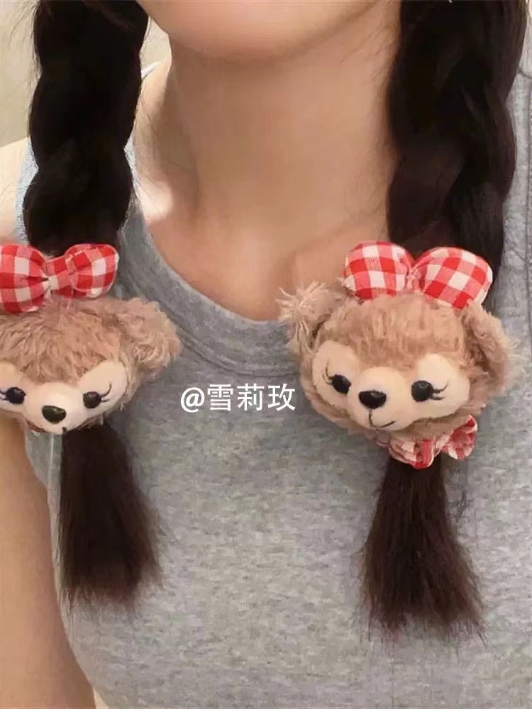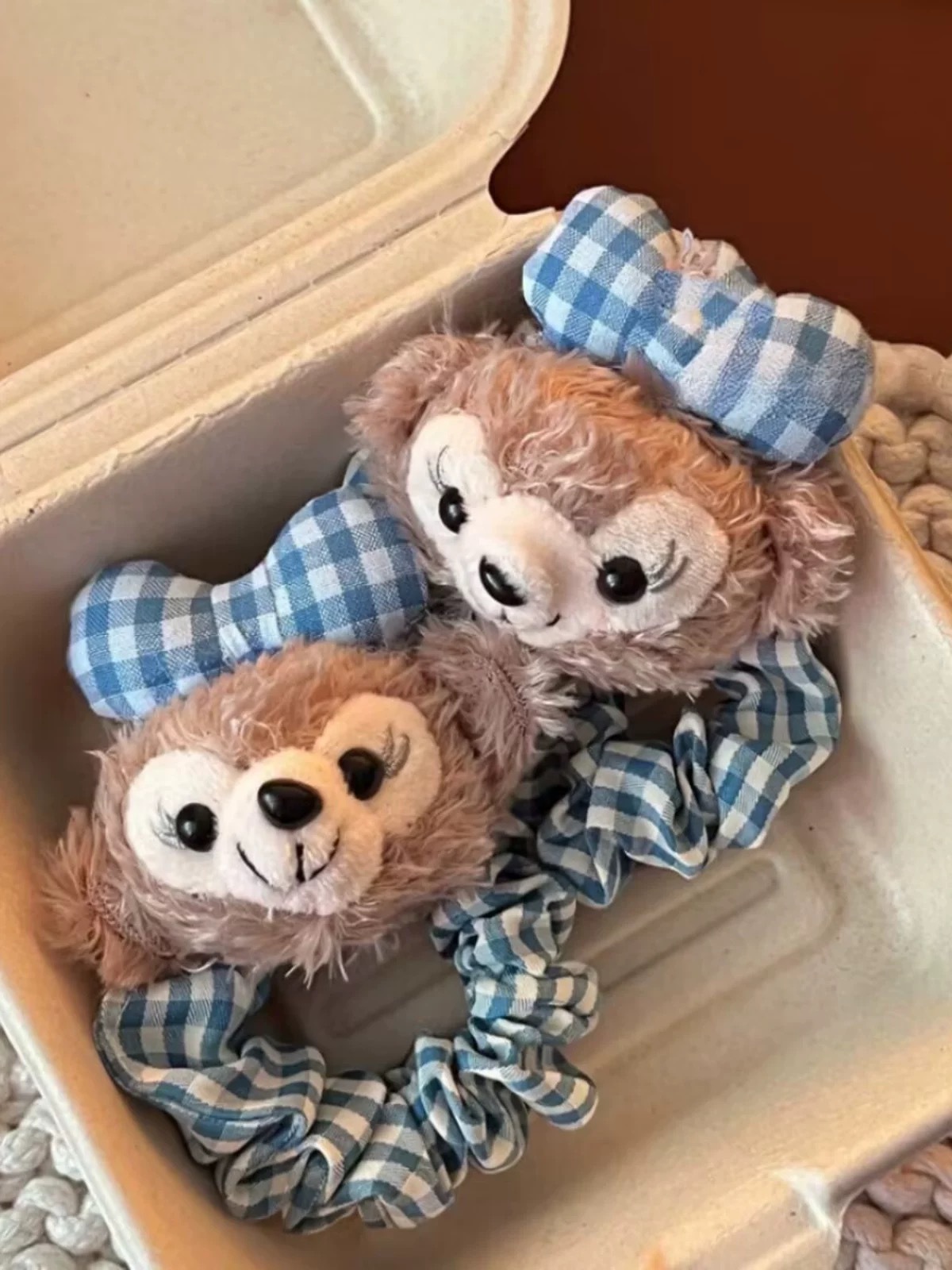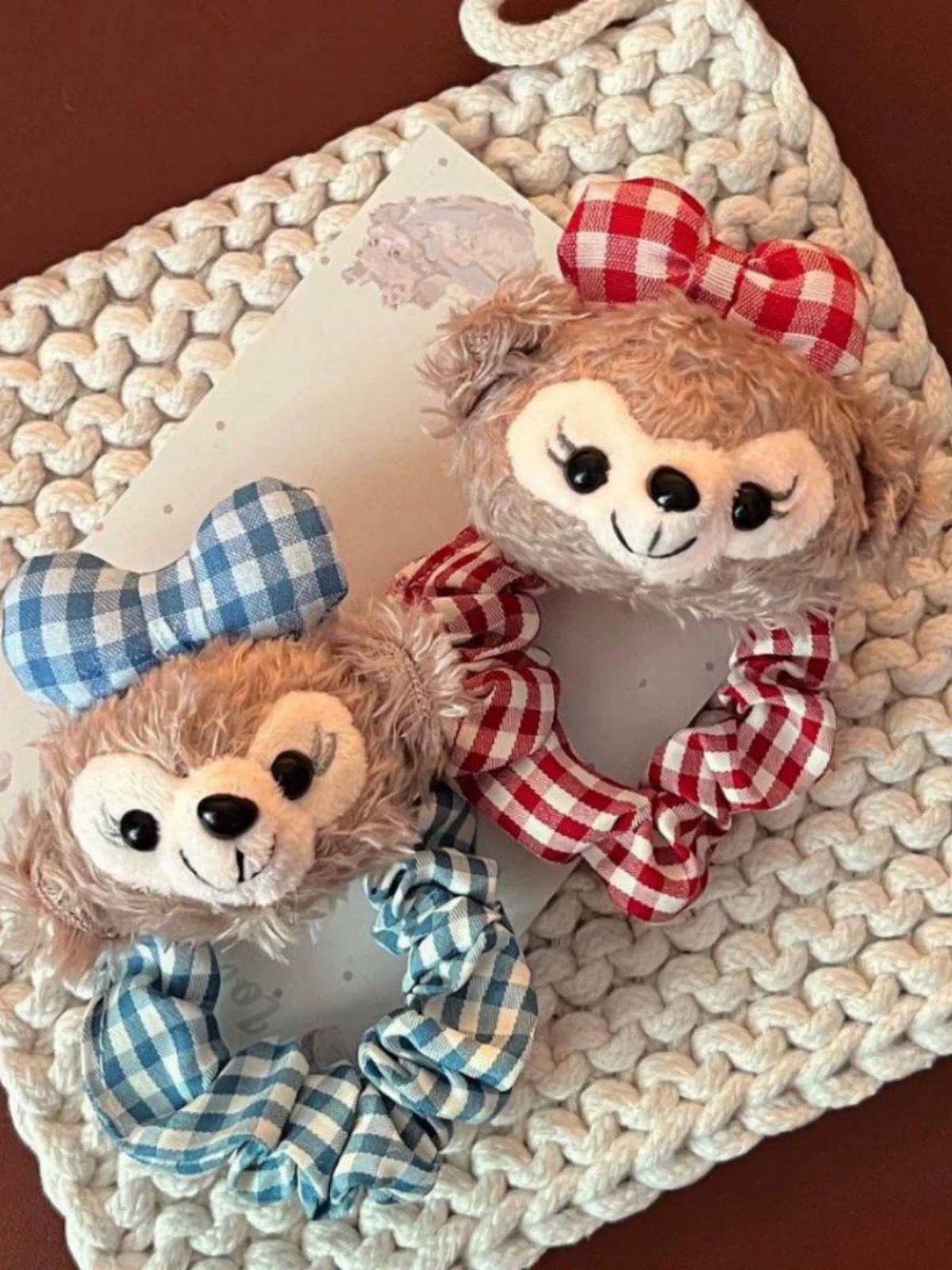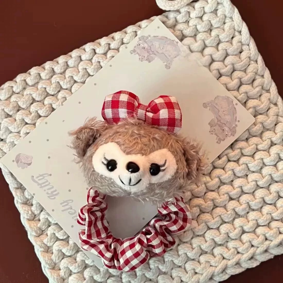 귀여운 셜리 체크 무늬 머리 반지! 헤어 로프 부드러운 사랑스러운 소녀의 심장 만화 더피 곰 넥타이 헤어 로프 컬러스토어 가기