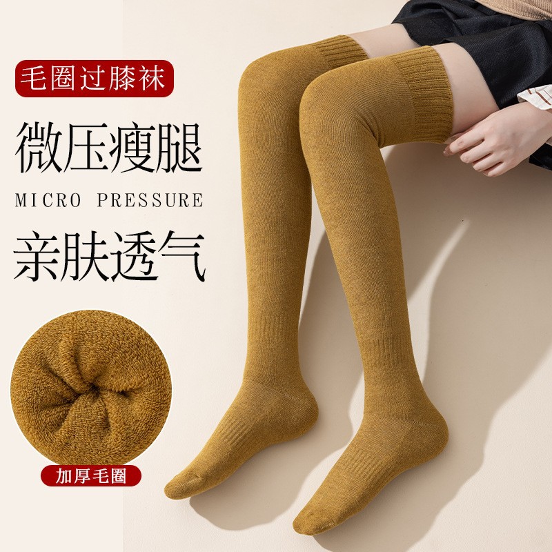 가을과 겨울 양말 어린이 기모 두꺼운 무릎 양말 겨울 따뜻한 종아리 양말 주지 양말 테리 무릎 패드스토어 가기