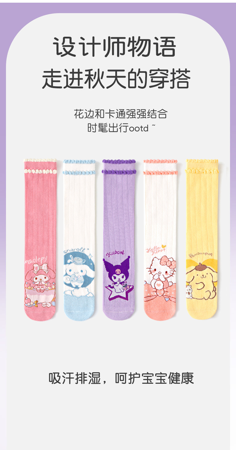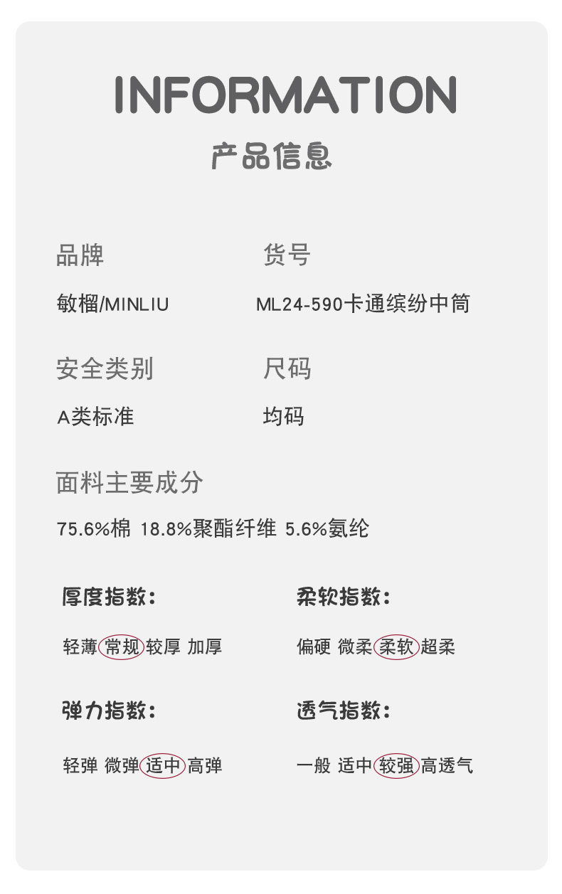 • ML24-590 카툰 컬러풀 미드 종아리 양말 가을 핑크