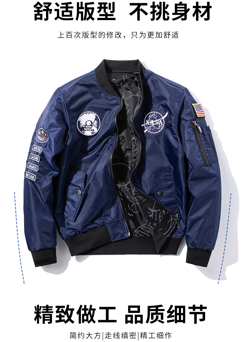 NASA 새로운 양면 남성 캐주얼 스포츠 재킷 코트 가을과 겨울 비행 세트 플러스 사이즈 남성복스토어 가기