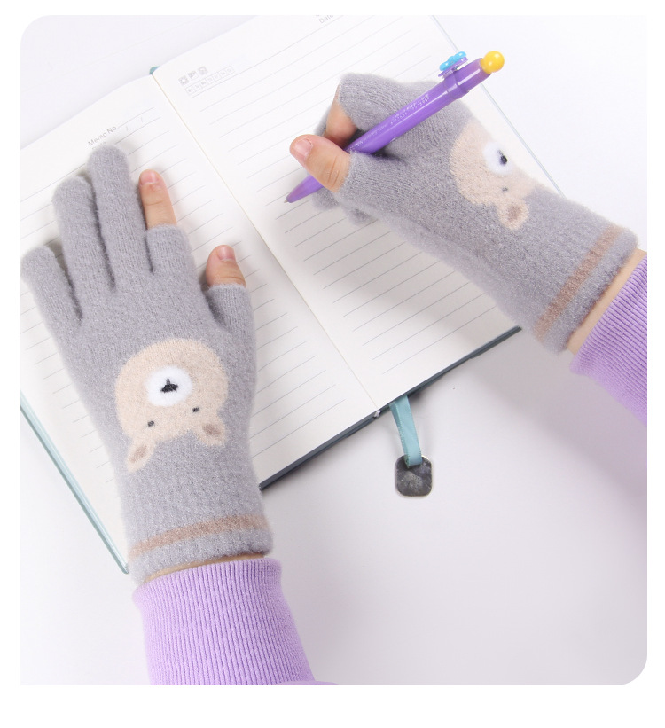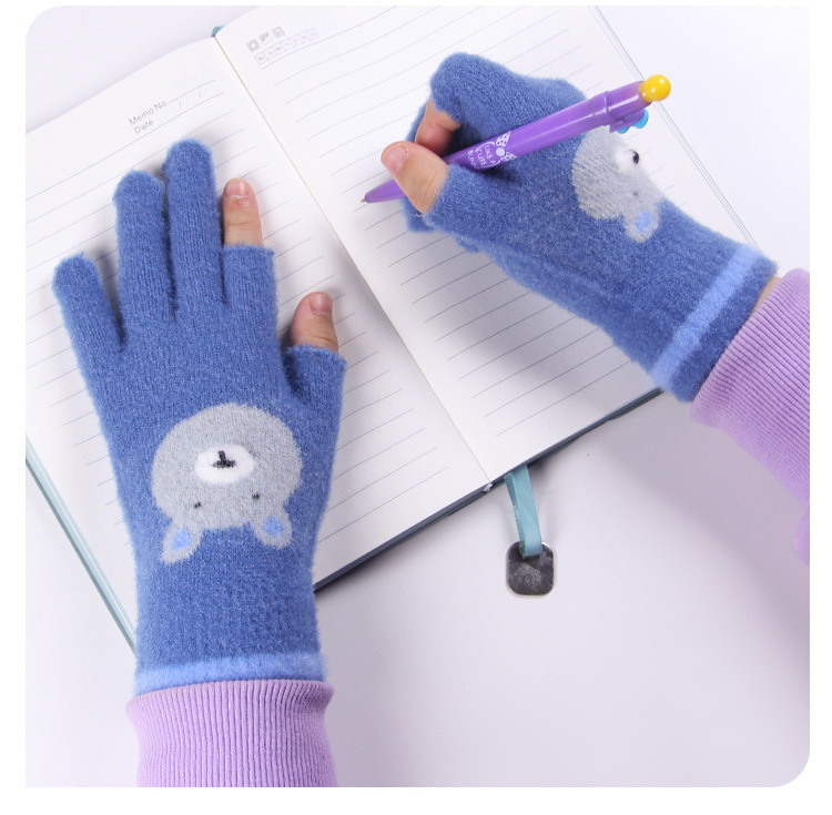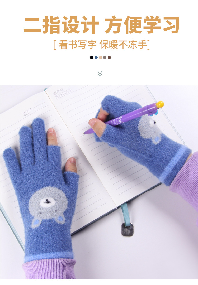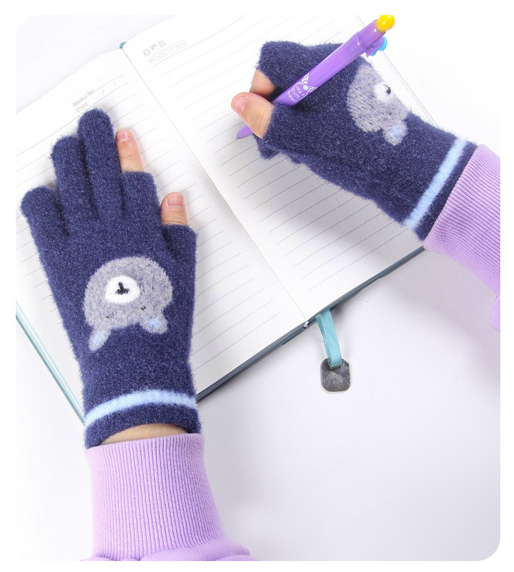 어린이 장갑 따뜻한 이슬 2 손가락 가을과 겨울 쓰기 만화 소년과 초등학생을위한 귀여운 양모 니트