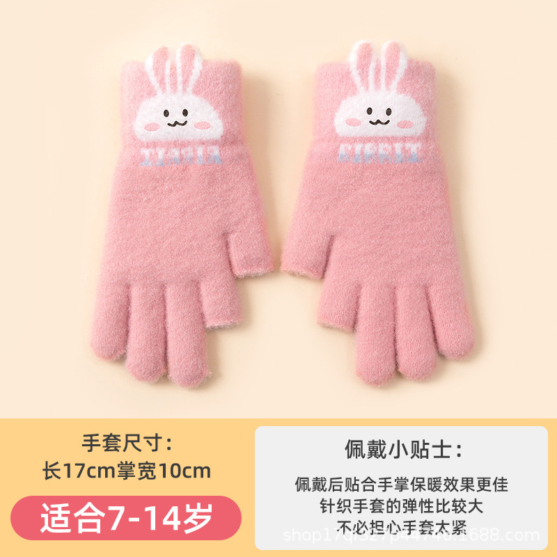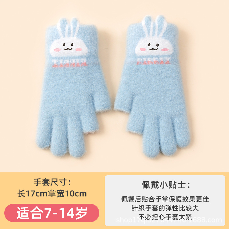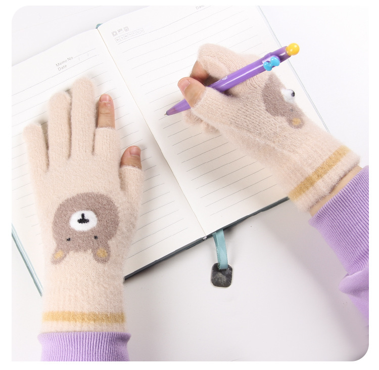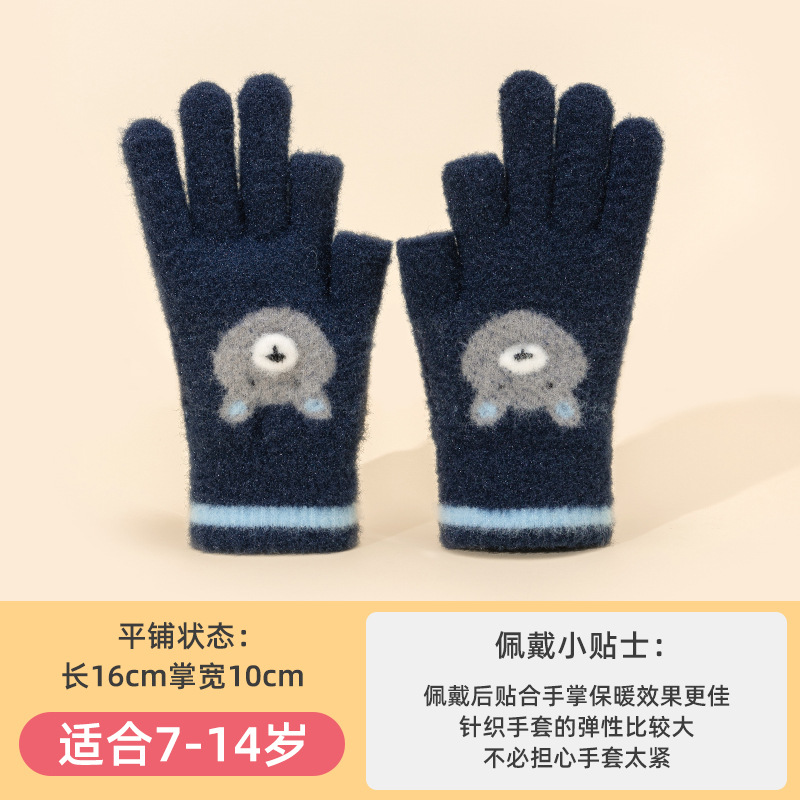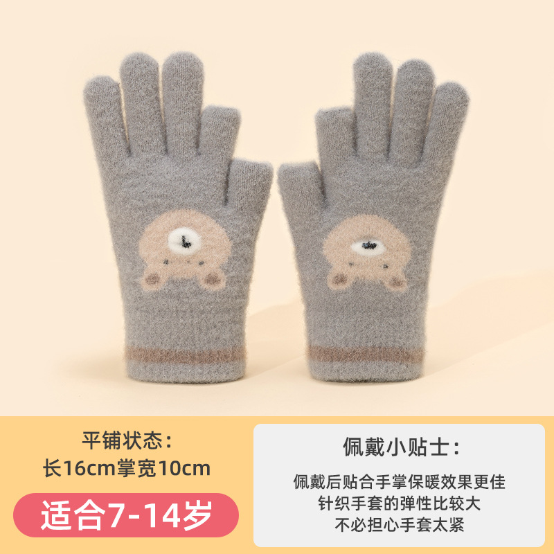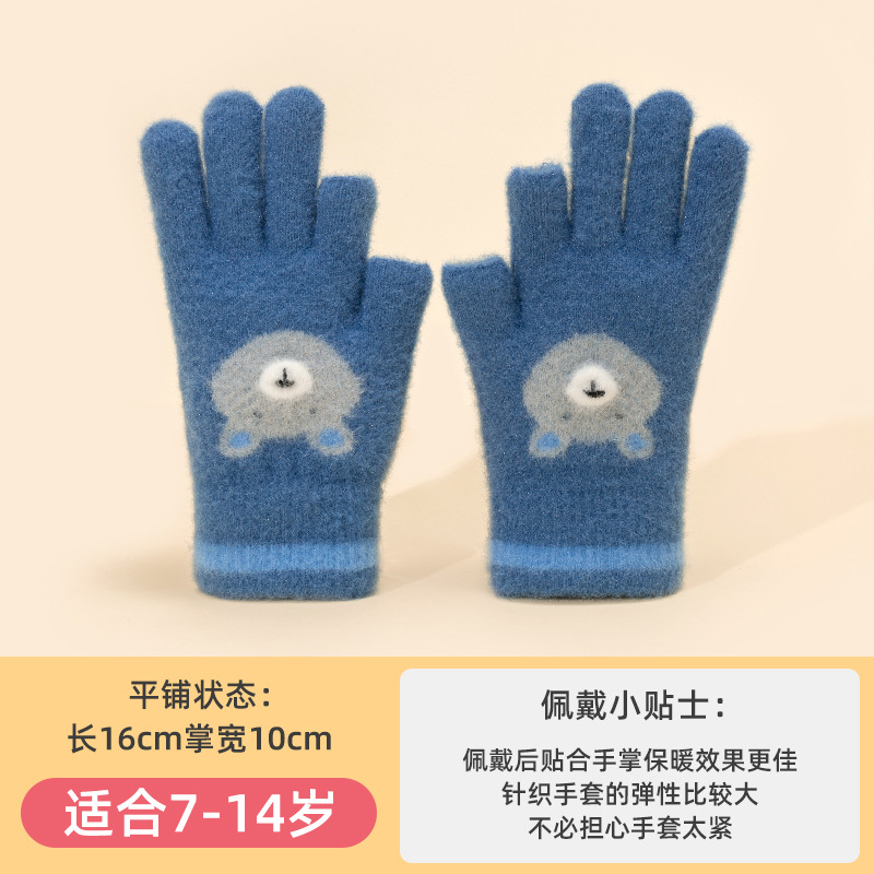 어린이 장갑 따뜻한 이슬 2 손가락 가을과 겨울 쓰기 만화 소년과 초등학생을위한 귀여운 양모 니트스토어 가기