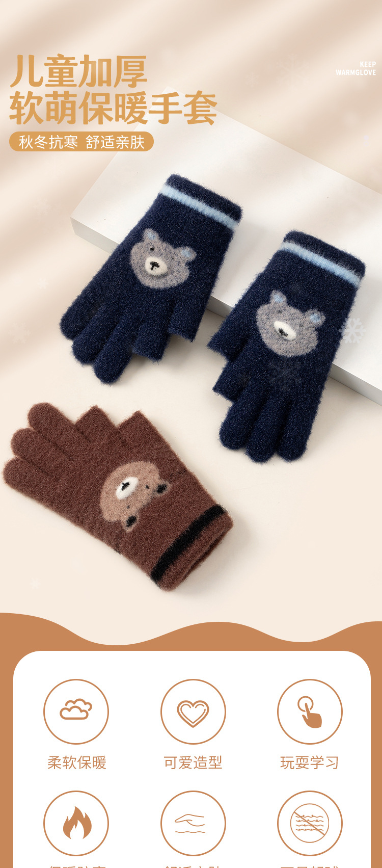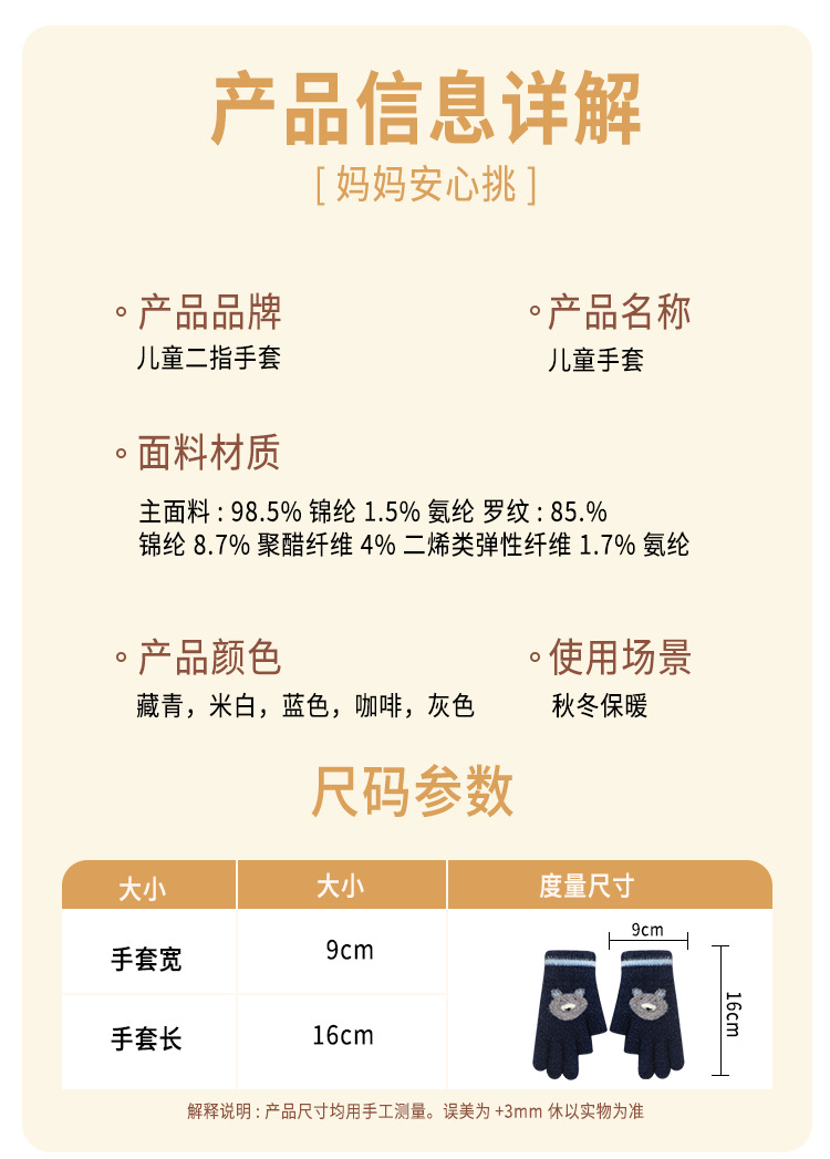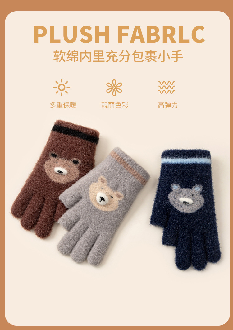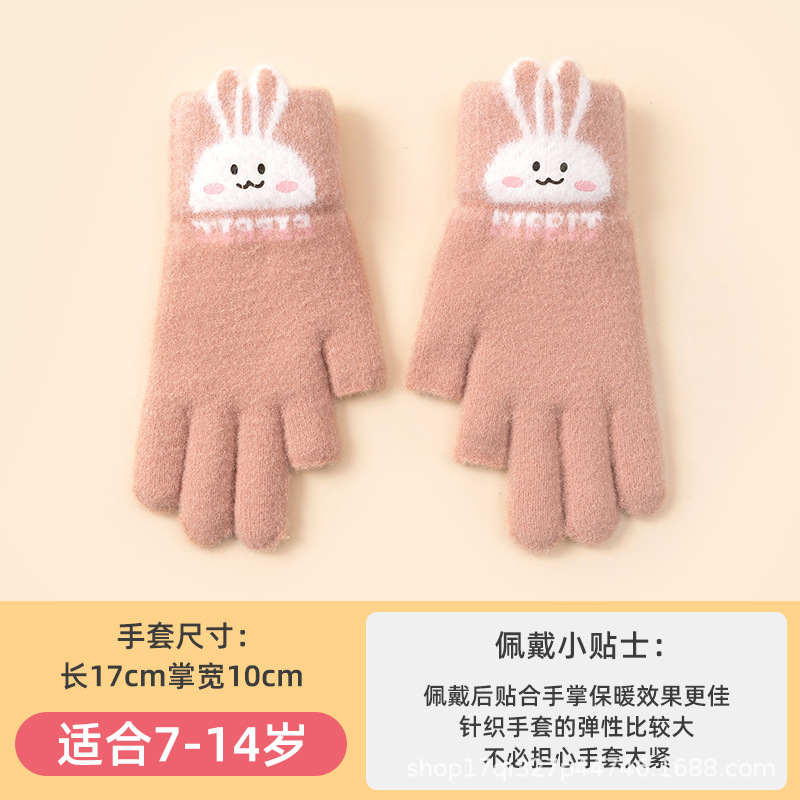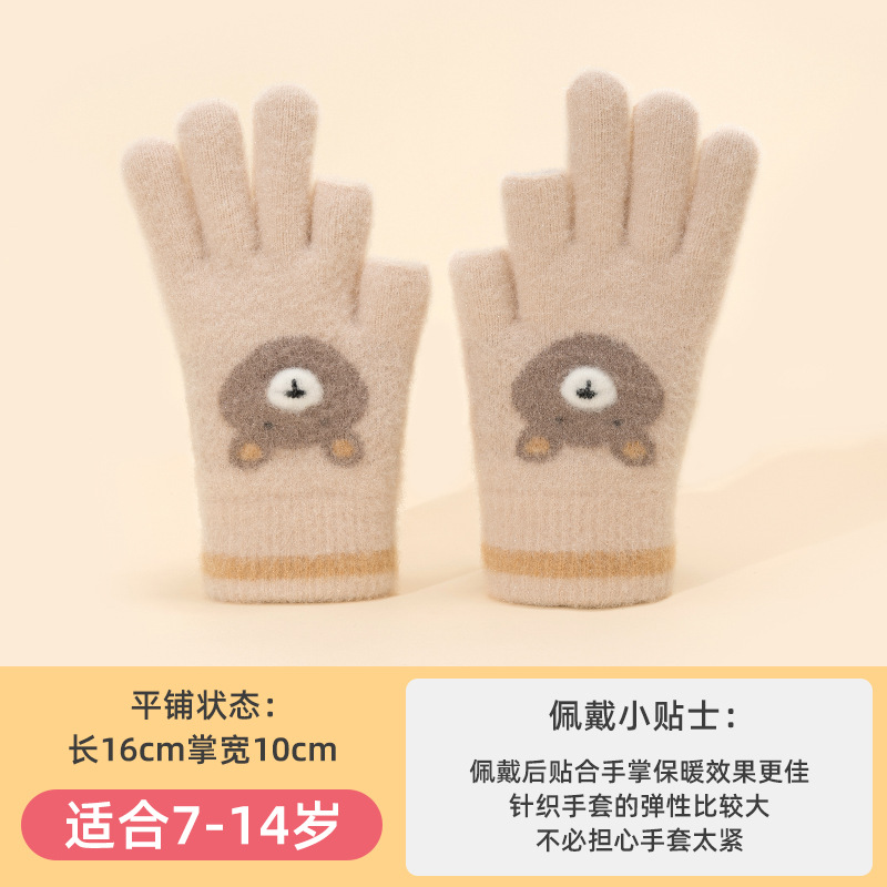 어린이 장갑 따뜻한 이슬 2 손가락 가을과 겨울 쓰기 만화 소년과 초등학생을위한 귀여운 양모 니트스토어 가기
