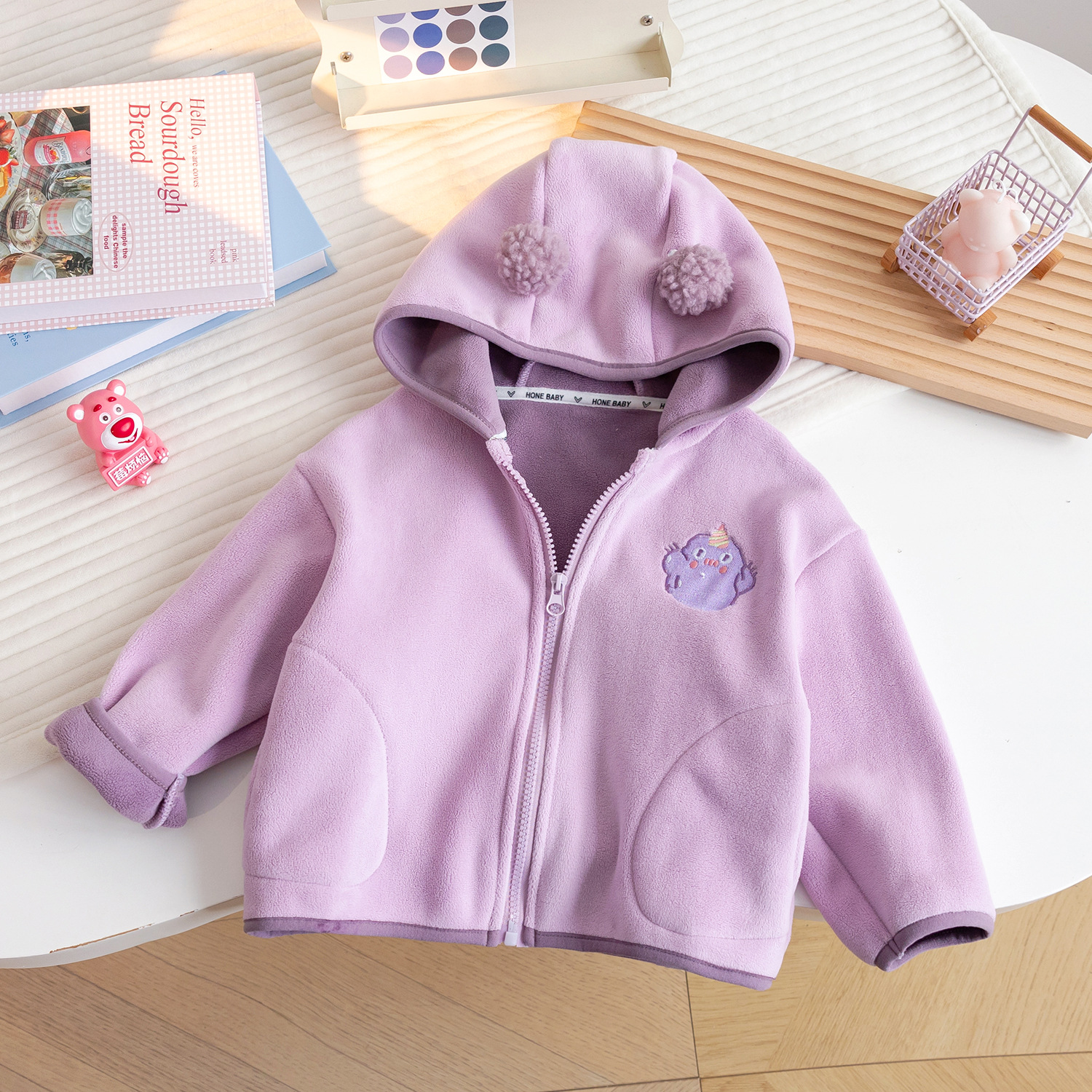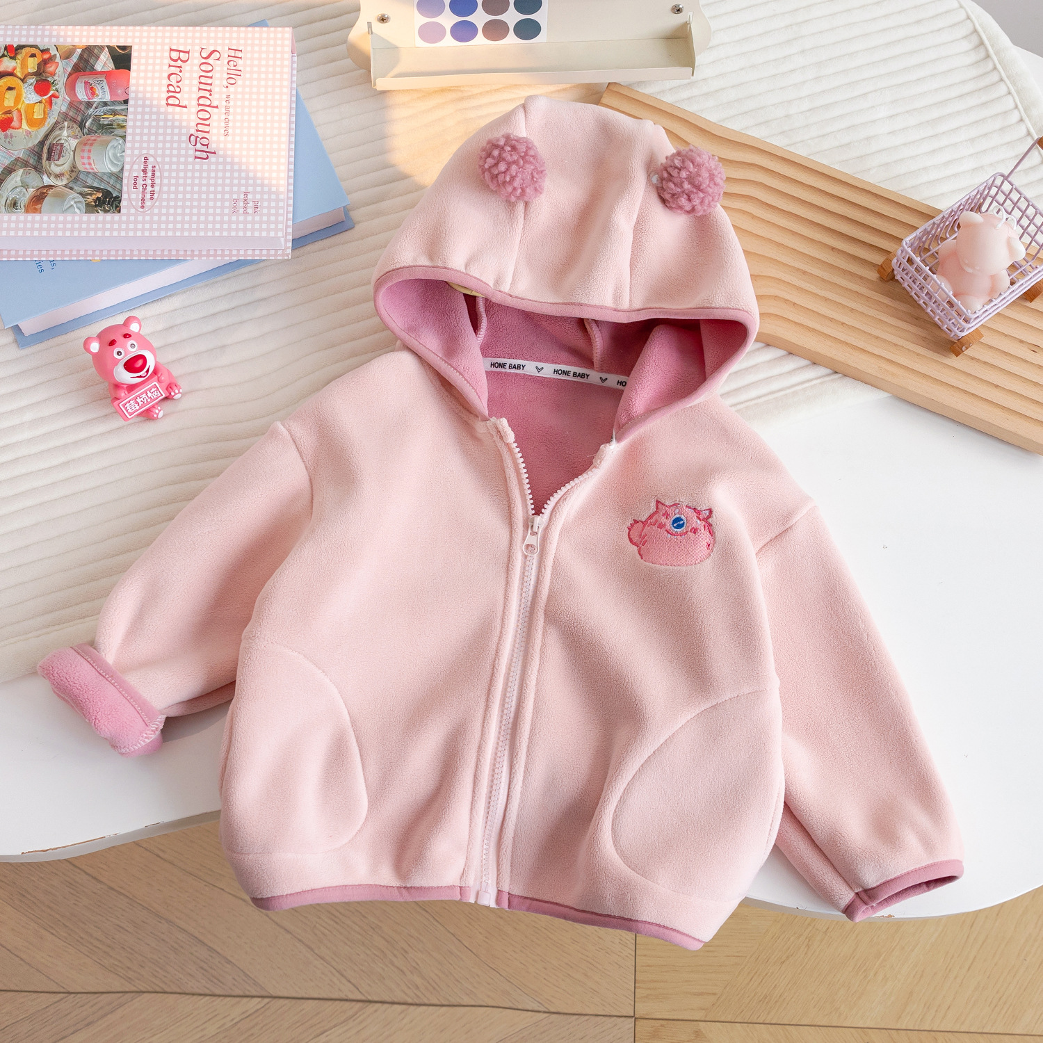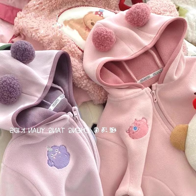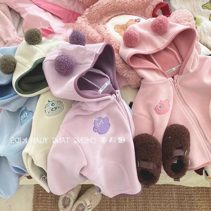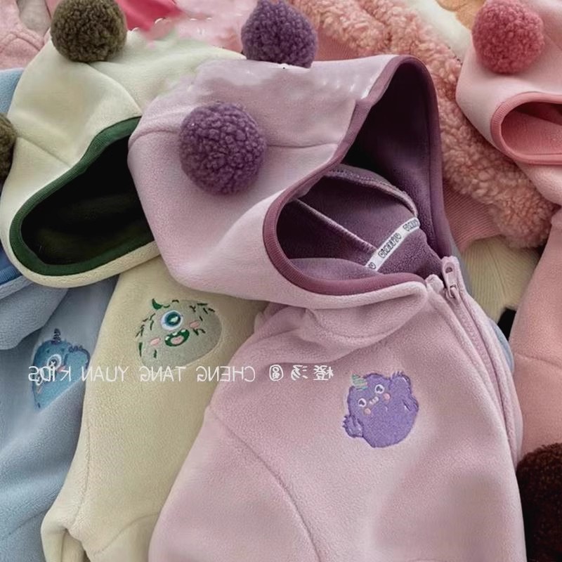 가을과 겨울 후드 카디건 서양식 어린이 기모 따뜻한 아기 옷 지퍼 두꺼운 기모 재킷