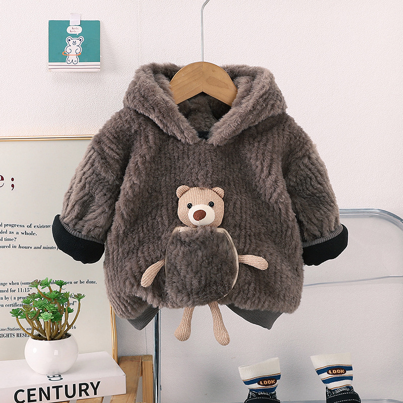 아기 두꺼운 스웨터 후드 코트 2024 가을과 겨울 새로운 소년과 소녀 만화 3 차원 곰 풀오버 겨울 옷스토어 가기