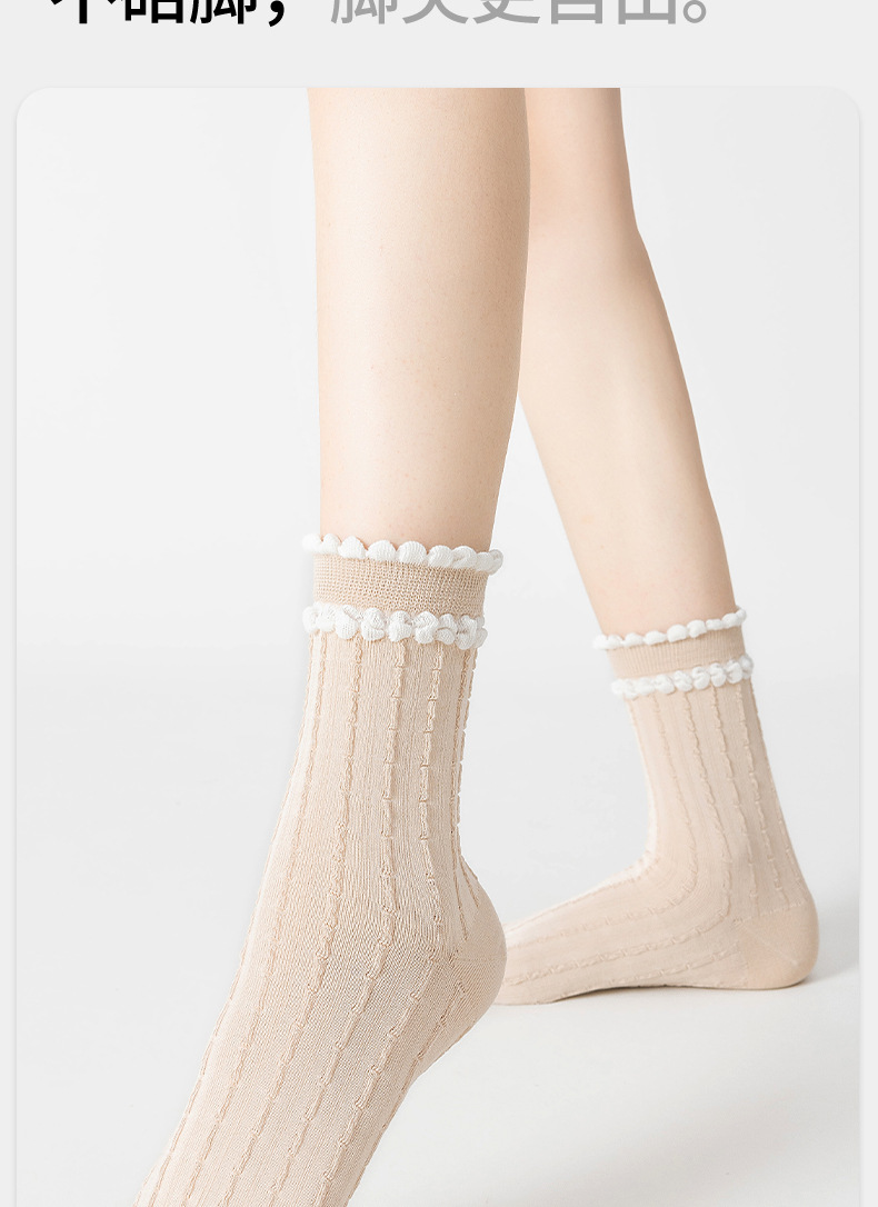 봄과 가을 양말 여성 회색 메리 제인 양말 작은 가죽 신발 중간 튜브 양말 뼈없는 거품 입 여름 양각 면 양말