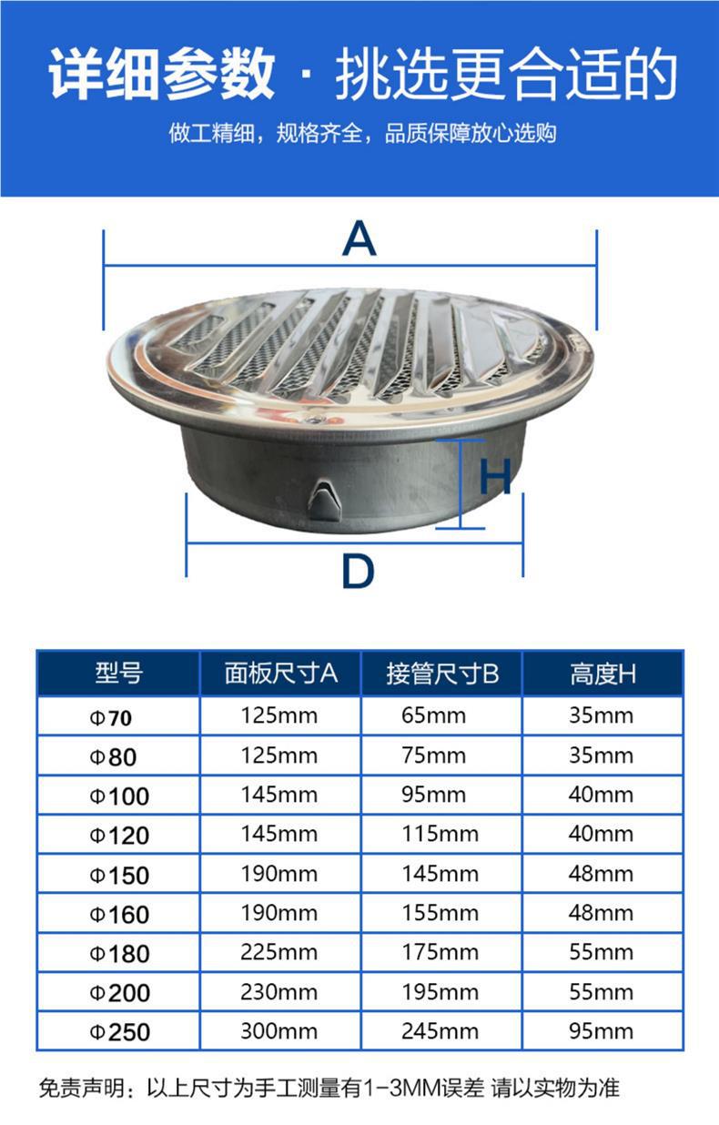 스테인레스 스틸 플랫 헤드 플랫 입 방풍 커버 곤충 방지 버드 벤트 커버 벤트 캡 외부 벽 구멍 배기 파이프 방비 바람 모자
