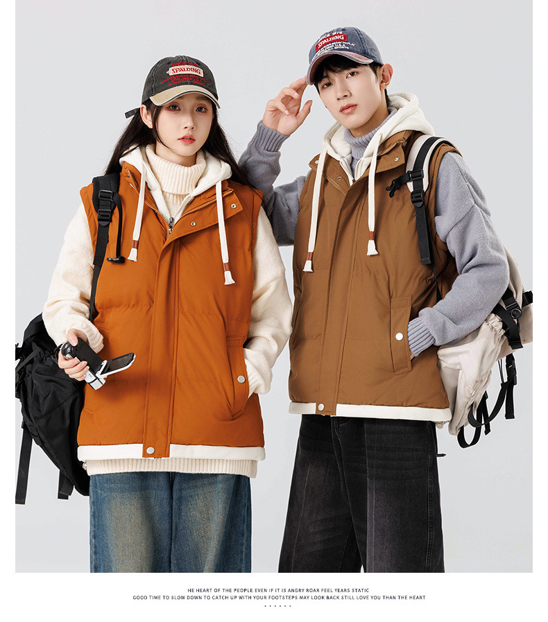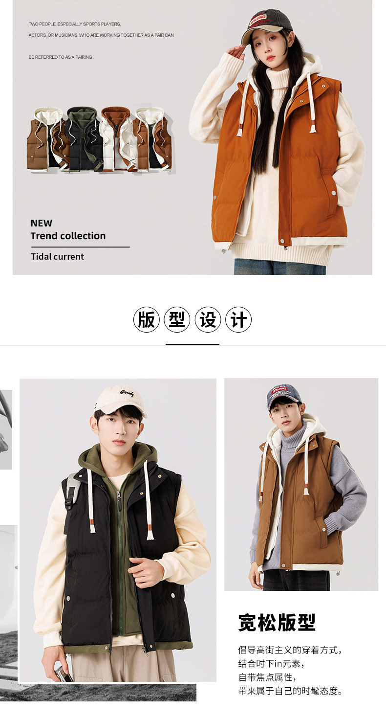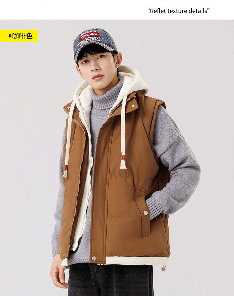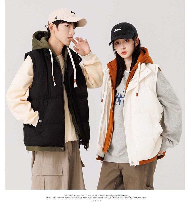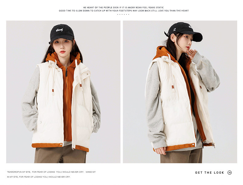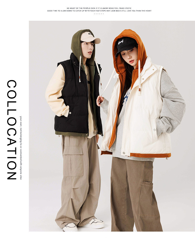 10 대 그래 핀 다운 코튼 패딩 재킷 조끼 남성 가을과 겨울 중학생 가짜 투피스 느슨한 커플 후드 코트스토어 가기