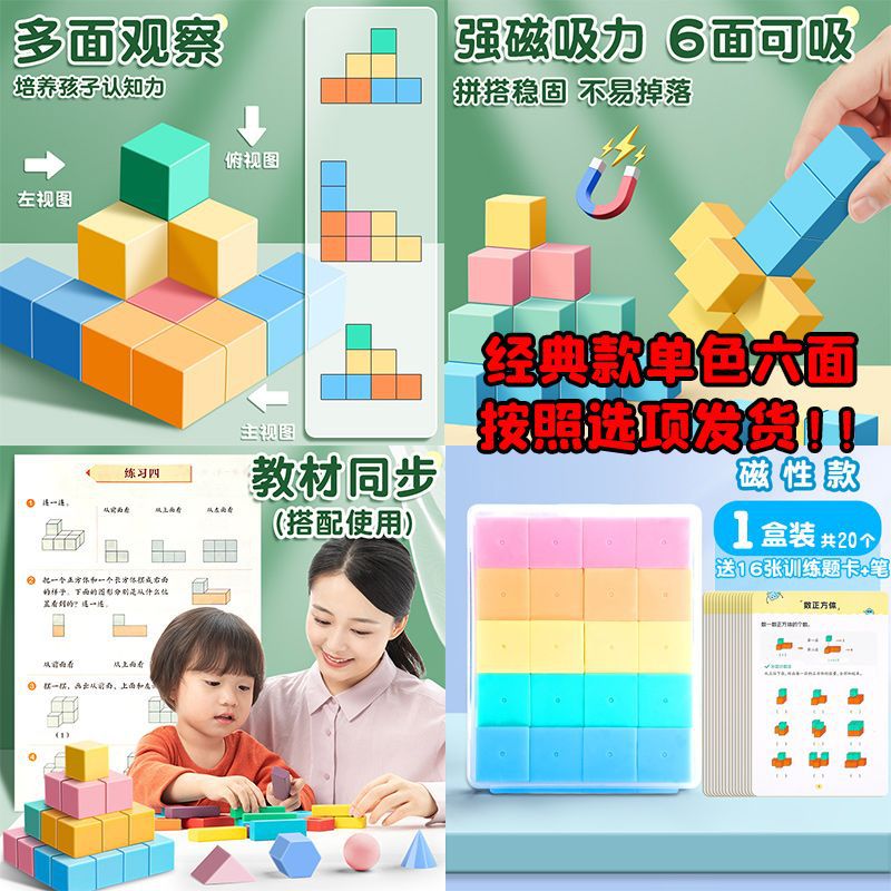 자기 큐브 교육 보조 자기 3 차원 그래픽 기하학적 사각형 초등학교 수학 어린이 교육 장난감 도매스토어 가기