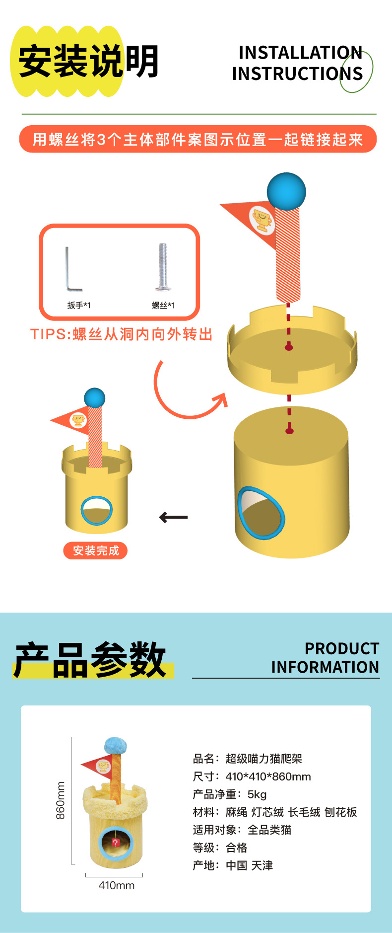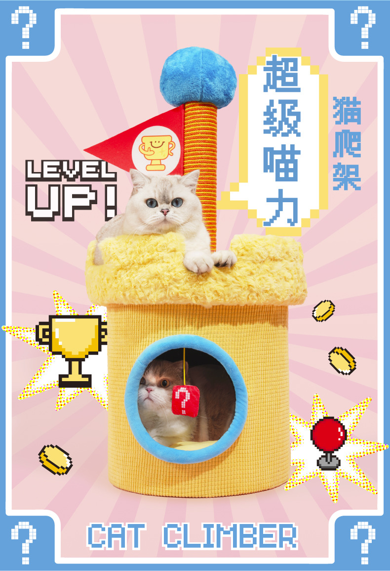 Pupu Lab 슈퍼 Meow 파워 고양이 등반 랙 고양이 스크래치 보드 편안한 더블 레이어 점프 플랫폼 부드러운 고양이 모래 게으른 고양이 둥지