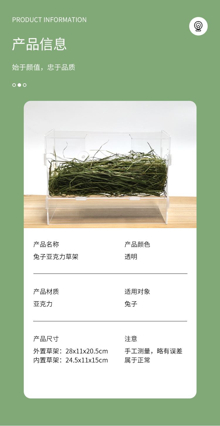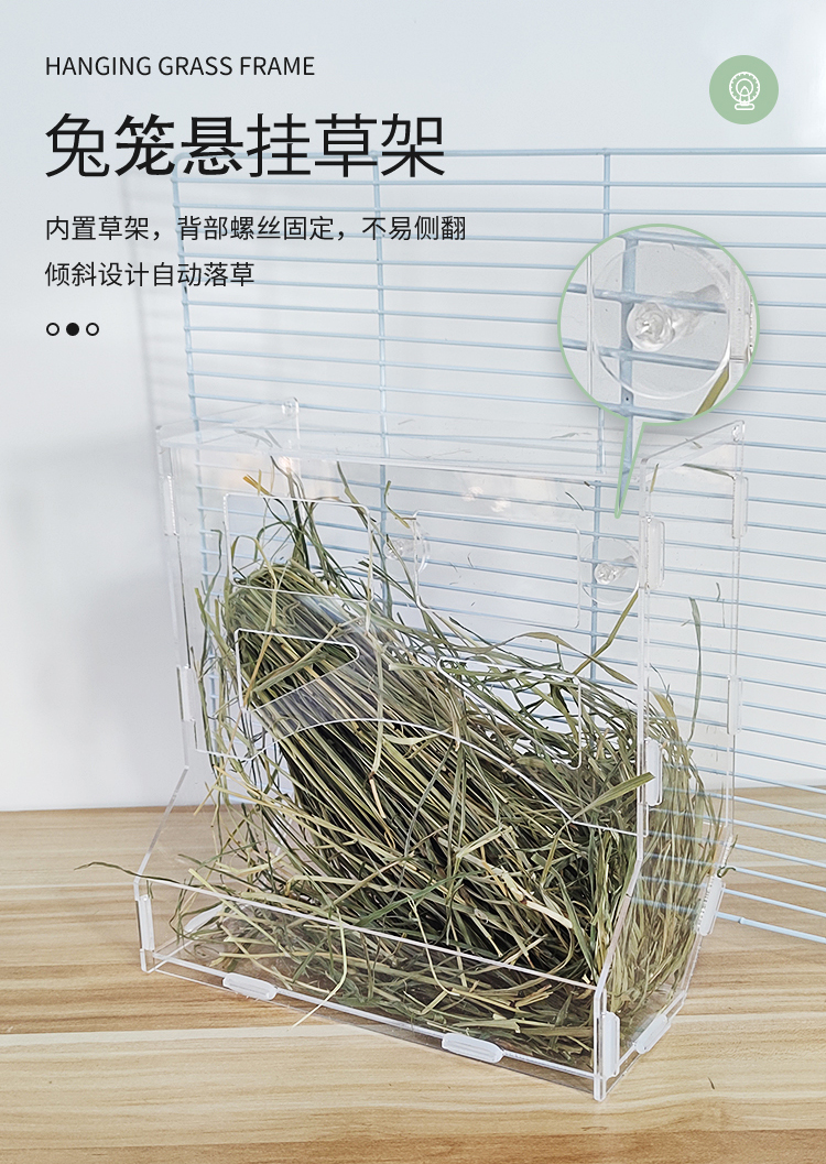 토끼 아크릴 잔디 프레임 투명한 대용량 누출 방지 케이지 잔디 분지 레탈 로또 라이트 제거 쉬운 청소