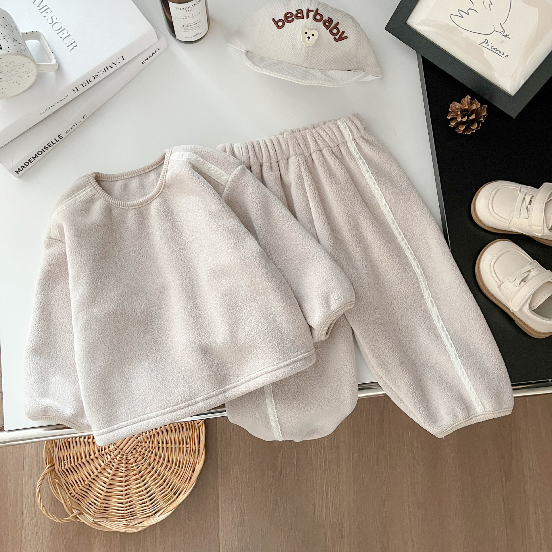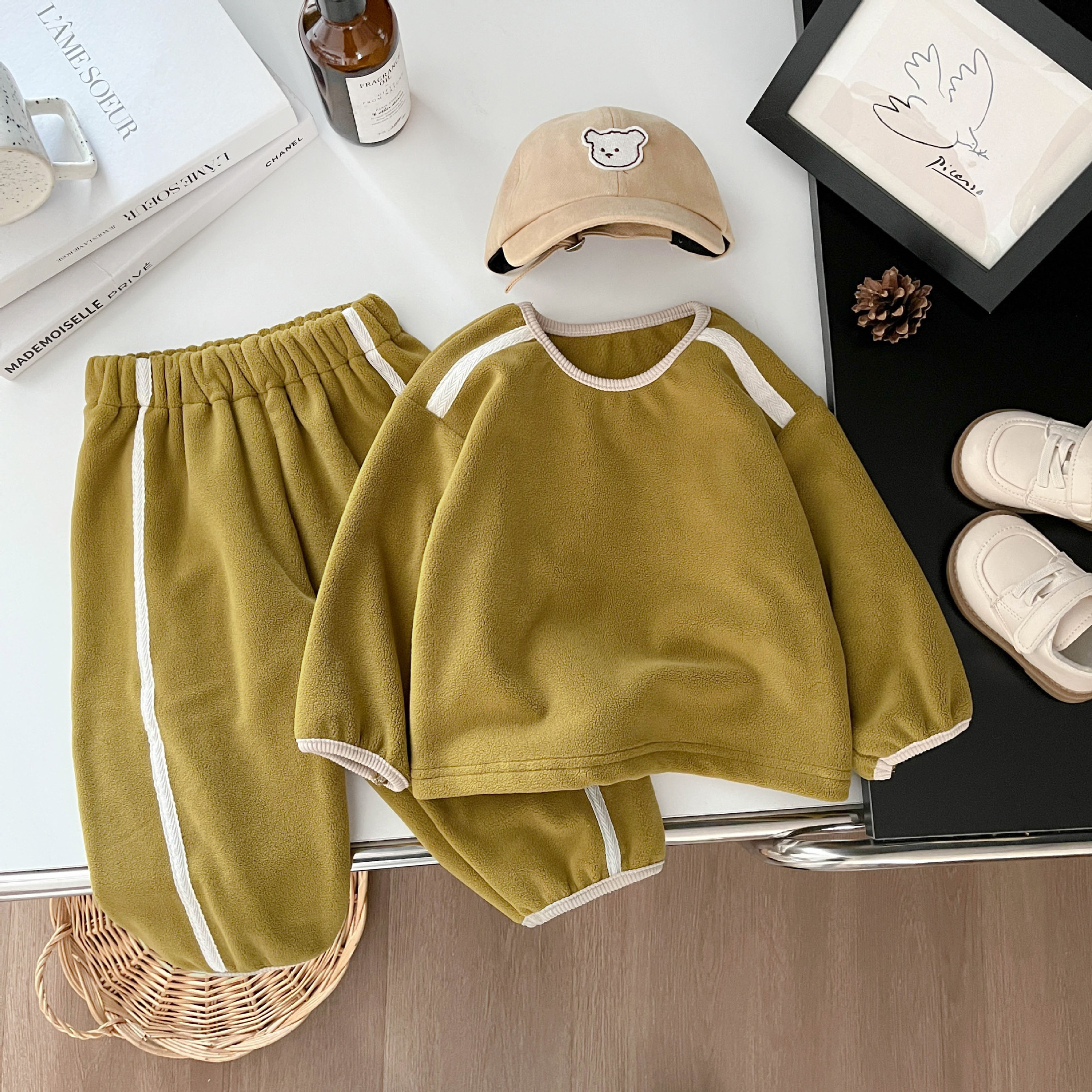 아기의 겨울 스포츠 세트 소년의 서양식 두꺼운 둥근 목 땀 여성 아기의 따뜻한 캐주얼 바지 투피스 세트