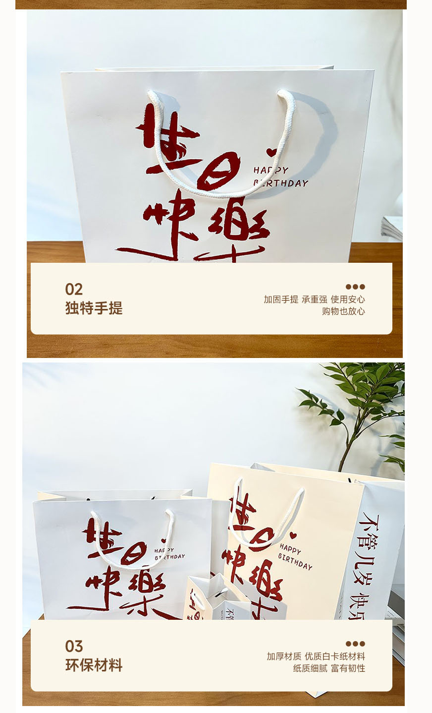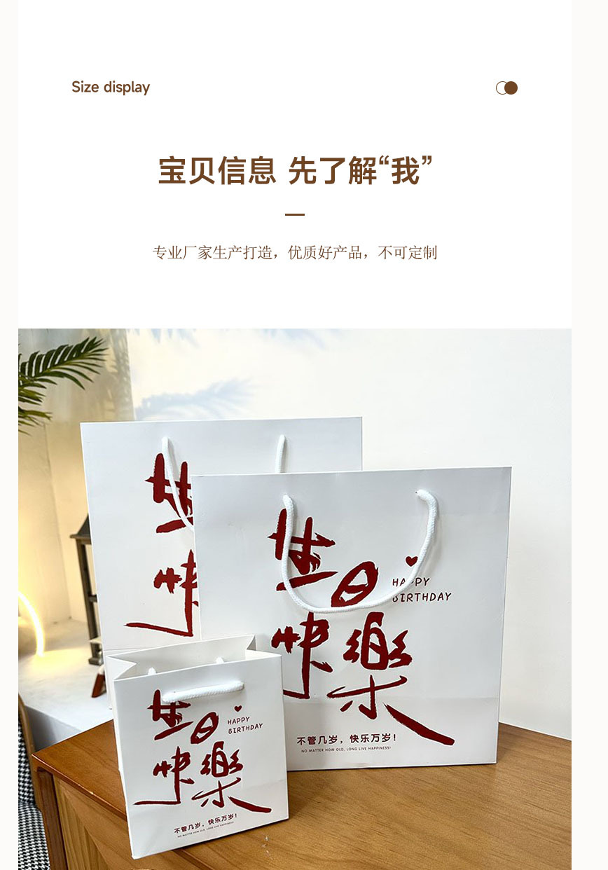 생일 축하 선물 가방 프리미엄 휴일 선물 포장 가방 휴대용 틈새 절묘한 텍스트 휴대용 종이 가방스토어 가기