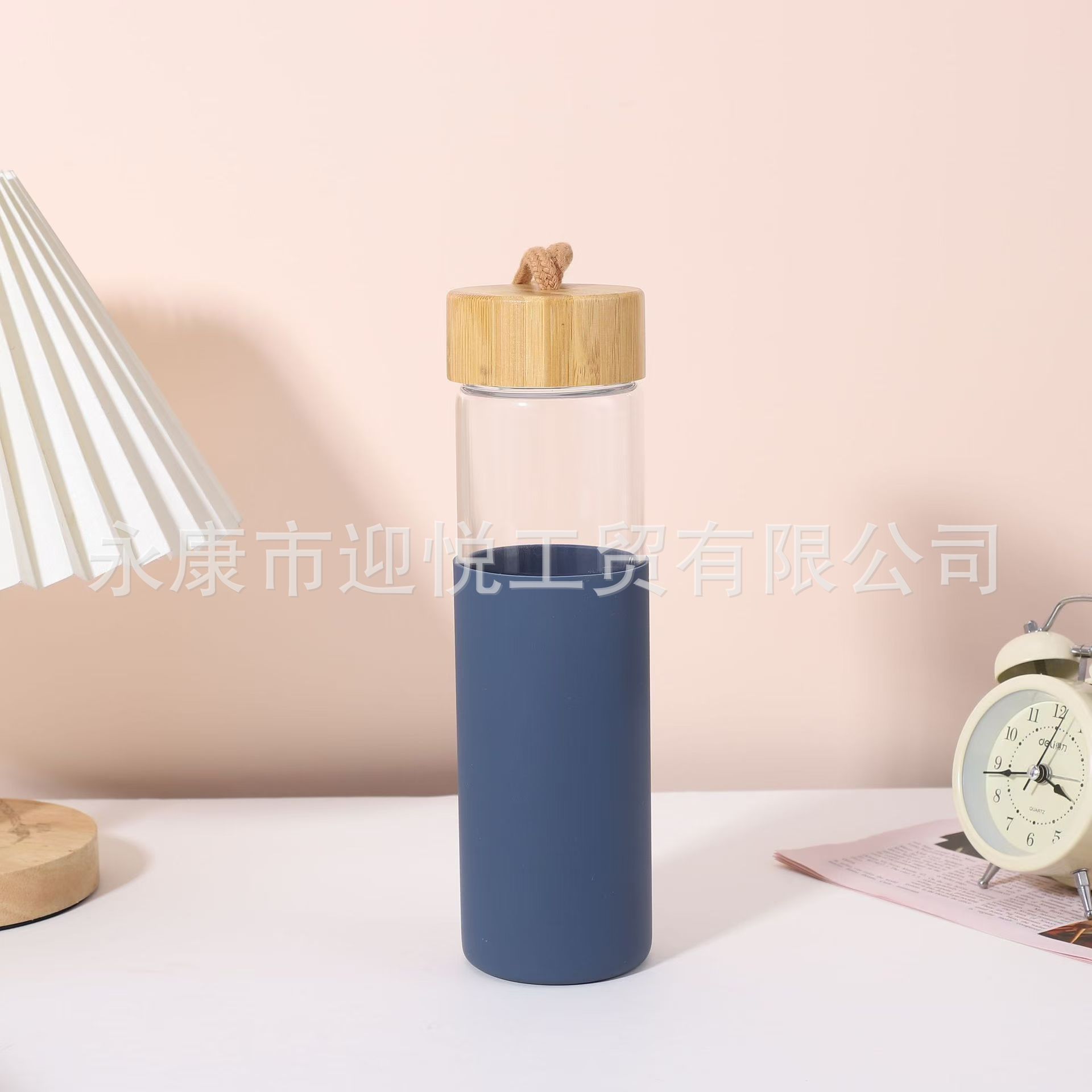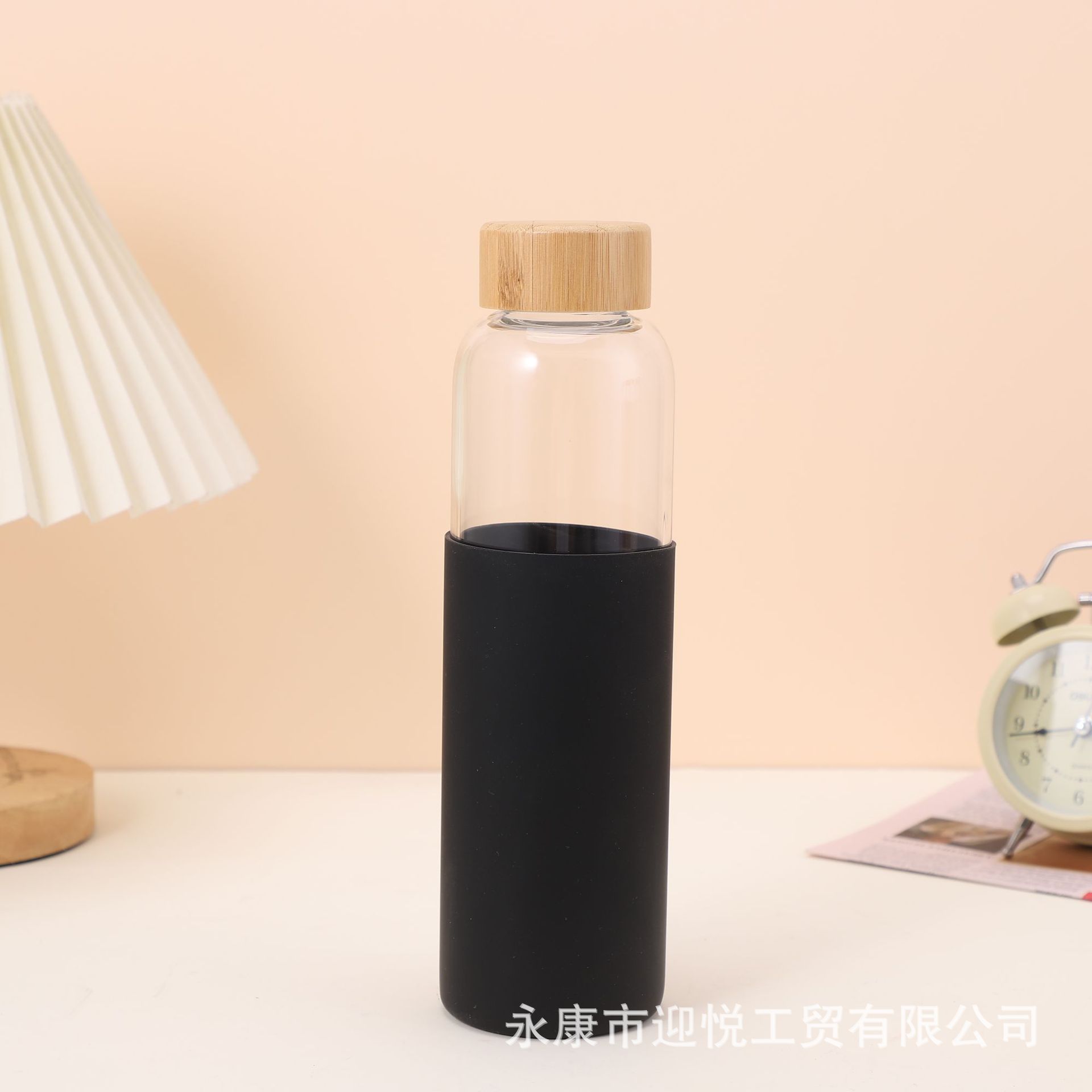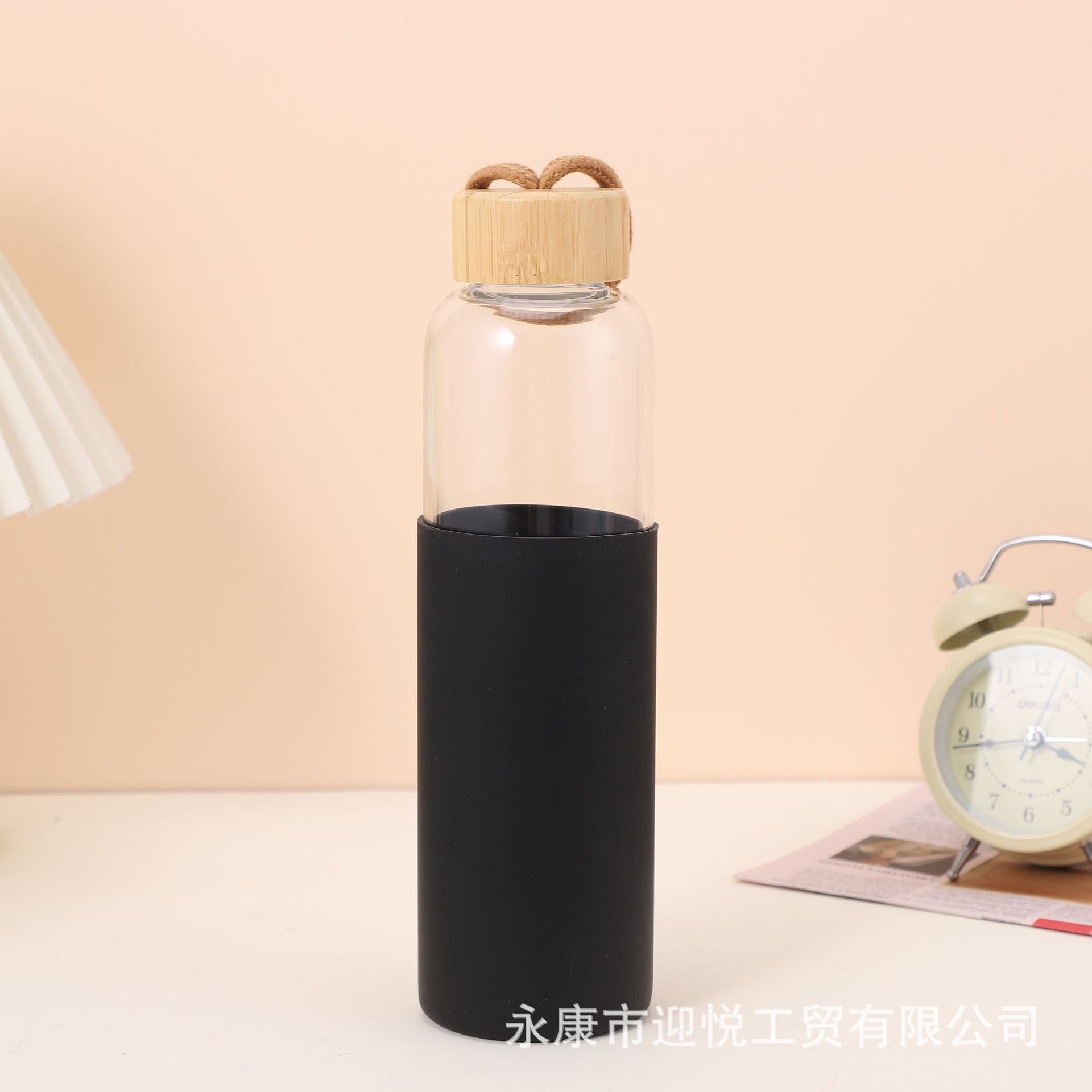 대용량 유리컵 실리콘 커버 눈금 물컵 휴대용 물병 스포츠 뚜껑컵 고붕규산 물병