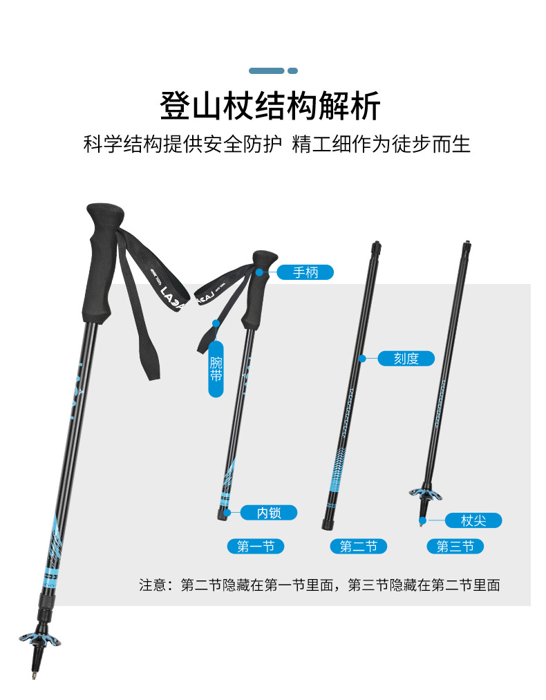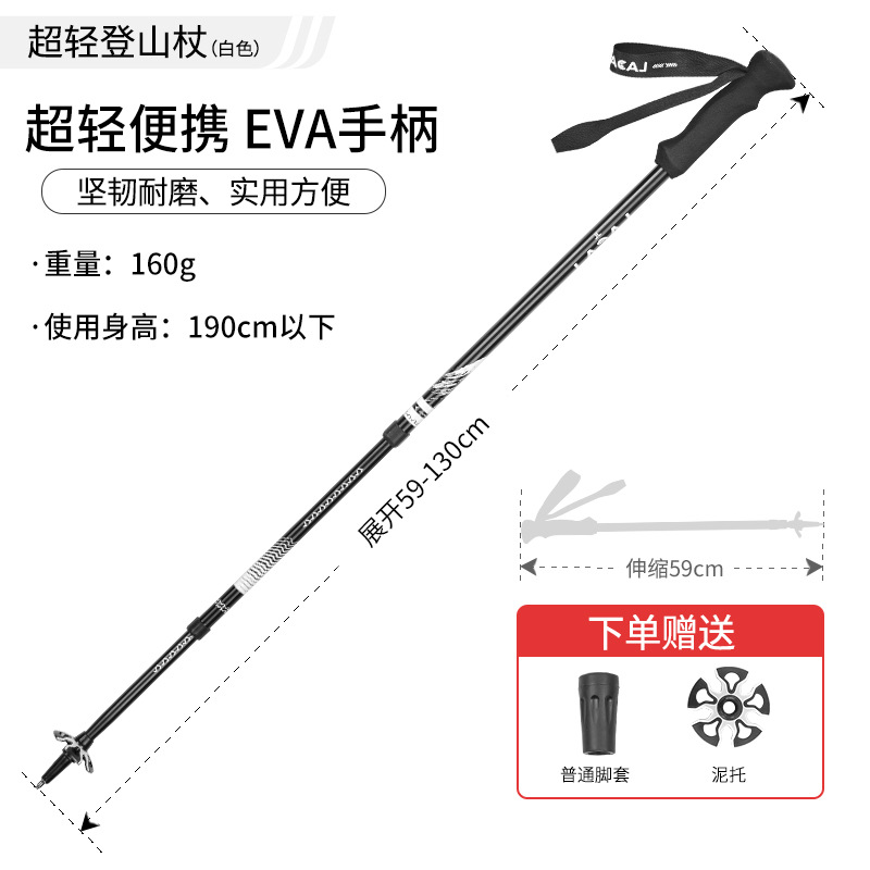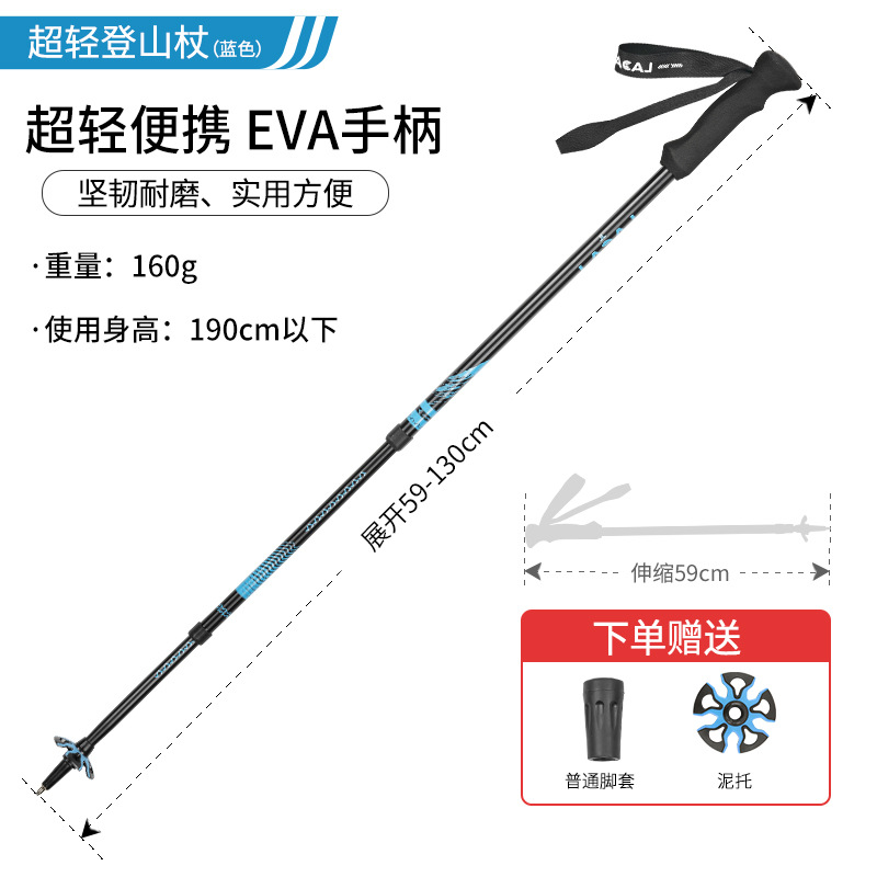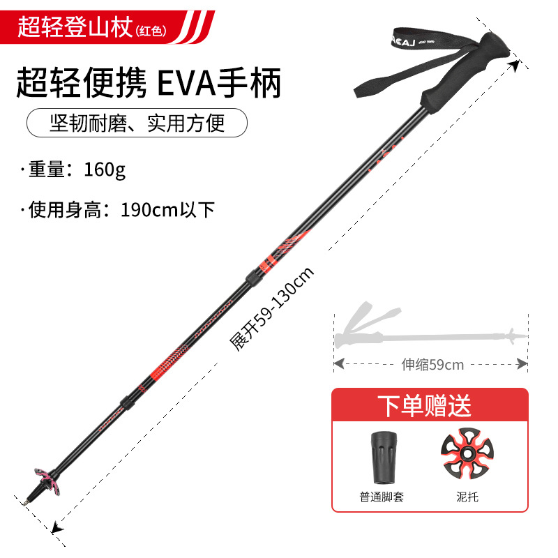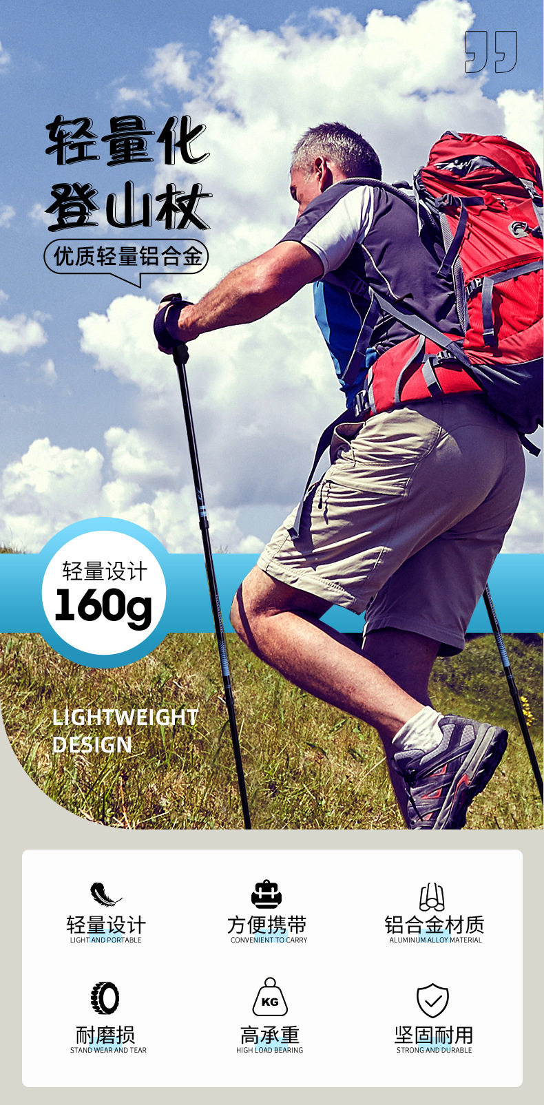 야외 초경량 텔레스코픽 클라이밍 스틱 알루미늄 합금 3 섹션 하이킹 걷기 캠핑 여행 노인을위한 미끄럼 방지 목발 스틱