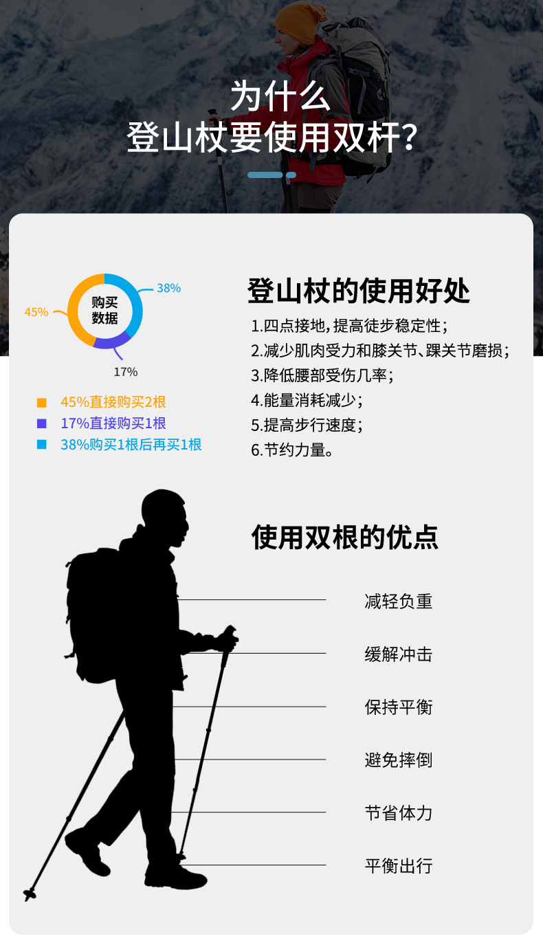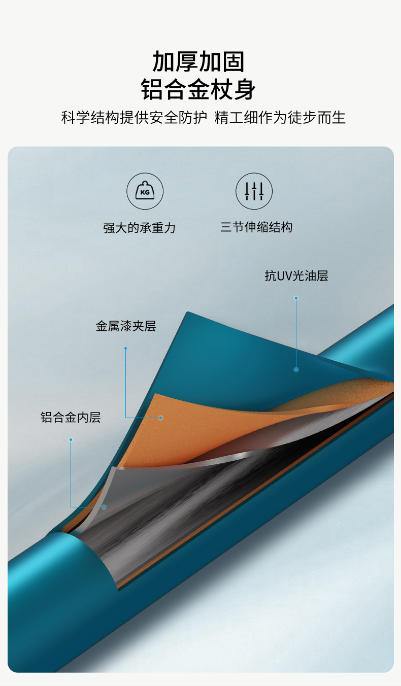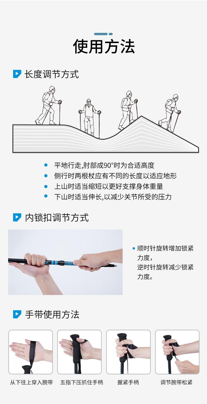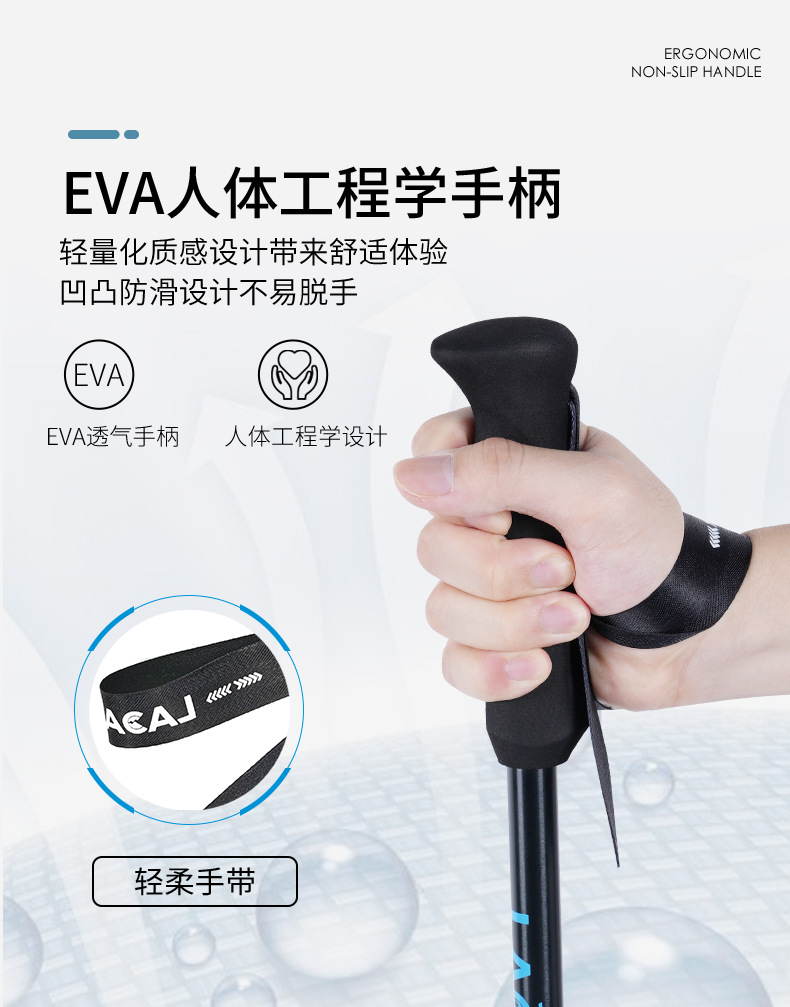 야외 초경량 텔레스코픽 클라이밍 스틱 알루미늄 합금 3 섹션 하이킹 걷기 캠핑 여행 노인을위한 미끄럼 방지 목발 스틱