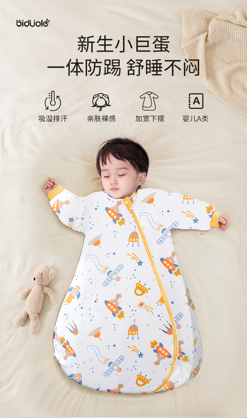 [공장 직배송] 가을 겨울용 두꺼운 아기 침낭, 순면 신생아 침낭, 어린이용 발차기 방지 이불, 사계절 사용 가능