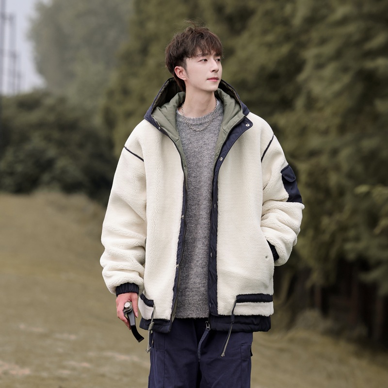 양고기 양털 코튼 패딩 재킷 남자의 겨울 새로운 미국 스타일 빈티지 기모 두꺼운 코튼 패딩 재킷 트렌디 브랜드 남성용 코튼 패딩 재킷스토어 가기