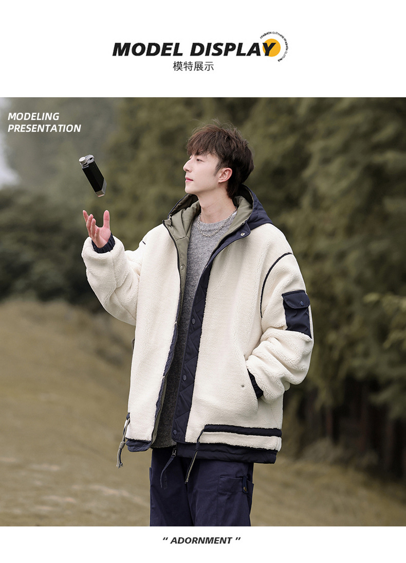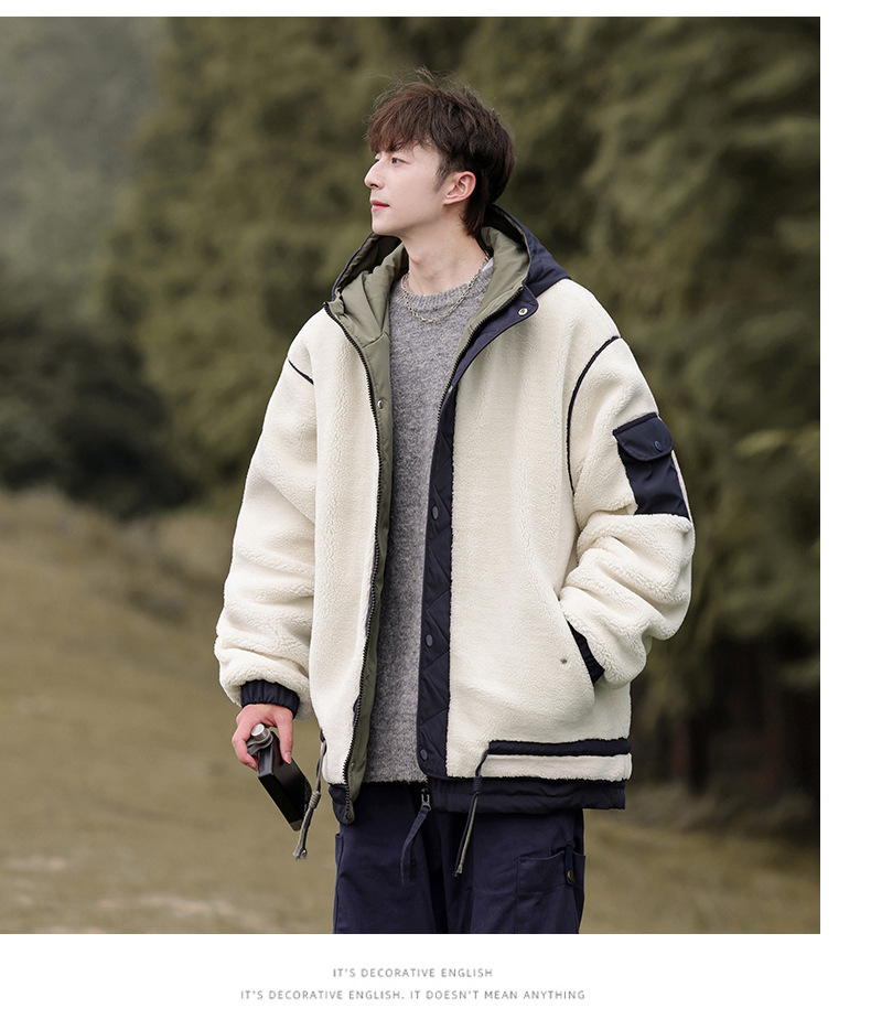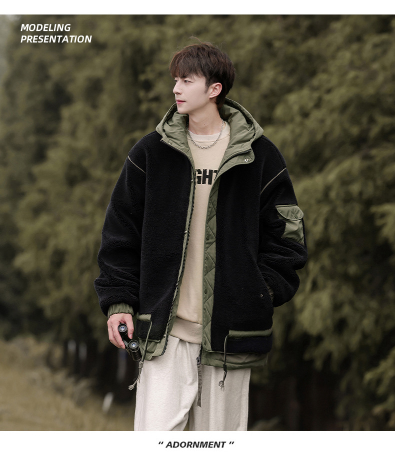 양고기 양털 코튼 패딩 재킷 남자의 겨울 새로운 미국 스타일 빈티지 기모 두꺼운 코튼 패딩 재킷 트렌디 브랜드 남성용 코튼 패딩 재킷