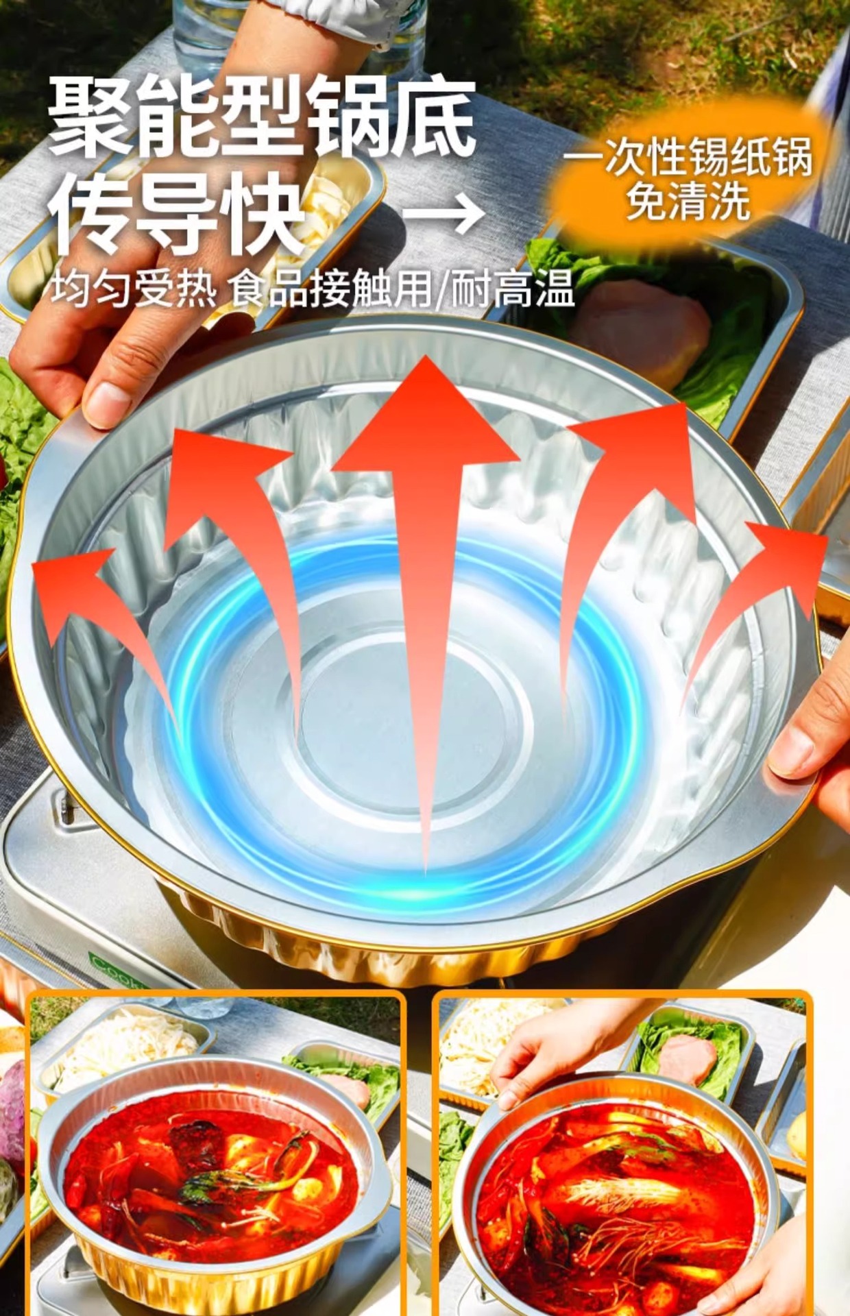 일회용 뜨거운 냄비 야외 피크닉 알루미늄 포일 주석 종이 냄비 캠핑 BBQ 홈 카르더 1 인 작은 뜨거운 냄비스토어 가기