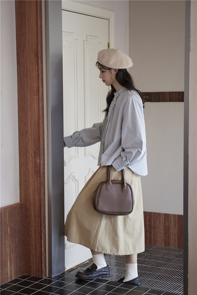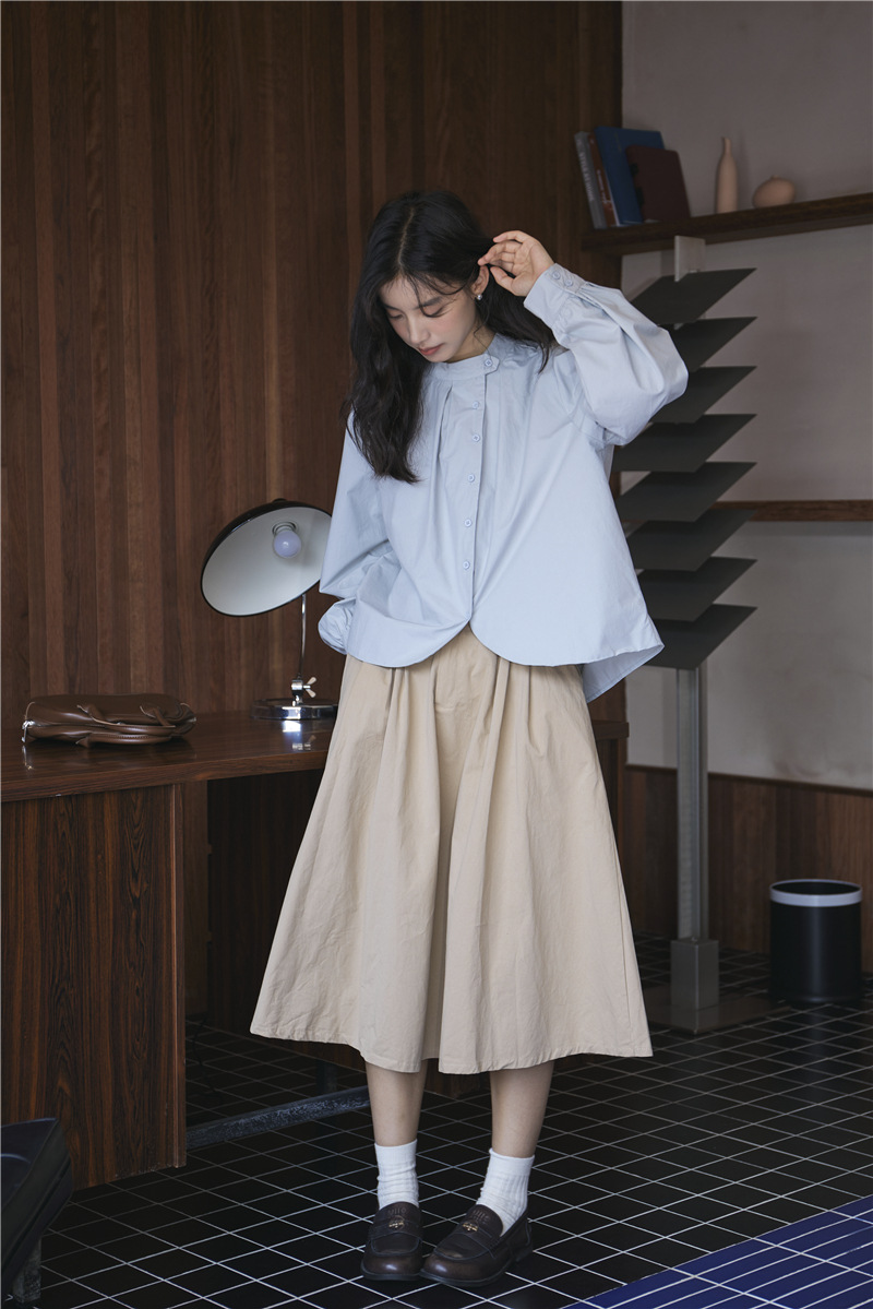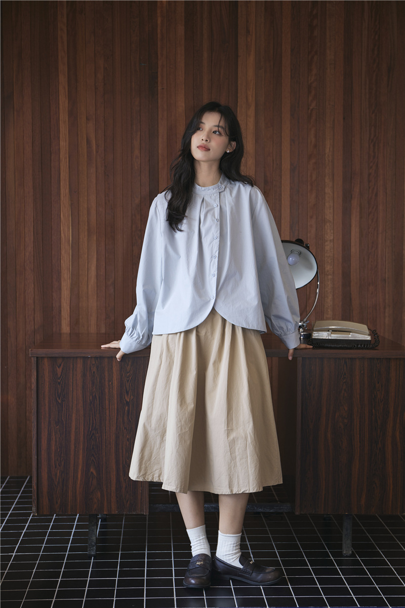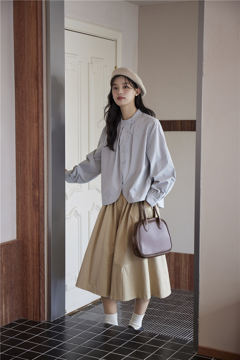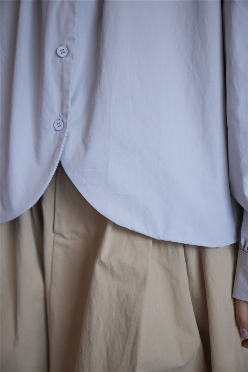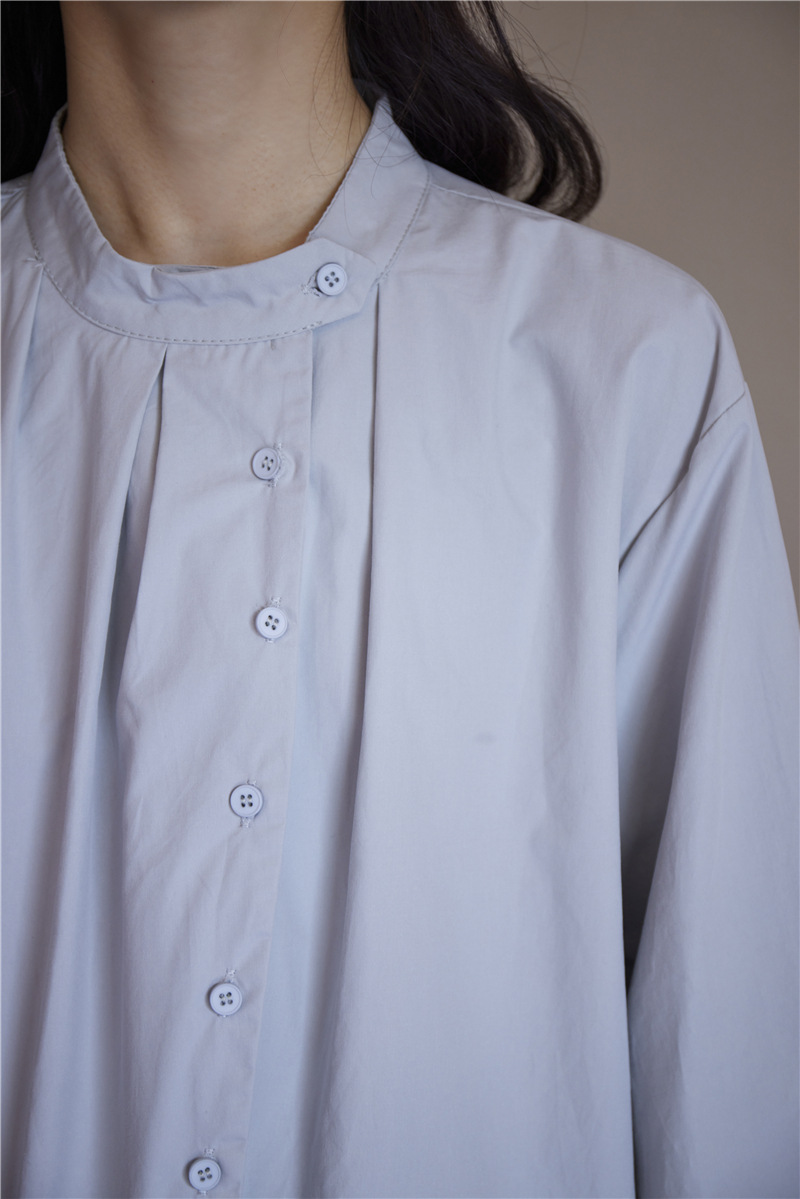 2025 가을 신상 일본식 심플 스탠드 칼라 긴팔 셔츠 불규칙 디자인 솔리드 컬러 셔츠 여성용스토어 가기