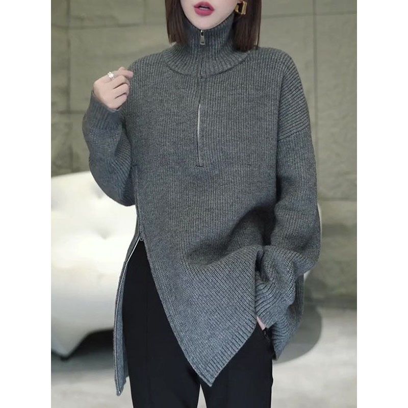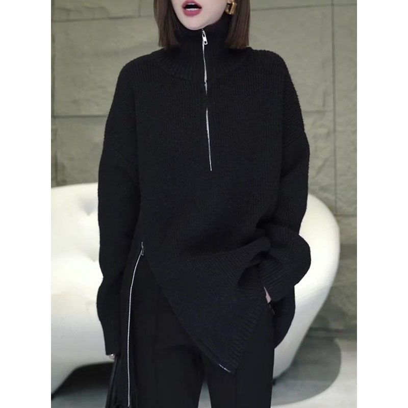 대외 무역 국경 간 가을 겨울 새로운 게으른 스타일 중간 길이의 니트 스웨터 느슨한 반 지퍼 터틀넥 한국 스타일 여성 스웨터