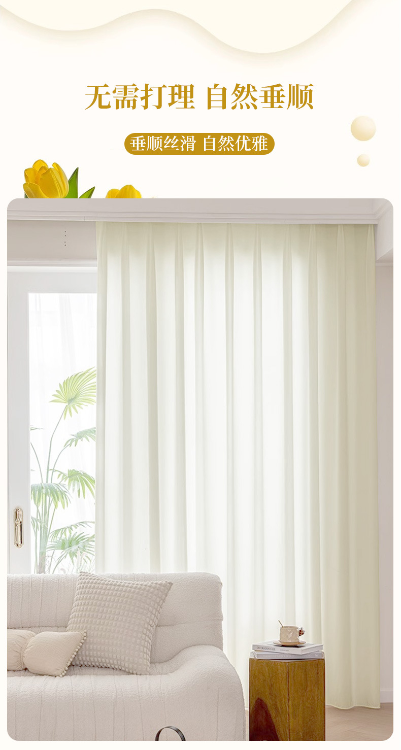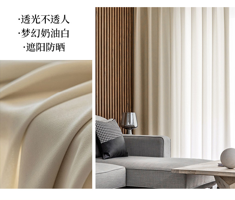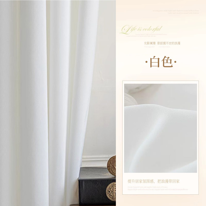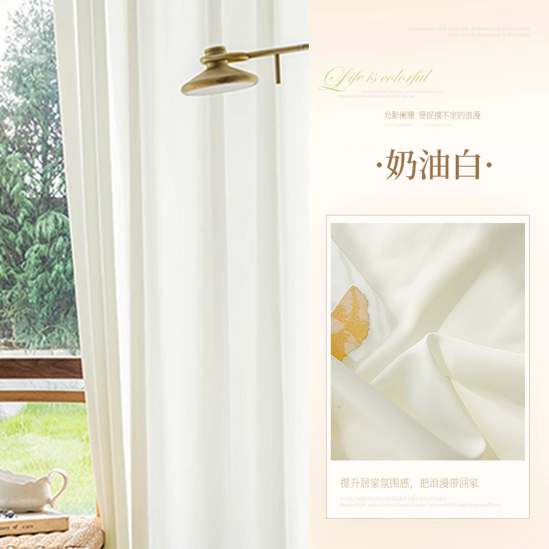 프렌치 크림 화이트 커튼 거즈 커튼은 빛을 투과하고 불투명하며 펀치 없는 칸막이 커튼, 침실 발코니 차양, 왕관 거즈