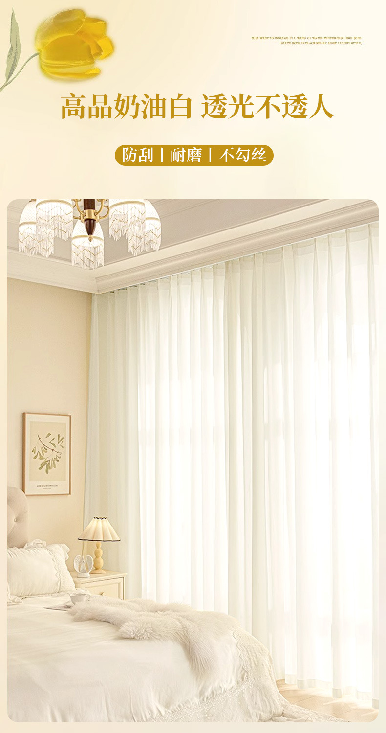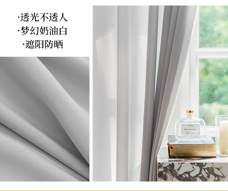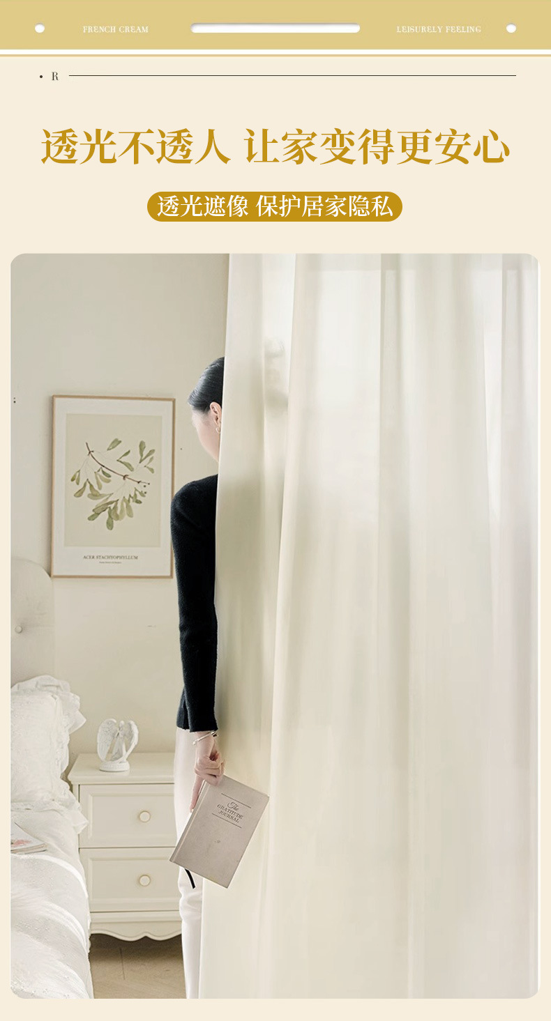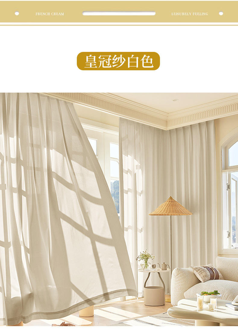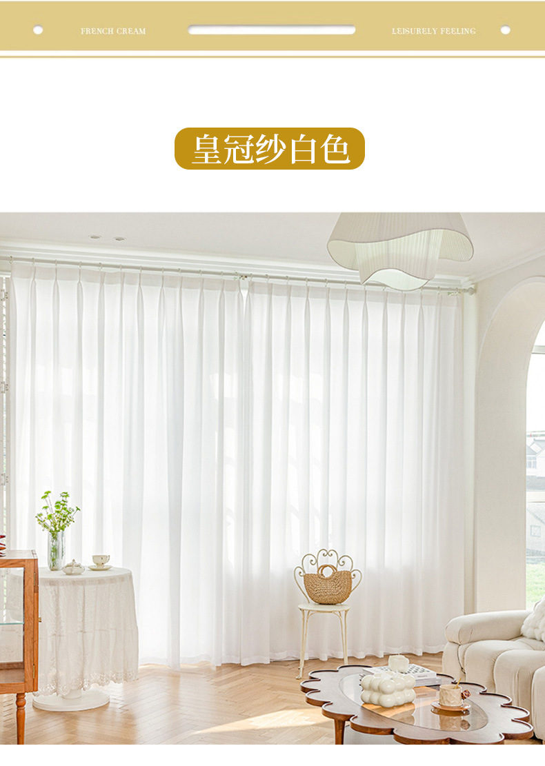 프렌치 크림 화이트 커튼 거즈 커튼은 빛을 투과하고 불투명하며 펀치 없는 칸막이 커튼, 침실 발코니 차양, 왕관 거즈스토어 가기
