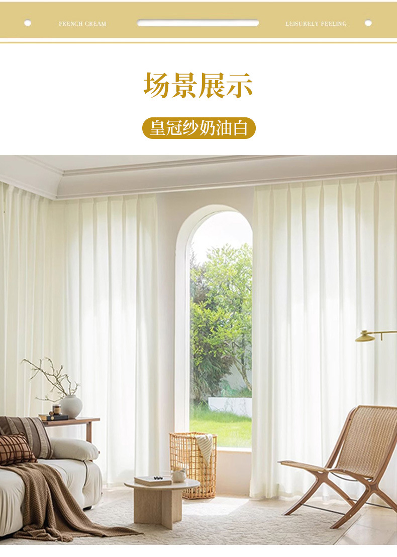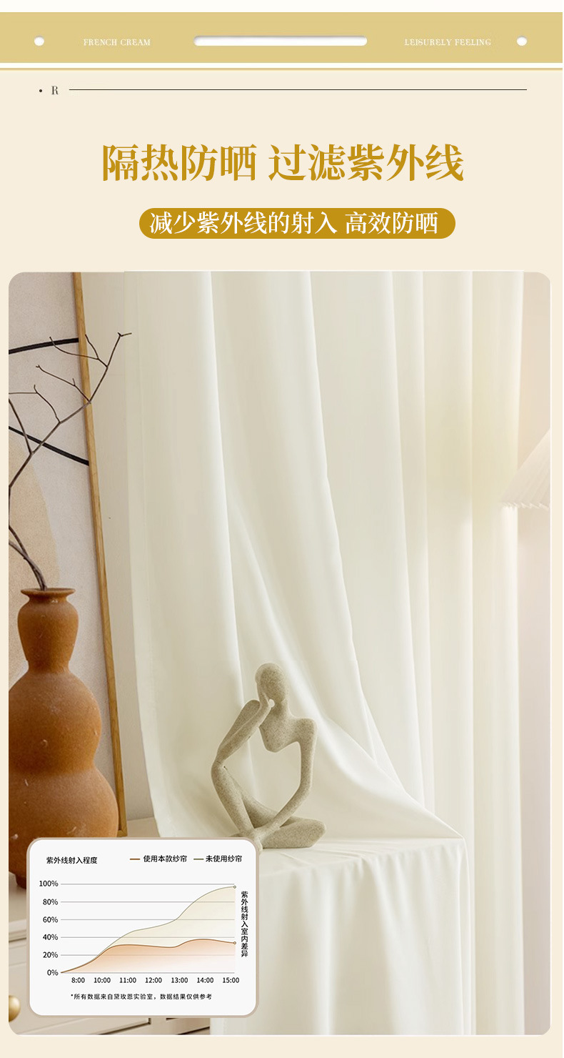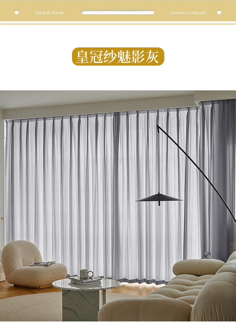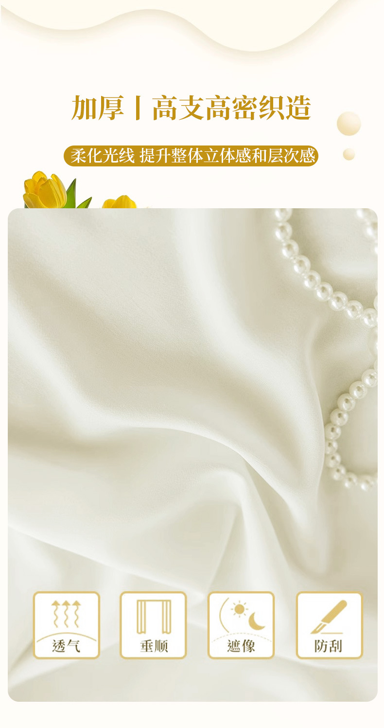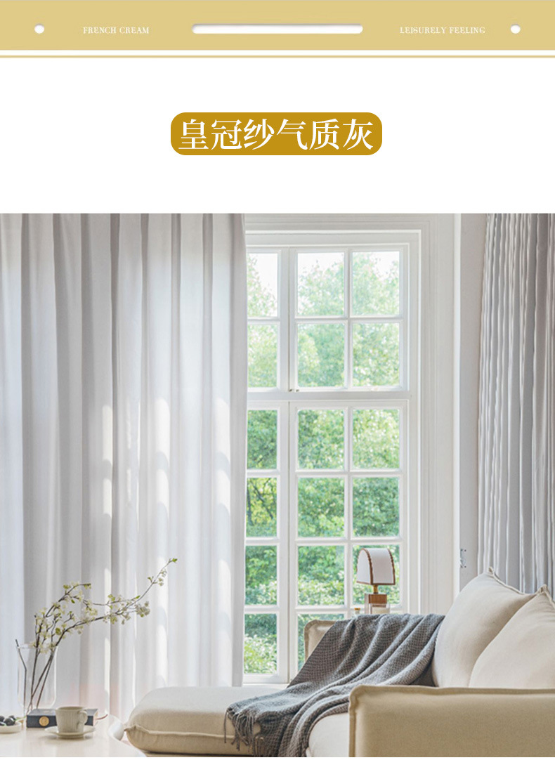 프렌치 크림 화이트 커튼 거즈 커튼은 빛을 투과하고 불투명하며 펀치 없는 칸막이 커튼, 침실 발코니 차양, 왕관 거즈스토어 가기