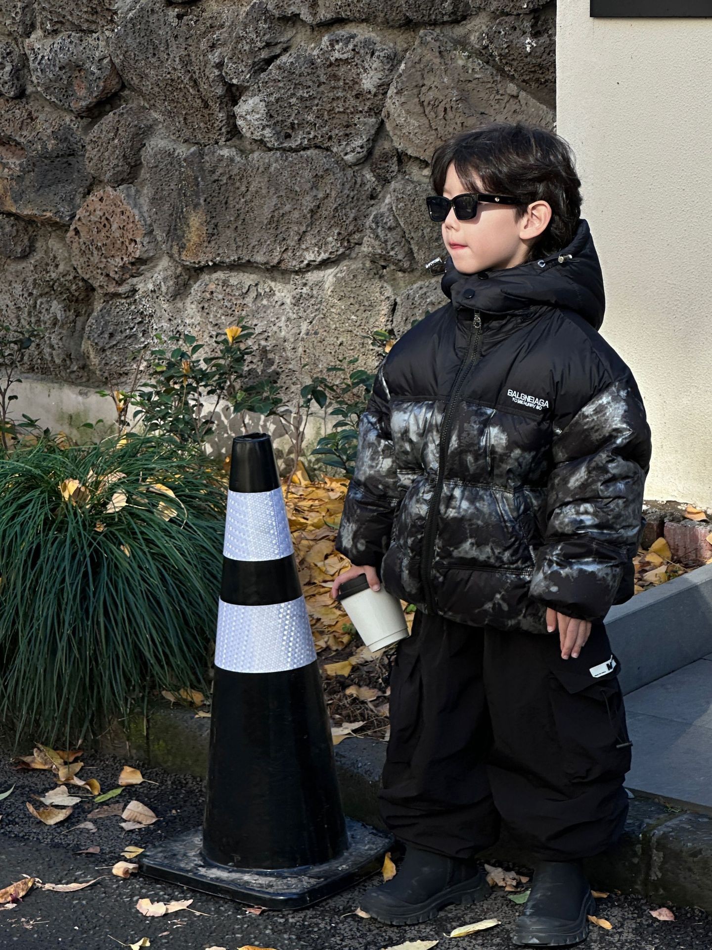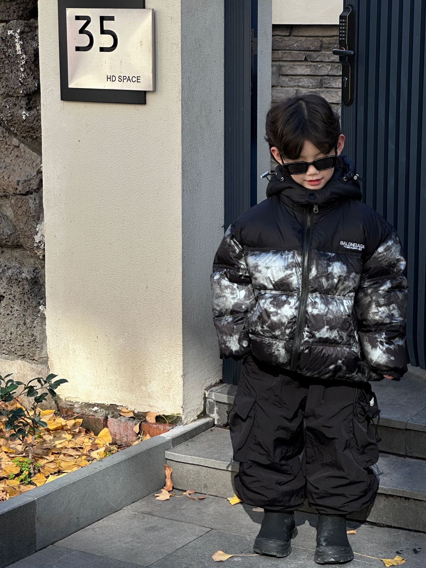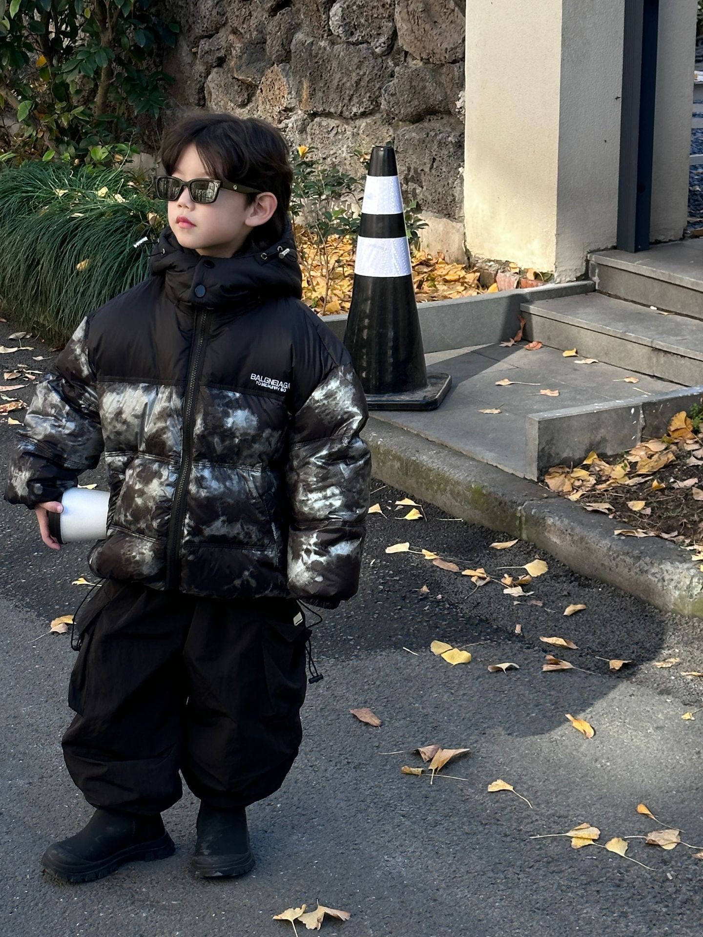 티루 2024 겨울 새 한국 스타일 어린이 스티칭 위장 기모 따뜻한 모자 다운 재킷 소년 코트 트렌디스토어 가기