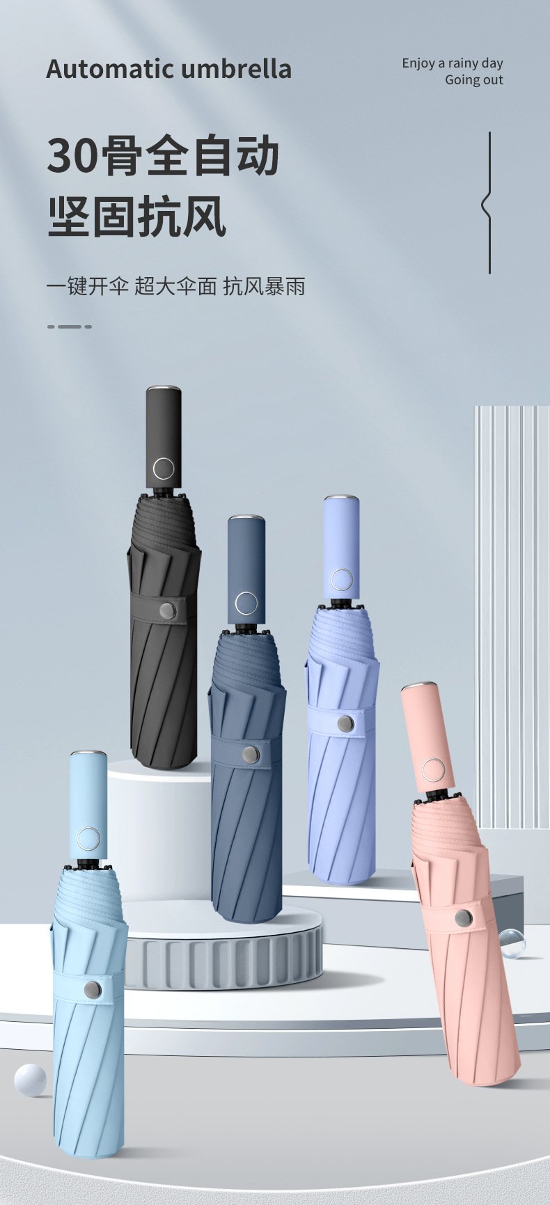 30 뼈 완전 자동 대형 우산 비닐 태양 보호 우산 도매 태양 우산 사용자 정의 광고 접는 비즈니스 우산스토어 가기